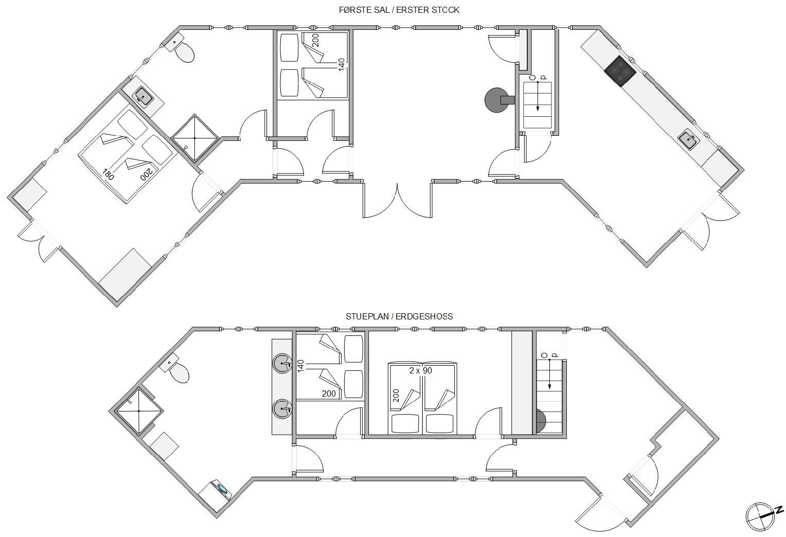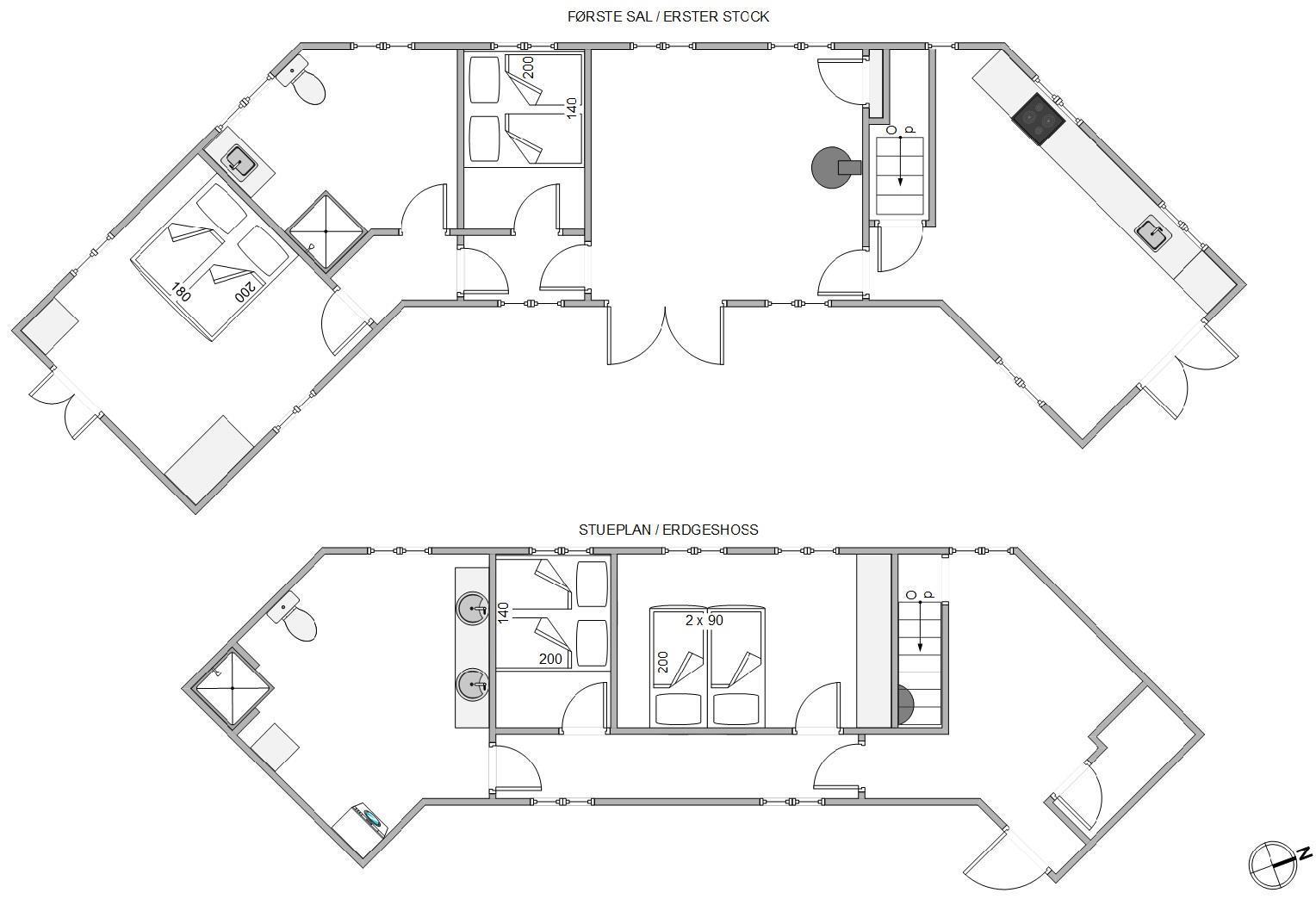 The well-equipped kitchen includes a dishwasher, induction hob and a 60-litre freezer – particularly useful for fishing enthusiasts. With two bathrooms, there's no waiting around, and both feature underfloor heating for extra comfort. Three of the cosy bedrooms have comfortable double beds, while the fourth has bunk beds sleeping two.