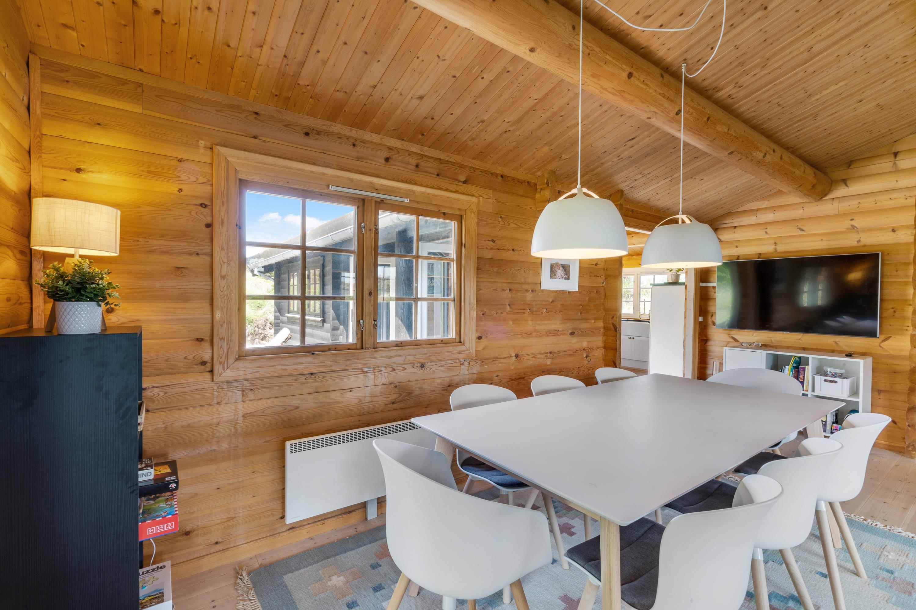 The cosy living room with wood-burning stove and integrated kitchen will certainly be the main gathering point for the family. Here you can relax, cook and dine together, and put your feet up in the evening. Of course, amenities such as TV and free internet are provided, ensuring you can stay connected despite the secluded location in Grærup.