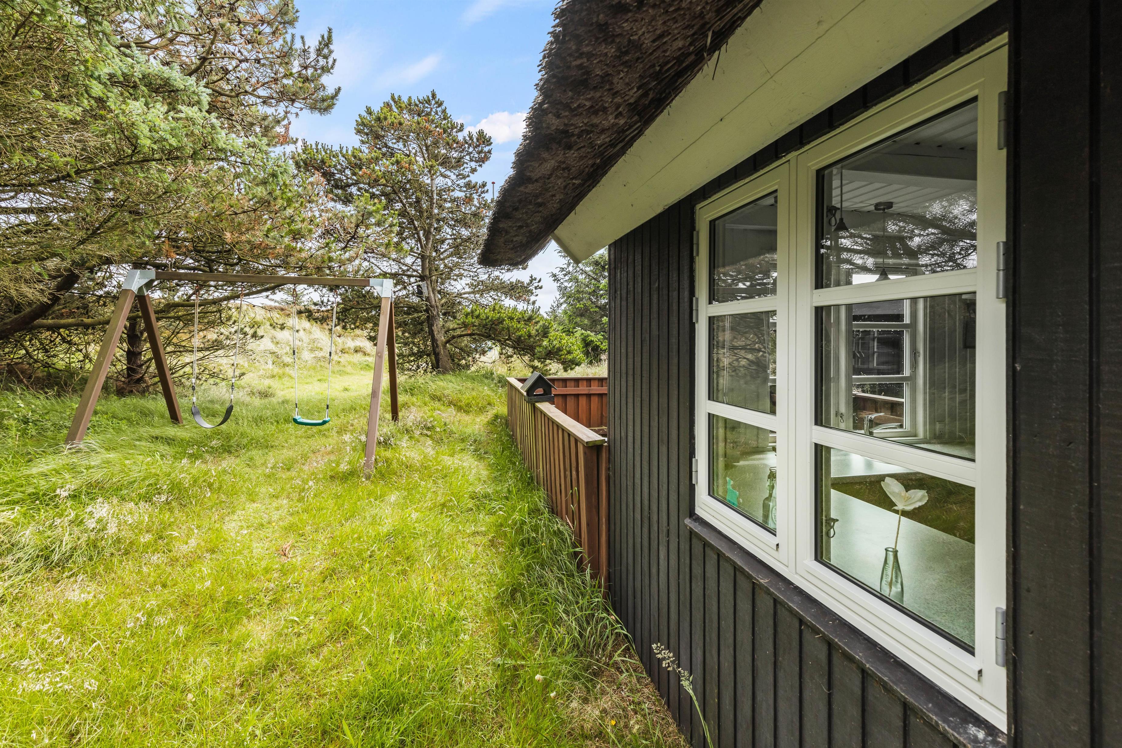 This beautiful thatched holiday home in Grærup sits on an idyllic natural plot of 1,793 square metres, offering plenty of space for outdoor activities. A terrace with sun loungers and barbecue invites you to enjoy al fresco dining. The swing and sandpit ensure children will have fun too. Here you can enjoy the fresh air and rejuvenate in natural surroundings.