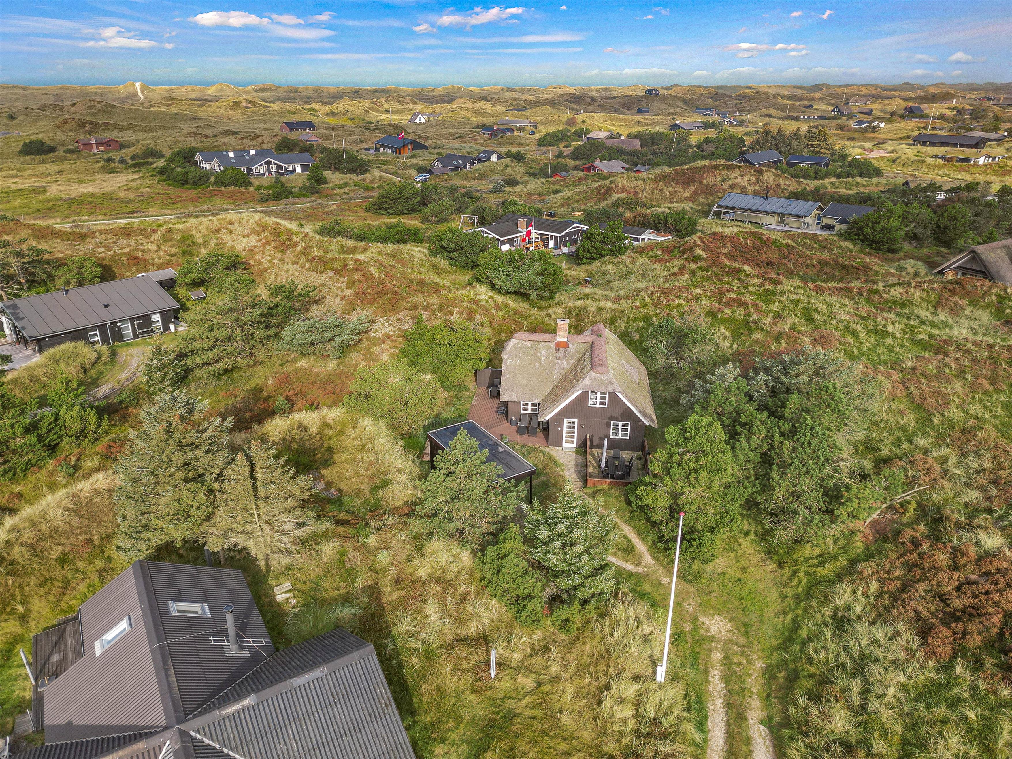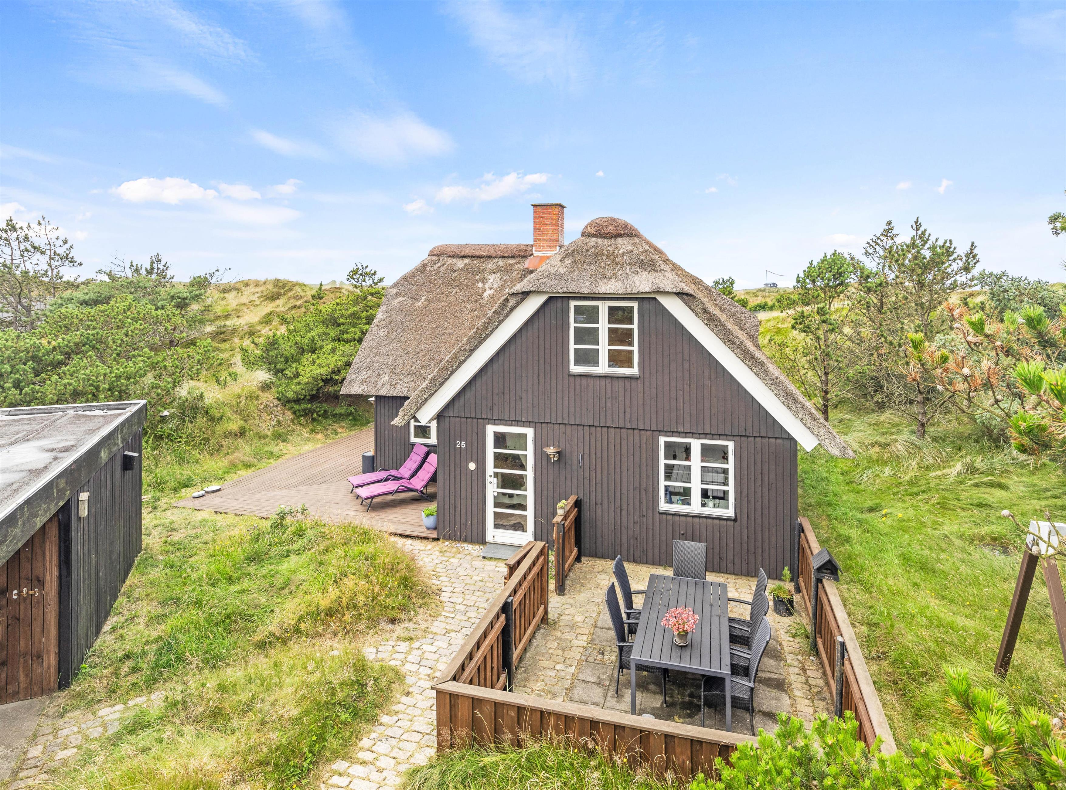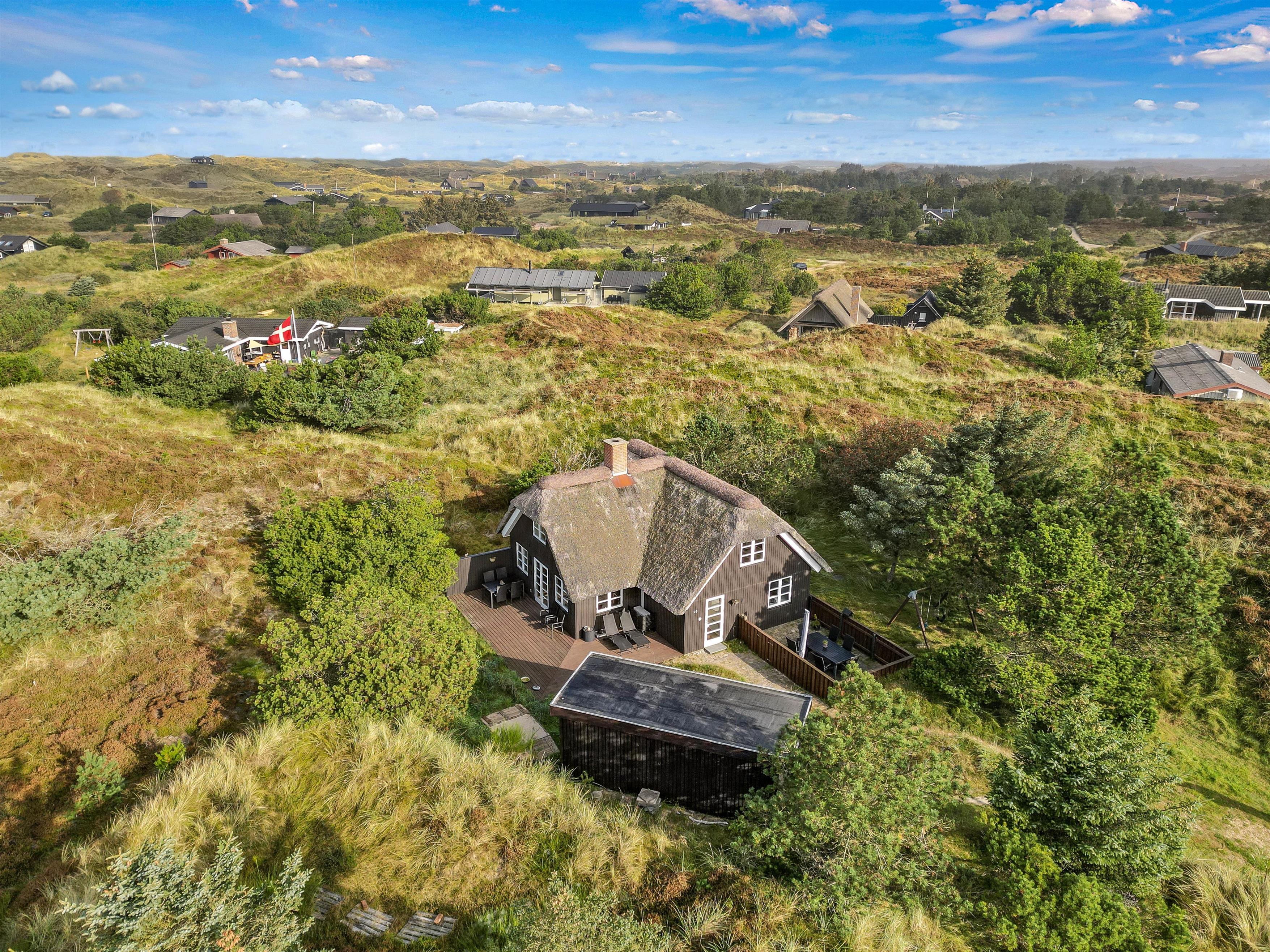 Welcome to this cosy holiday home in Grærup, Bjørnedalen 25, on the Danish west coast. This charming thatched holiday home offers 120 square metres of living space and accommodates up to 6 guests and 3 dogs. A sauna provides relaxing moments, while the thoughtfully chosen amenities ensure every comfort. Here you can enjoy a wonderful holiday in tranquil surroundings.