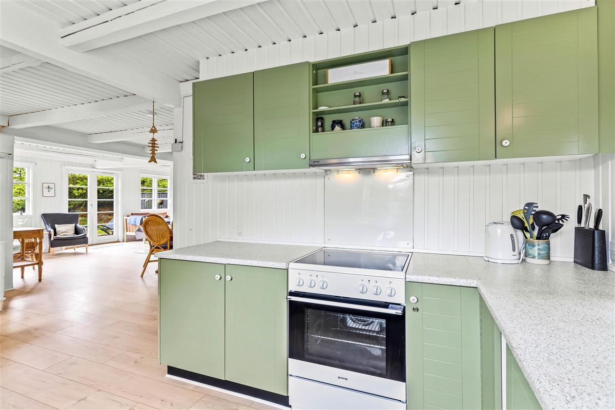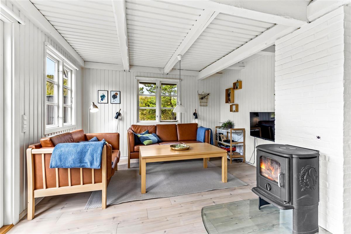 The wood-burning stove offers cosy evenings on the sofa, complemented by an energy-efficient heat pump for heating. The well-equipped kitchen includes a dishwasher and 80-litre freezer capacity. The bathroom features underfloor heating, and the adjoining sauna provides the perfect retreat for relaxation. Here you can warm up your muscles after long beach walks and truly unwind.