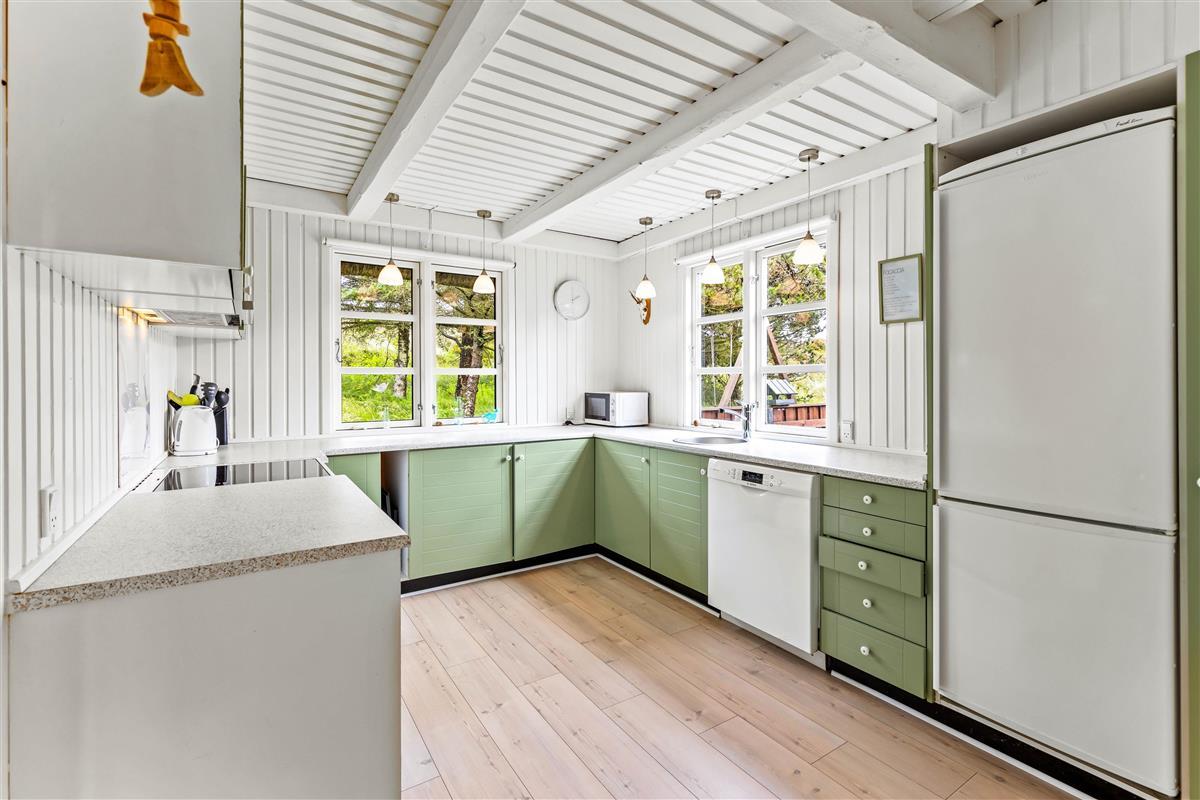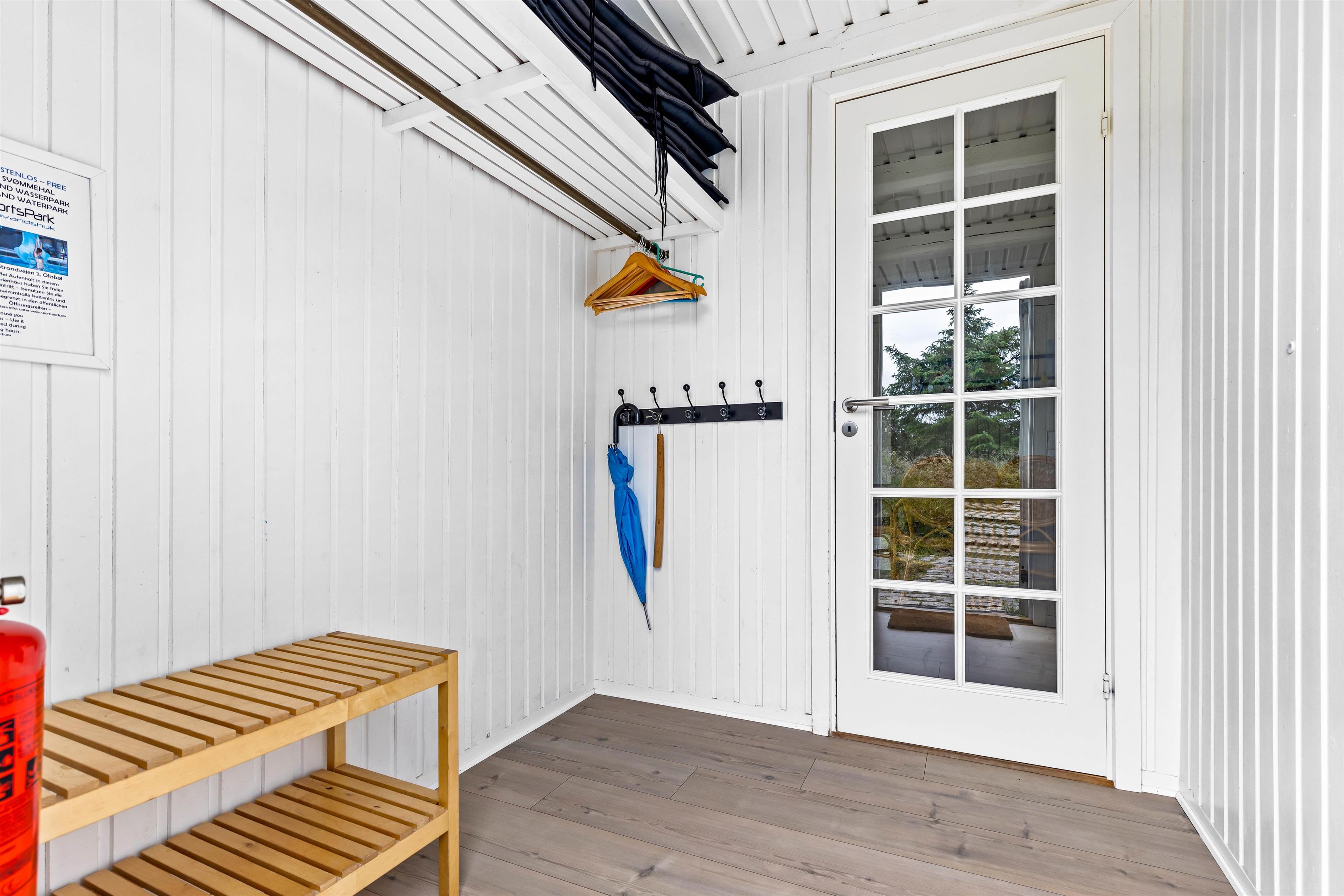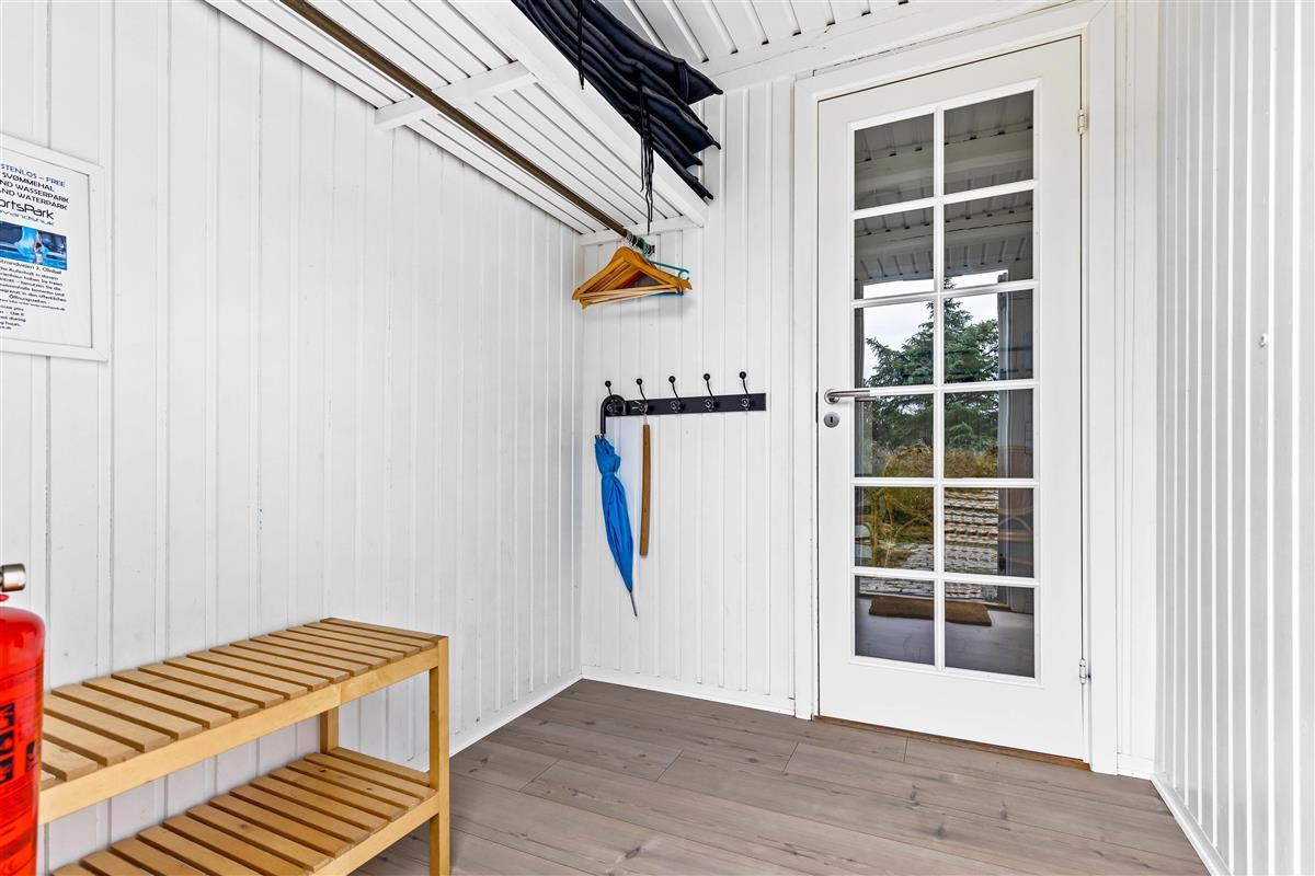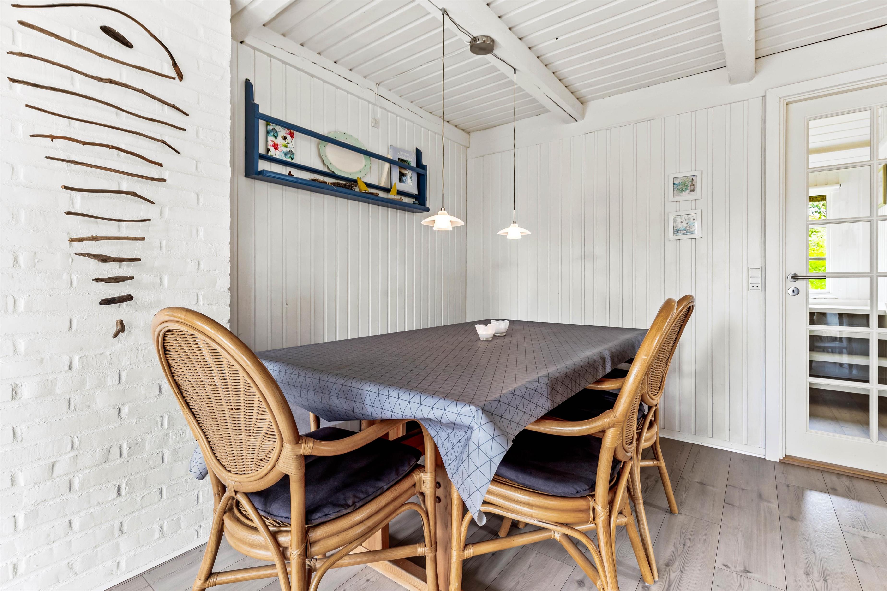 Upon entering, you'll find a practical entrance hall welcoming you with space for coats and shoes. The inviting living area, with its numerous windows and light wood features, creates a warm and welcoming atmosphere. The comfortable dining area is perfect for shared meals, while the TV with DVD player and Bluetooth speaker provide entertainment.