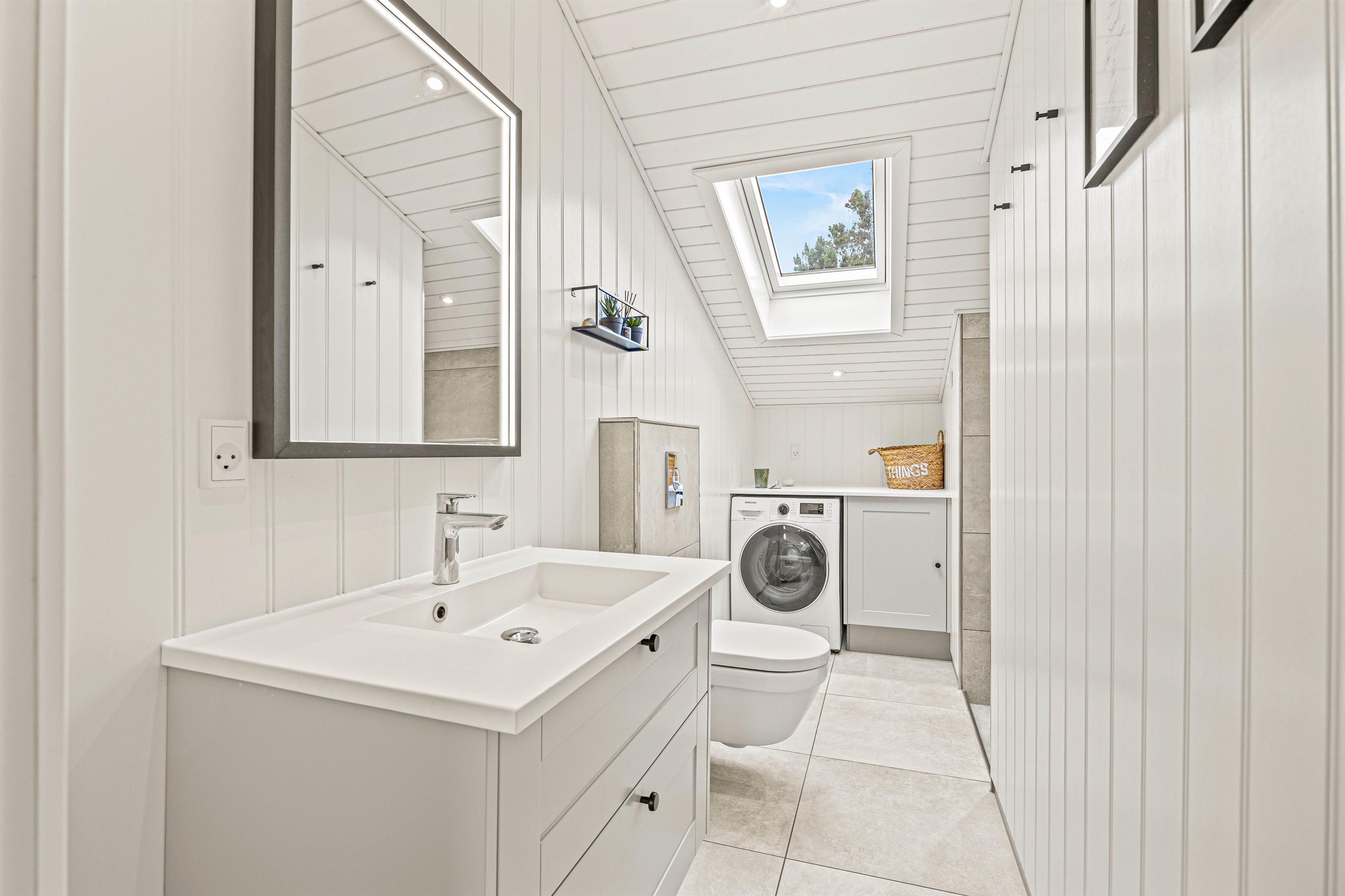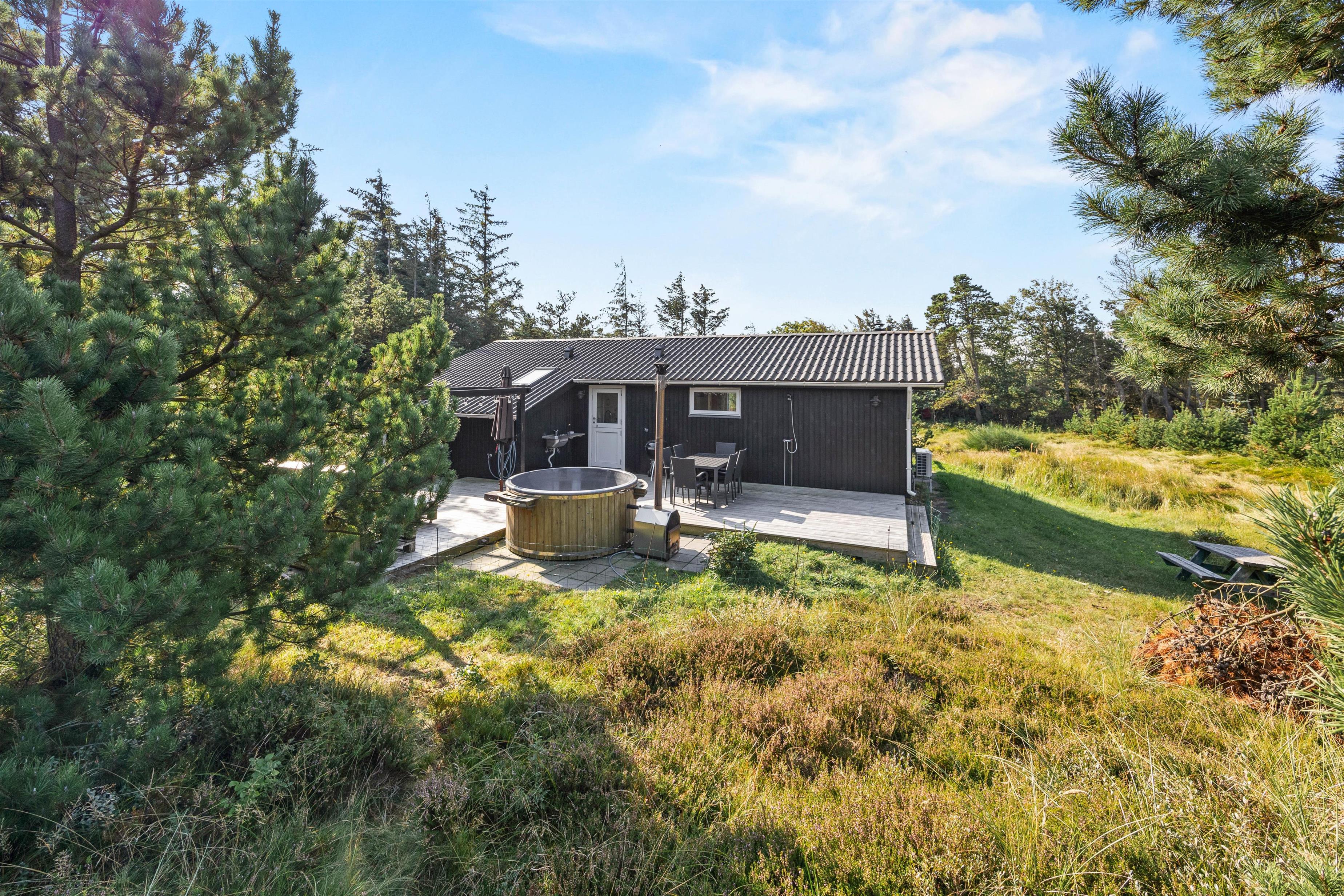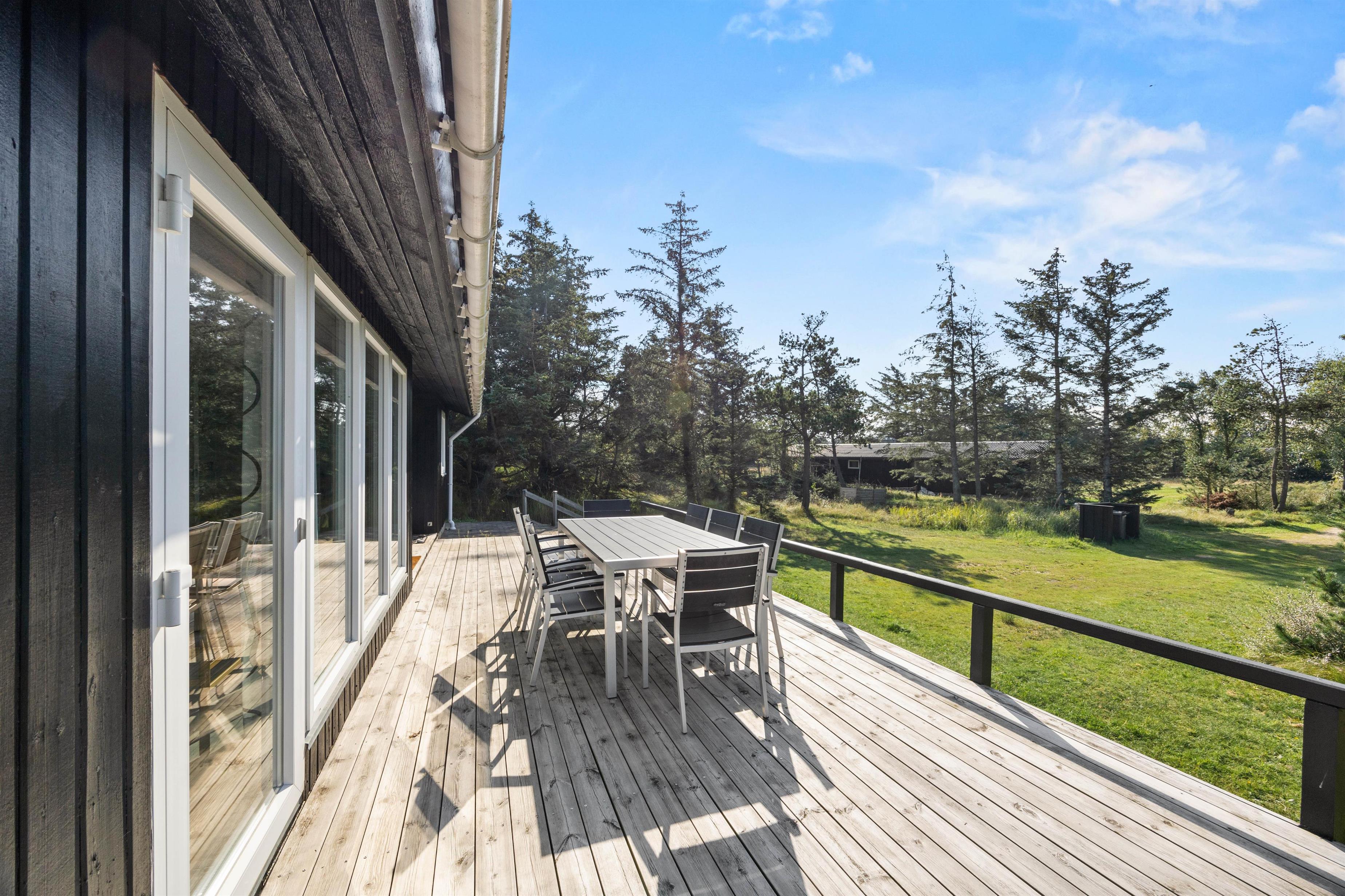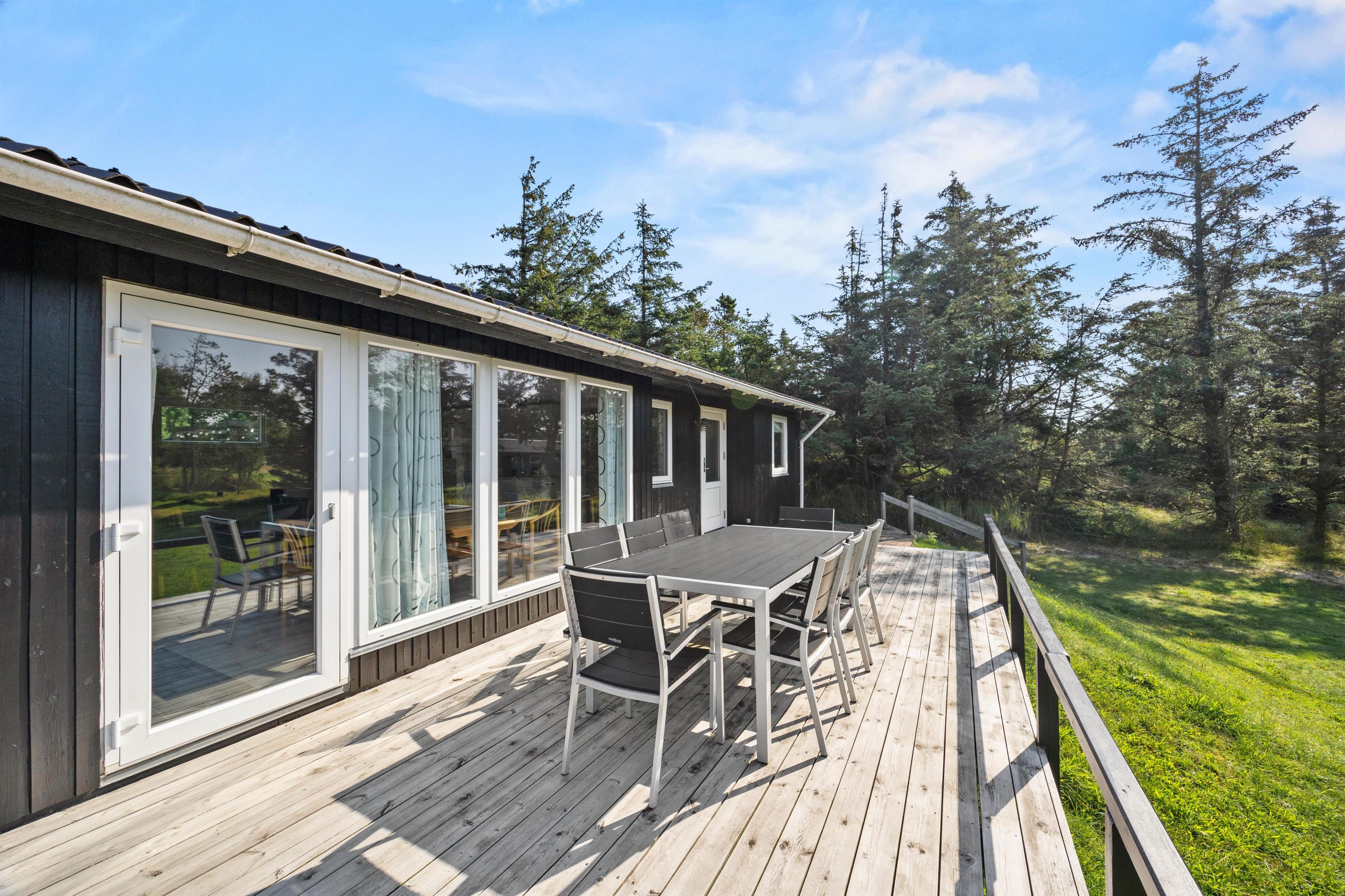 Your holiday home in Grærup sits on a spacious, hilly natural plot of 2,500 square metres. Here you can fully enjoy the fresh air and beautiful natural surroundings. The sheltered terrace in an elevated position features an outdoor kitchen with sink, gas barbecue, and comfortable sun loungers, allowing you to make the most of the panoramic views across the holiday region.