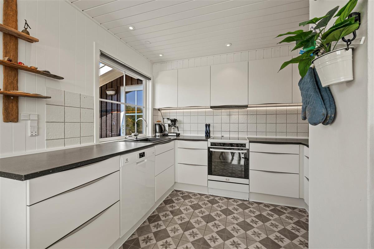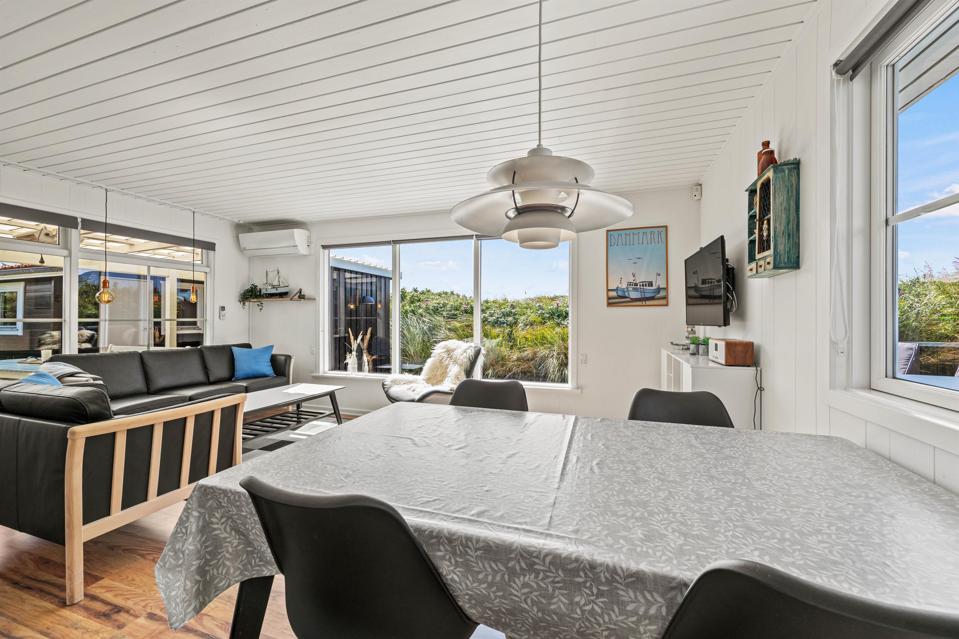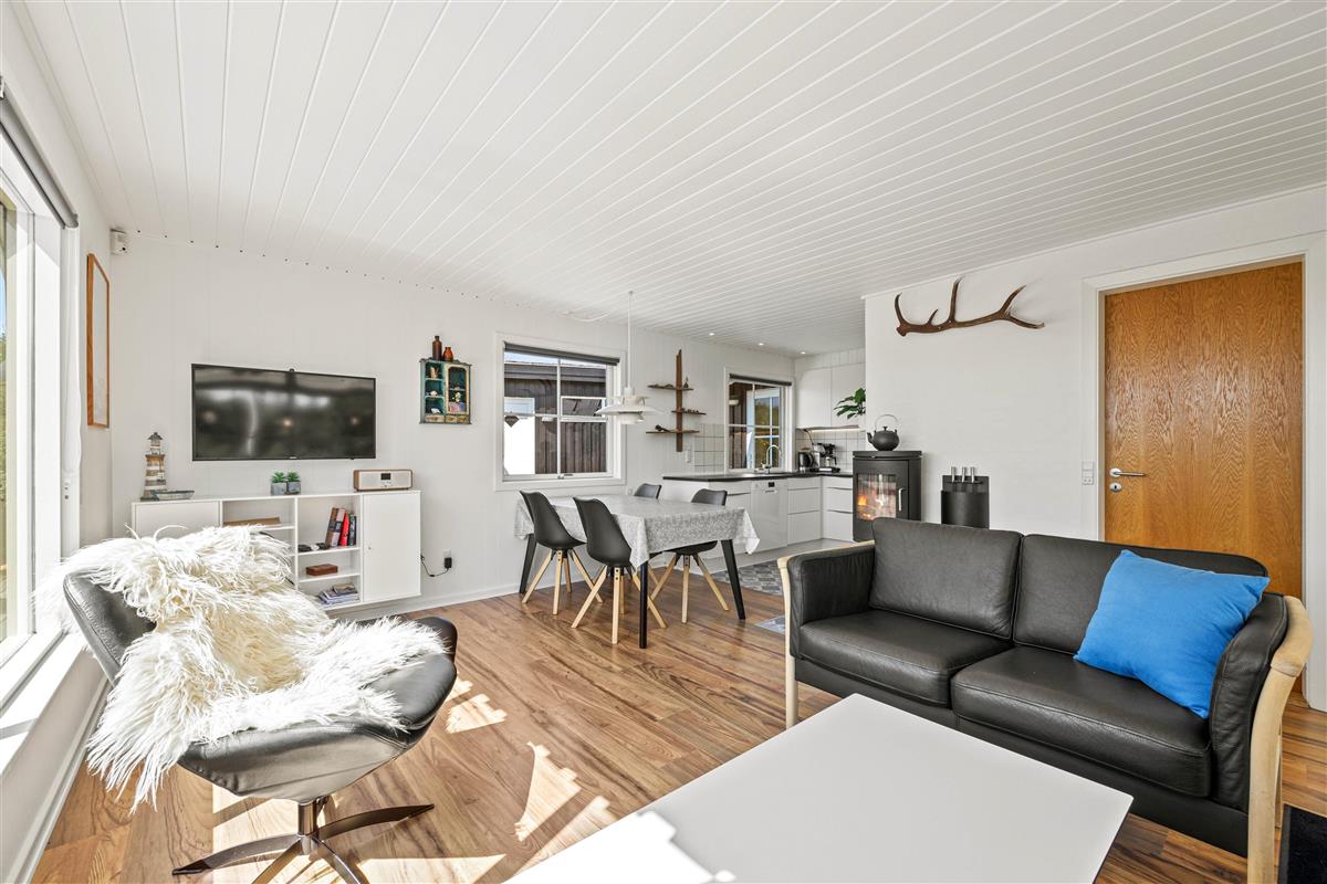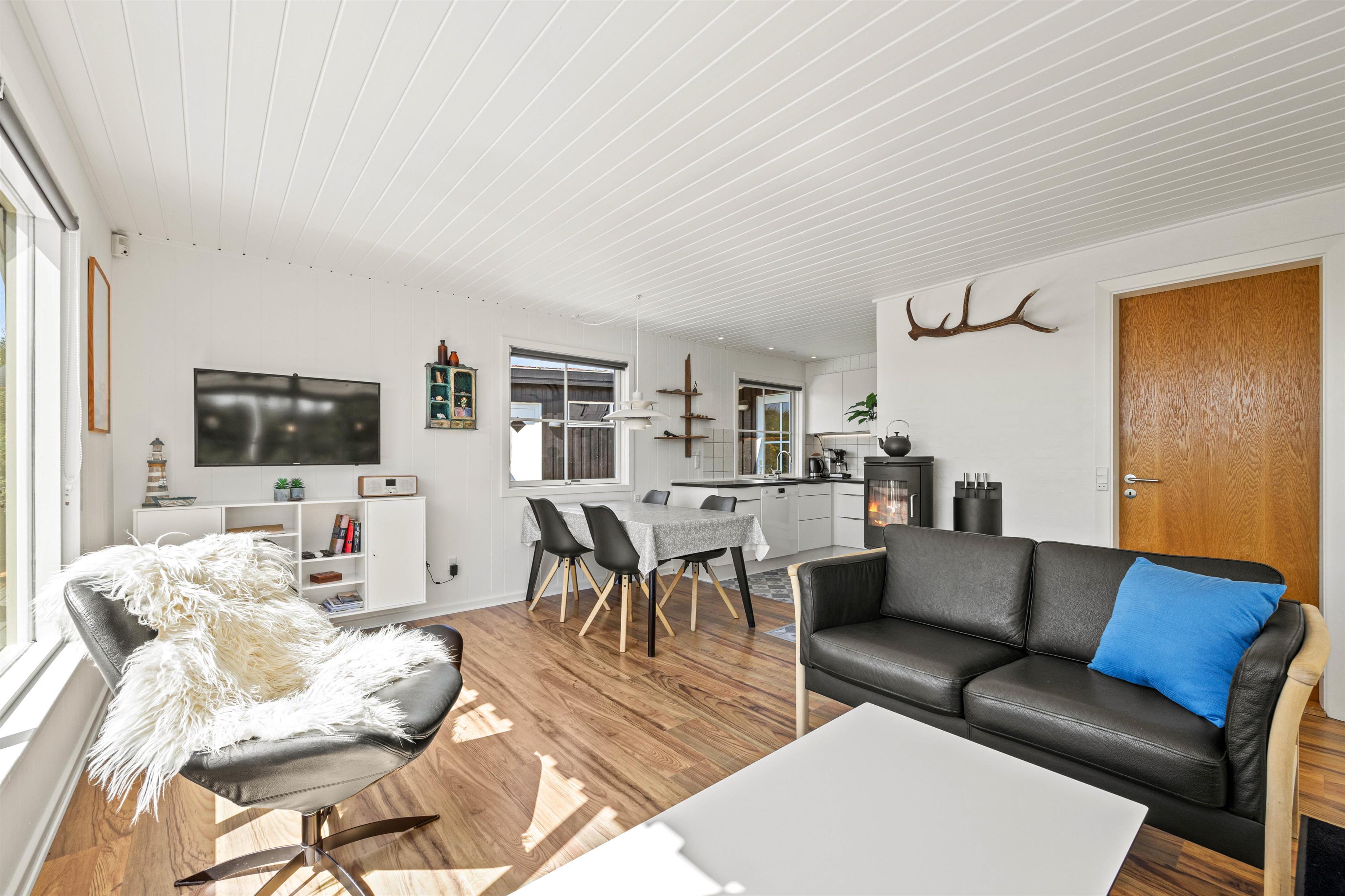 Upon entering this well-maintained holiday home, you'll immediately notice the bright, welcoming living area offering wonderful views over the natural grounds. Here you'll experience typical Scandinavian interior design, harmoniously combining functionality with comfort.
