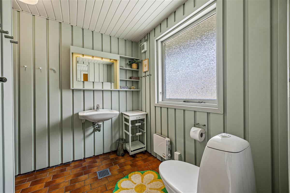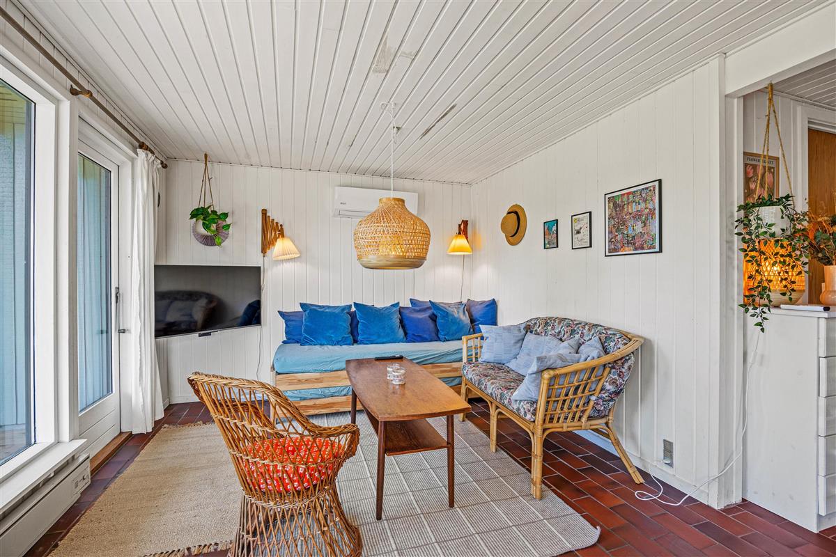 The living area offers a relaxing space for peaceful evenings and shared downtime. The bathroom features modern fixtures, and there's also an outdoor shower - perfect for hot summer days after time at the beach. Your four-legged friends are welcome too, as the holiday home is dog-friendly. Please note that a maximum of one dog is permitted.