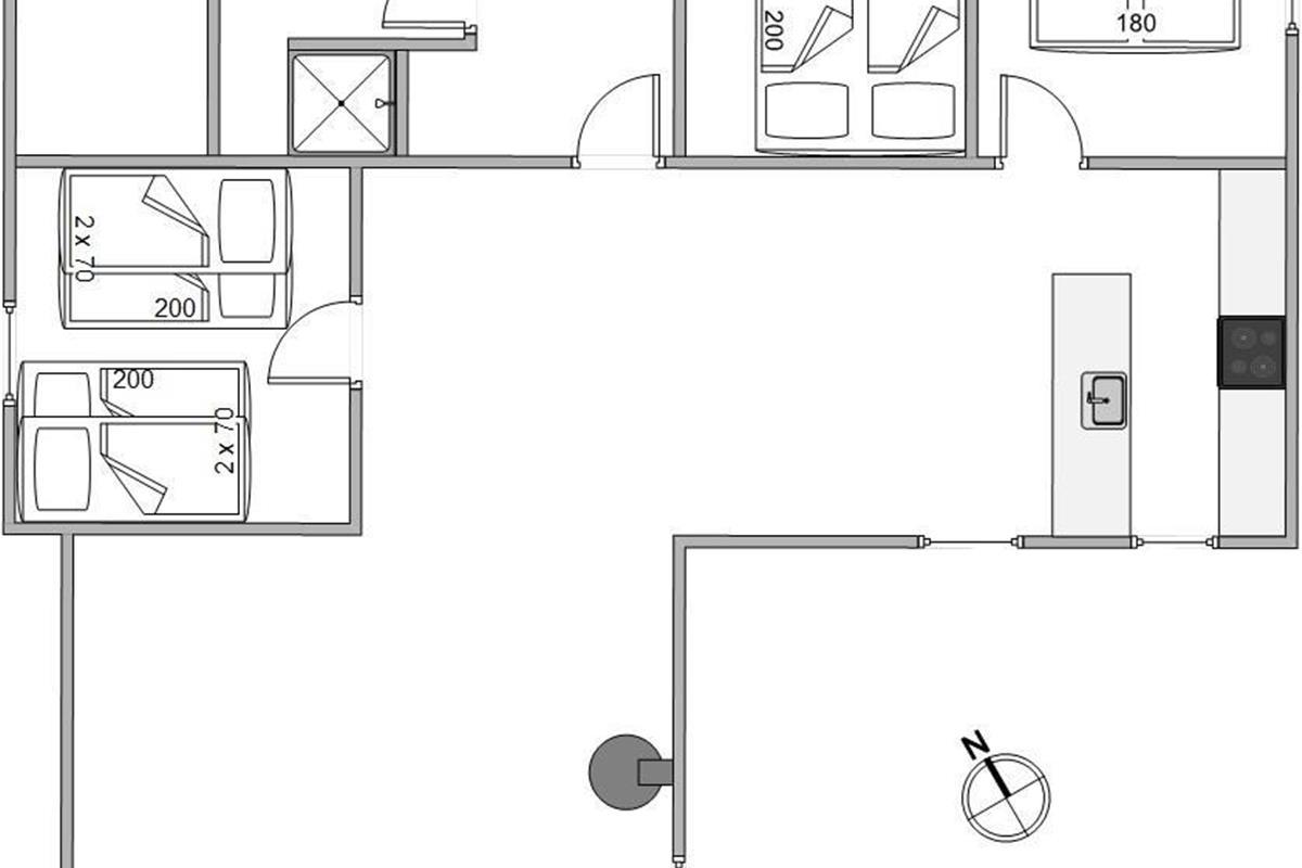 This thoughtfully furnished holiday home in Grærup Strand spans 76 square metres and accommodates up to 5 people. You'll find three comfortable bedrooms fitted with two double beds and two bunk beds. A wood-burning stove creates a cosy atmosphere on cold days while you spend evenings together.