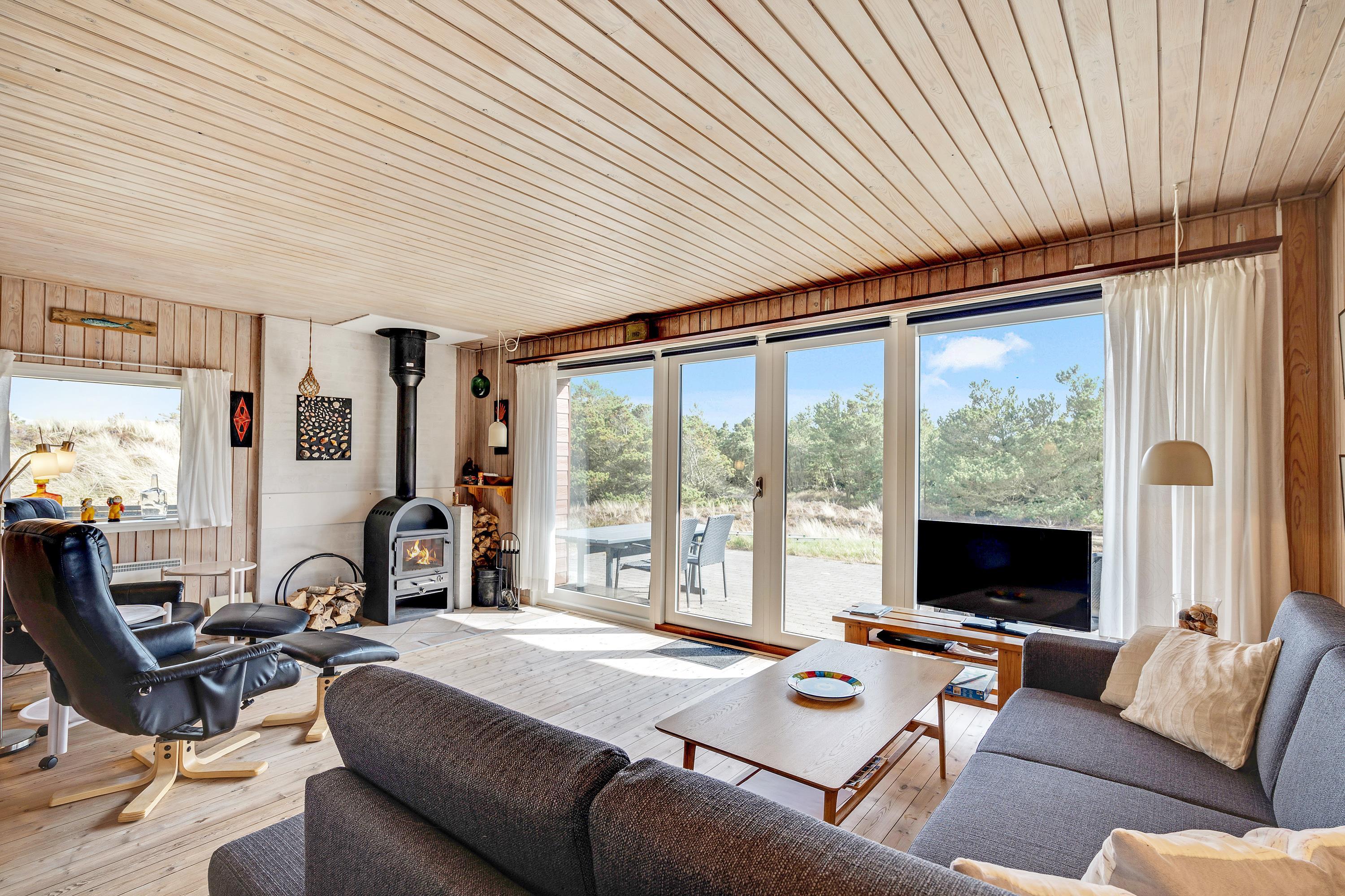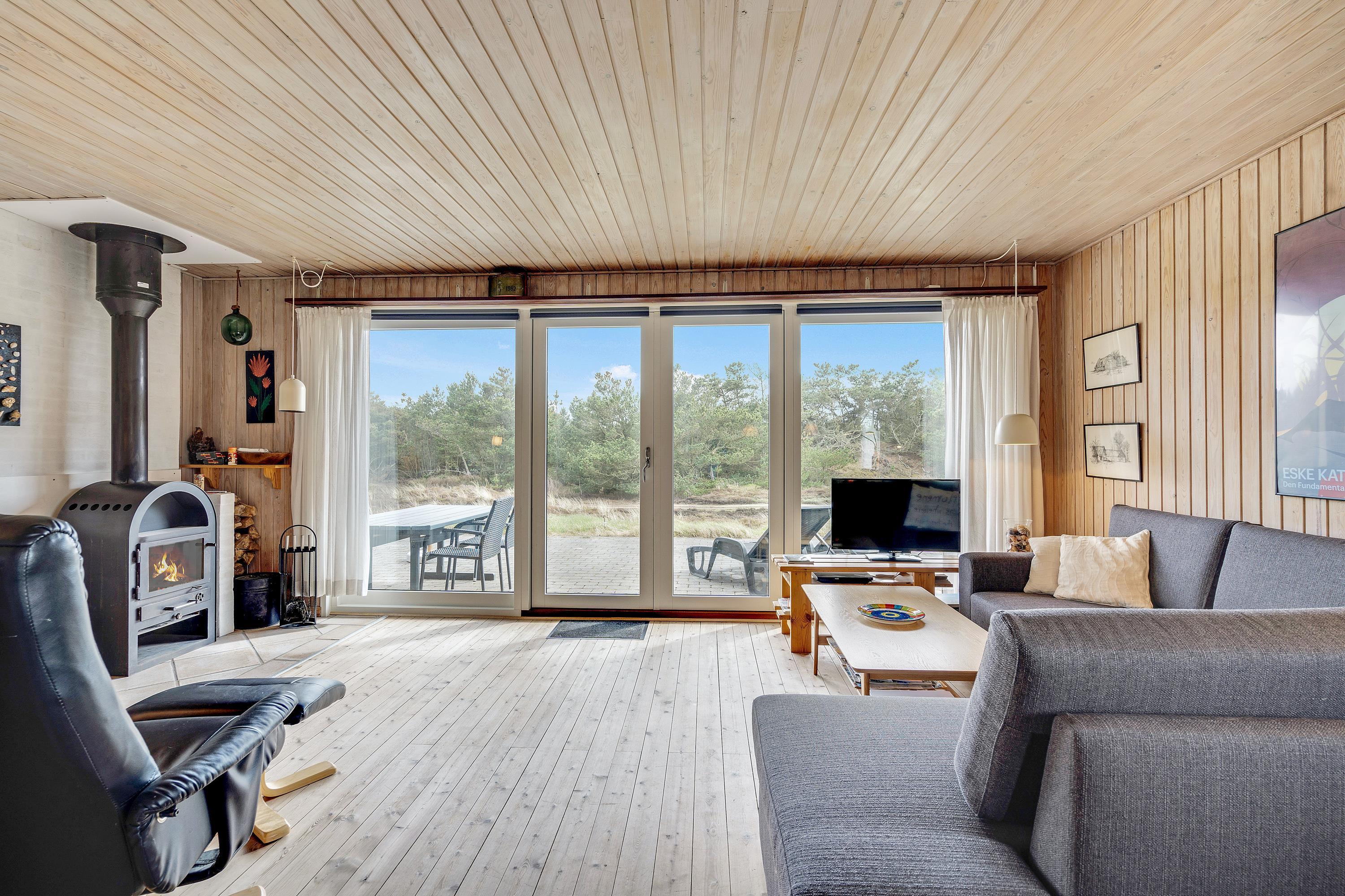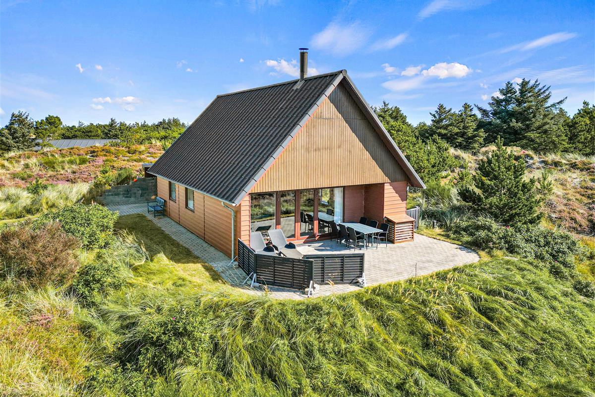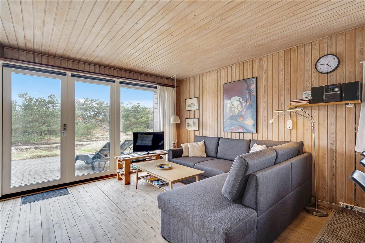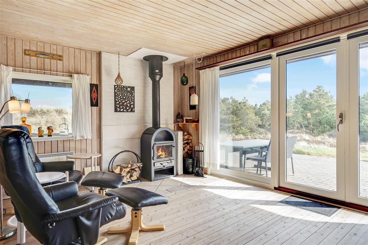 This delightful holiday home at Græruphavvej 5 awaits you, nestled in the fantastic natural surroundings of the West Coast. The wooden house, flooded with light through large panoramic windows, is bright and personally furnished. It sits on a natural dune close to the magnificent North Sea beach. Your four-legged friends are also warmly welcome here.