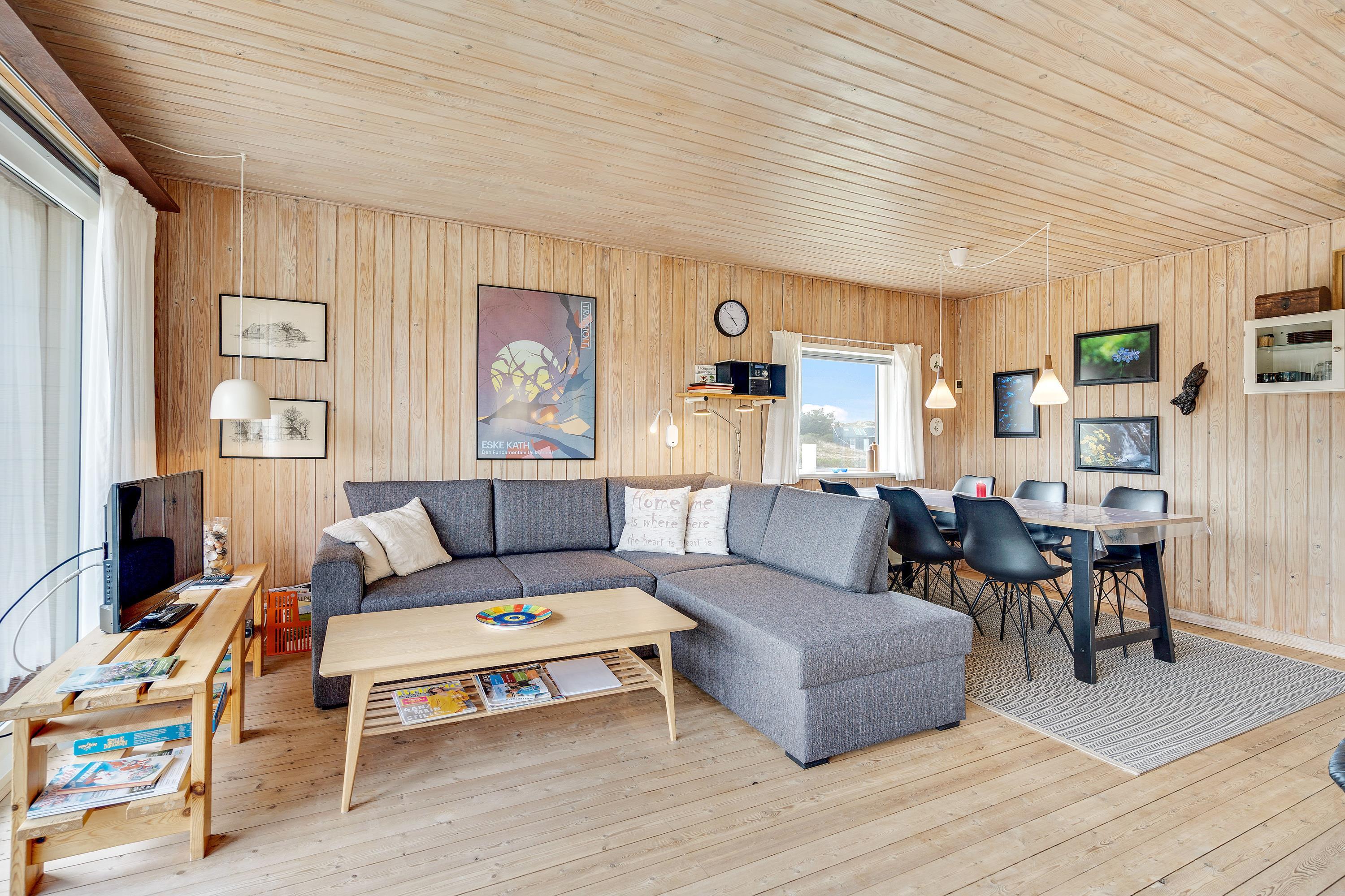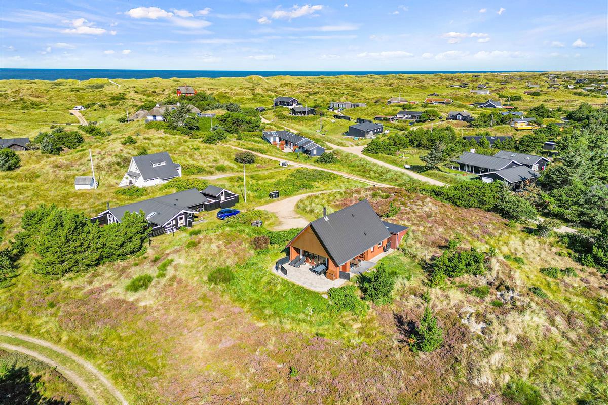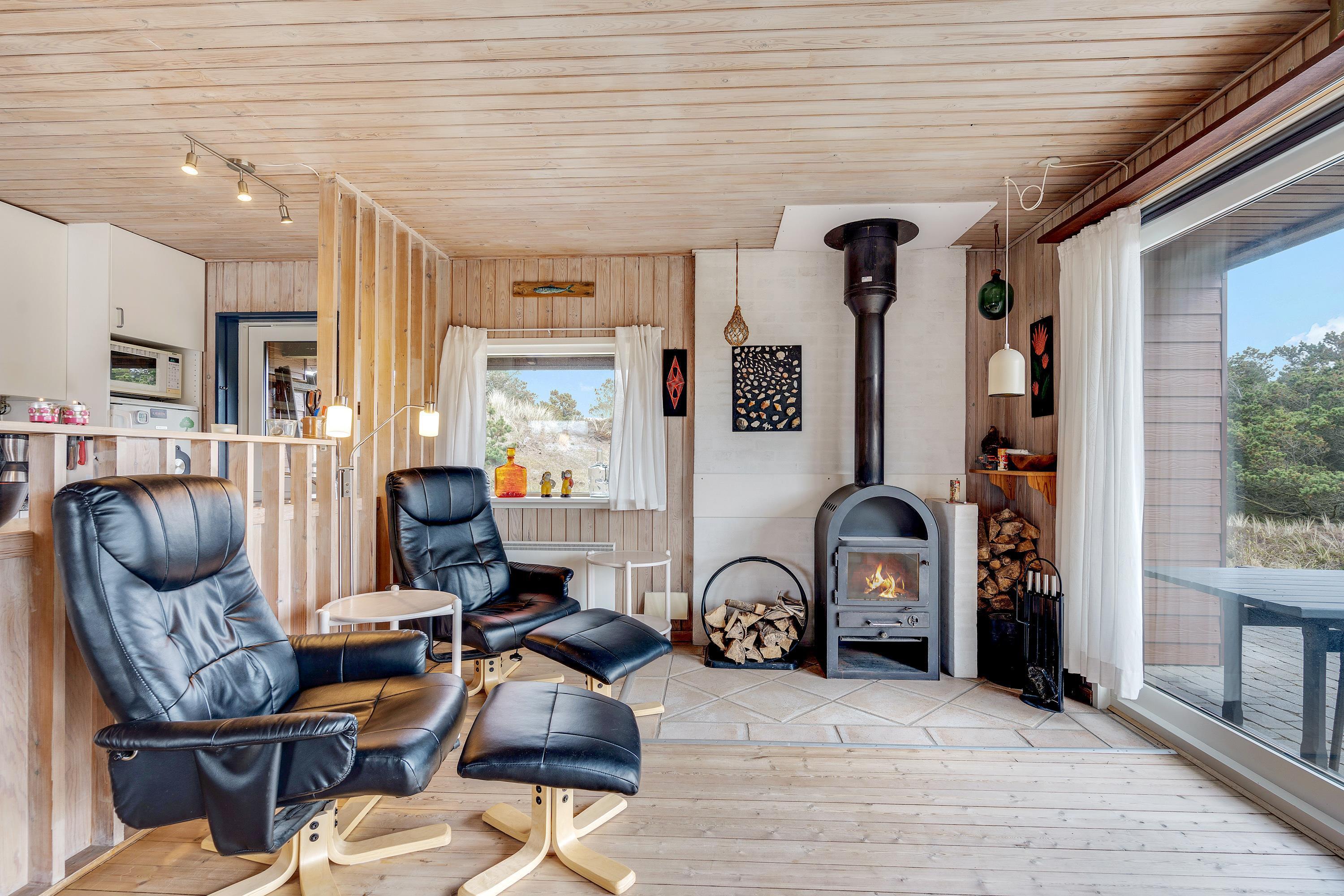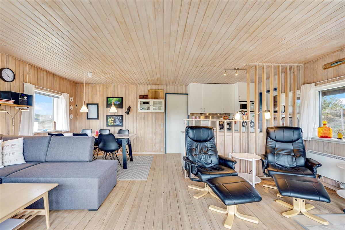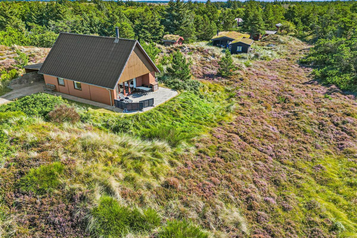 This delightful holiday home at Græruphavvej 5 awaits you, nestled in the fantastic natural surroundings of the West Coast. The wooden house, flooded with light through large panoramic windows, is bright and personally furnished. It sits on a natural dune close to the magnificent North Sea beach. Your four-legged friends are also warmly welcome here.
