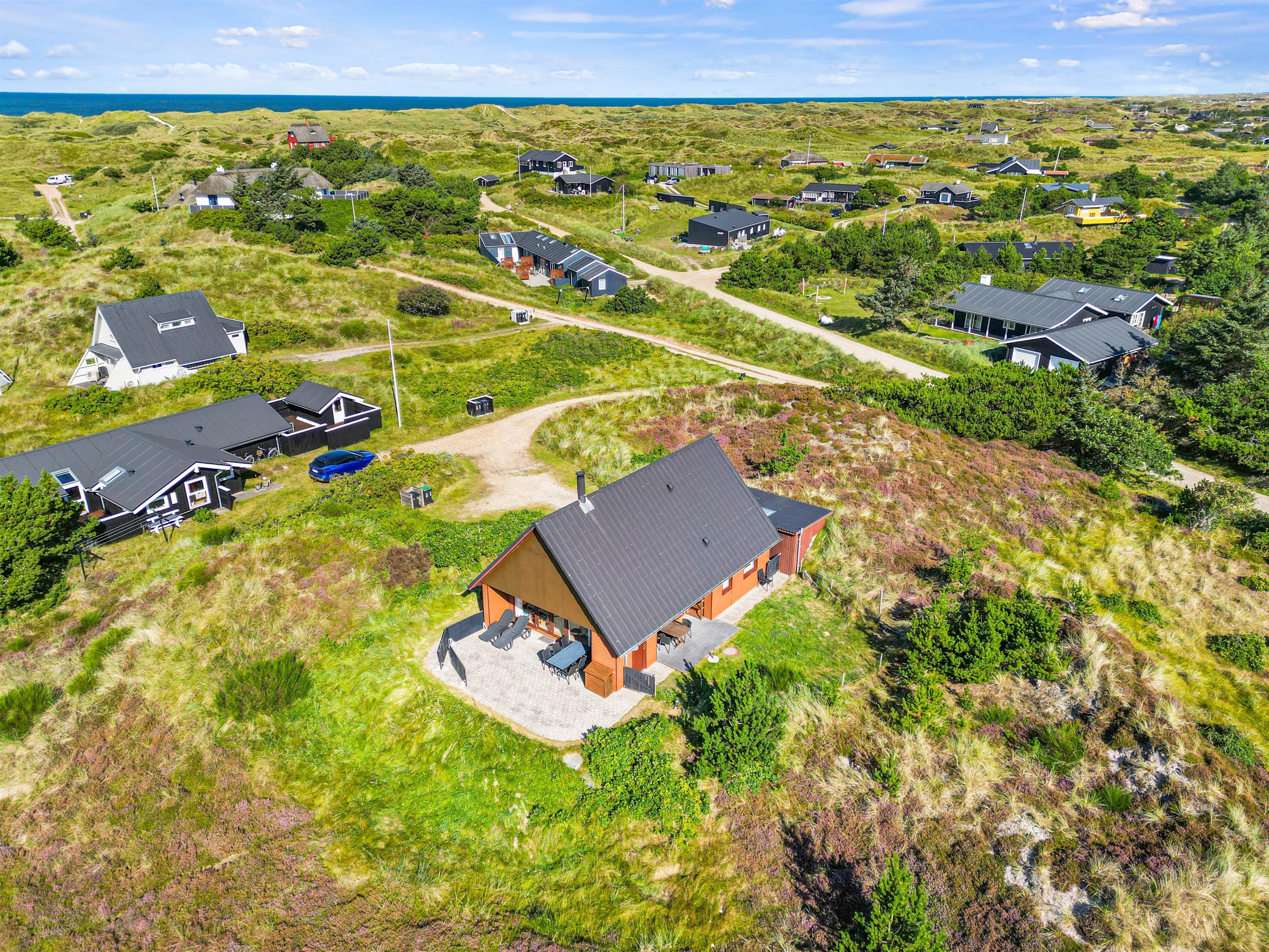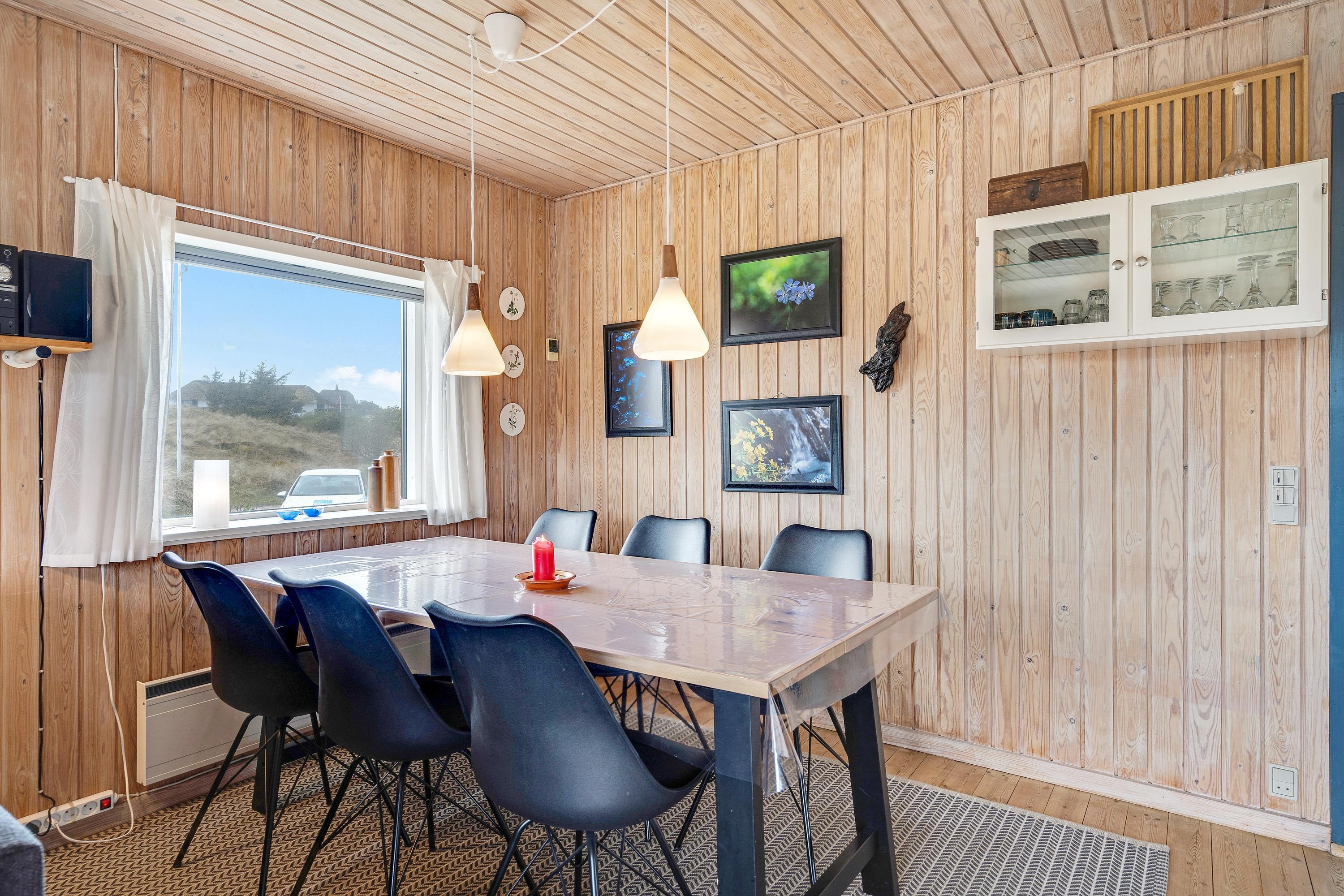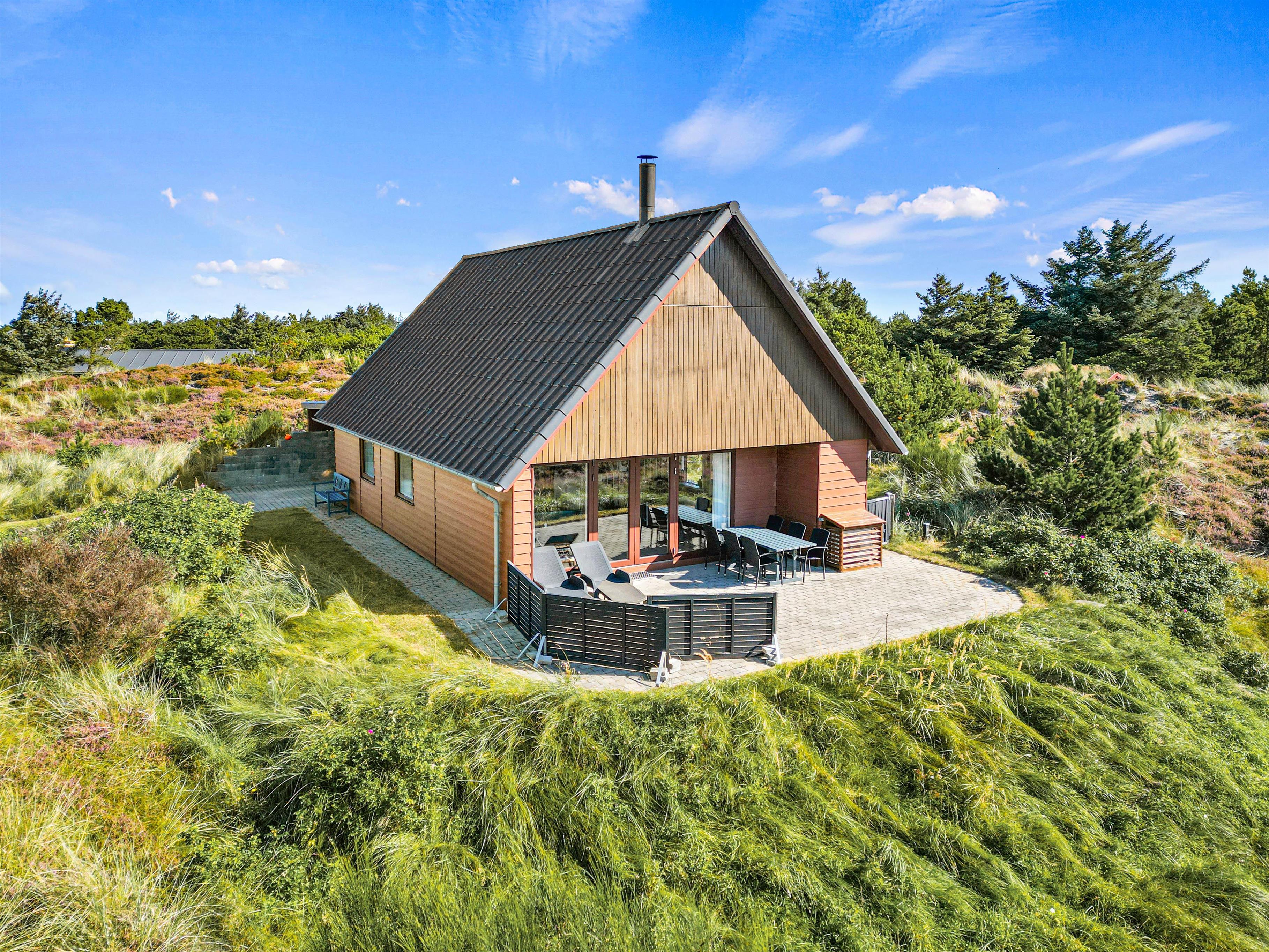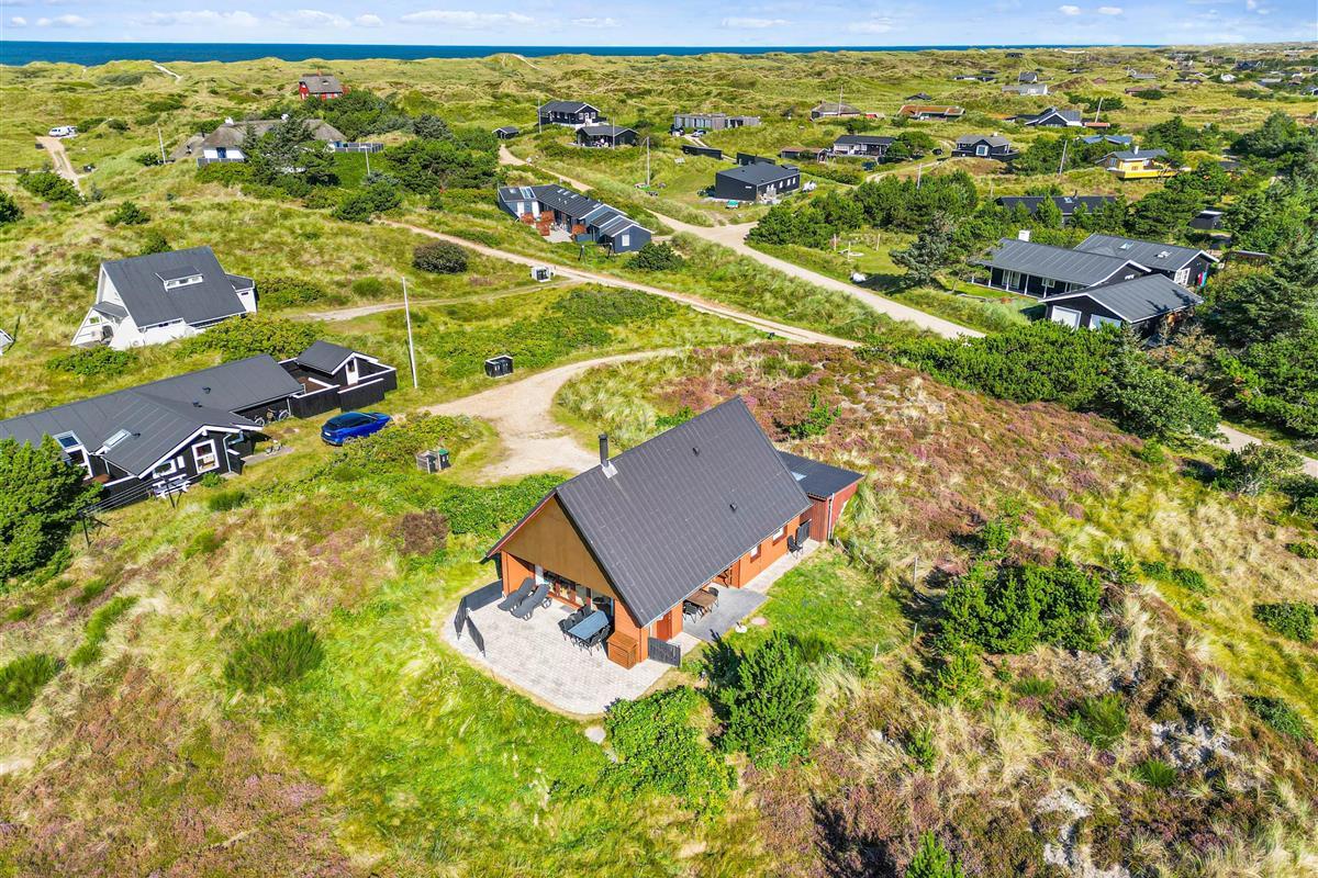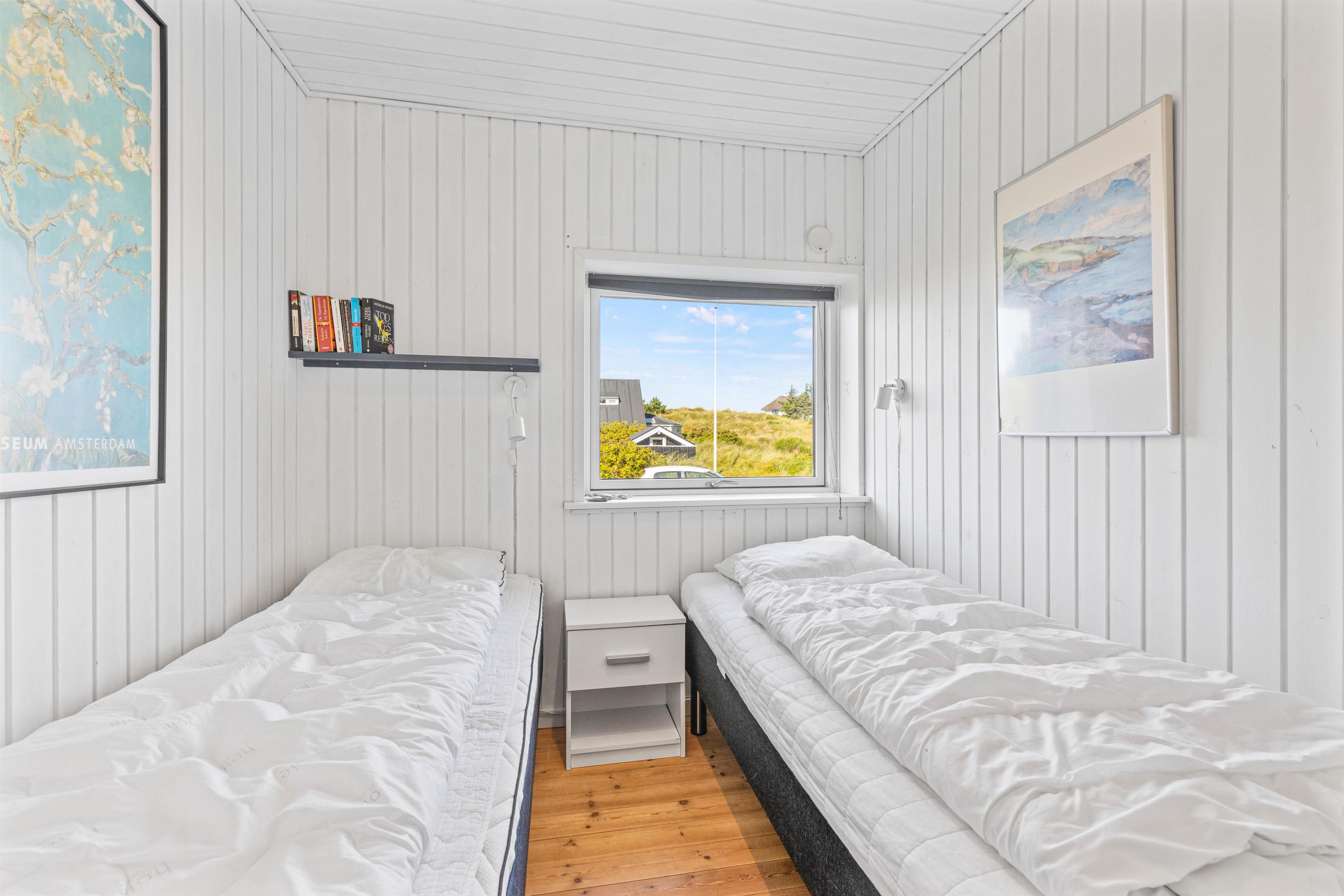 This delightful holiday home at Græruphavvej 5 awaits you, nestled in the fantastic natural surroundings of the West Coast. The wooden house, flooded with light through large panoramic windows, is bright and personally furnished. It sits on a natural dune close to the magnificent North Sea beach. Your four-legged friends are also warmly welcome here.
