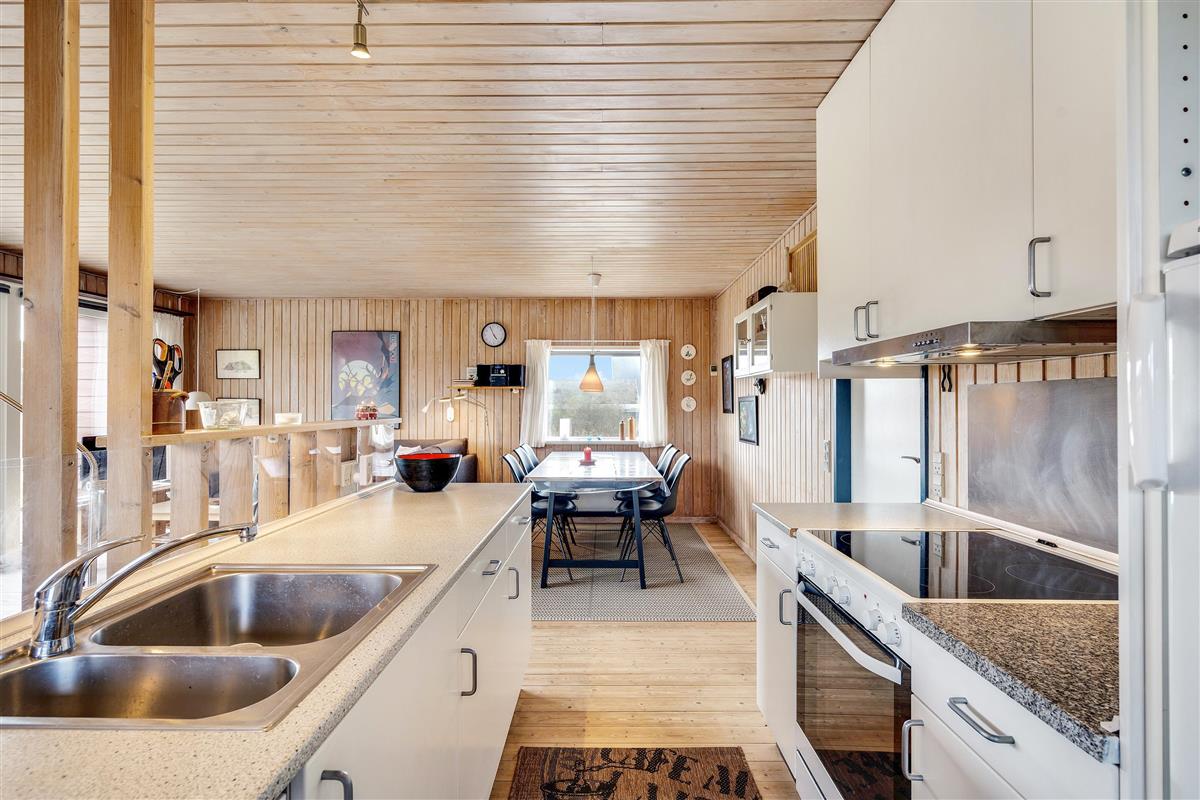 This cosy wooden house in Grærup Strand is the perfect base for a peaceful and relaxing holiday surrounded by nature. The classic interior featuring plenty of light wooden elements, combined with personal touches, creates a welcoming and inviting atmosphere.