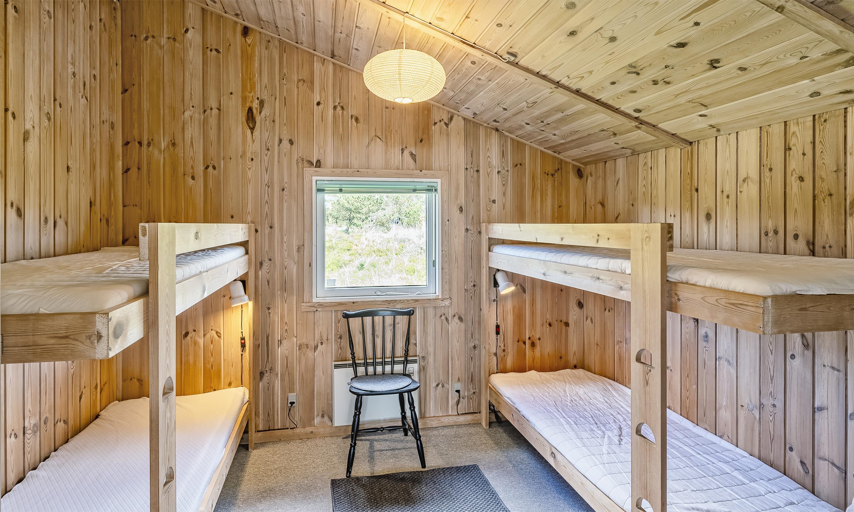 3 bedrooms. 1 with double bed 180x200 cm. 1 with 2 single beds (90x200 cm each). 1 with 2 bunk bed with 2 beds (90x200 cm each).