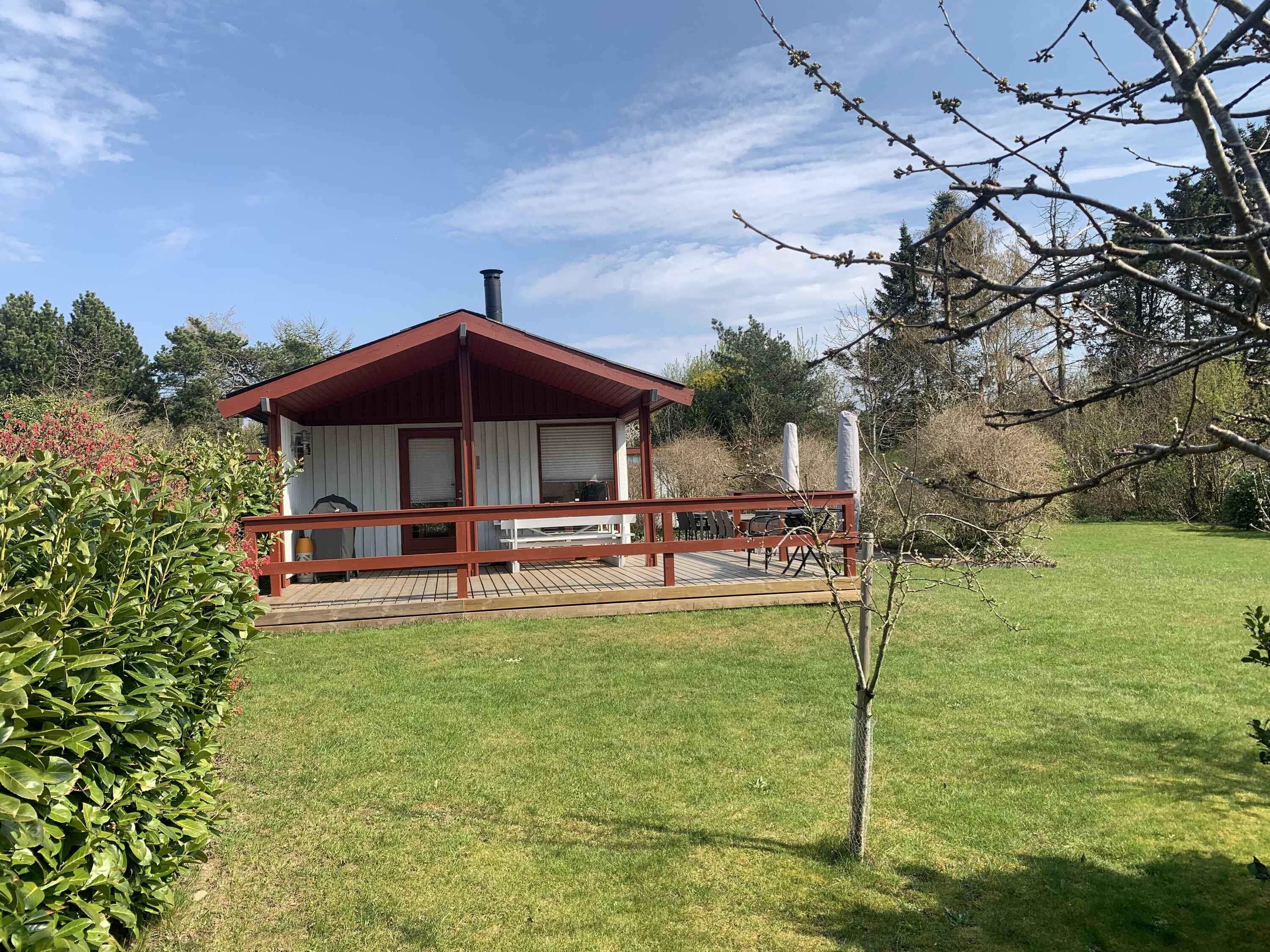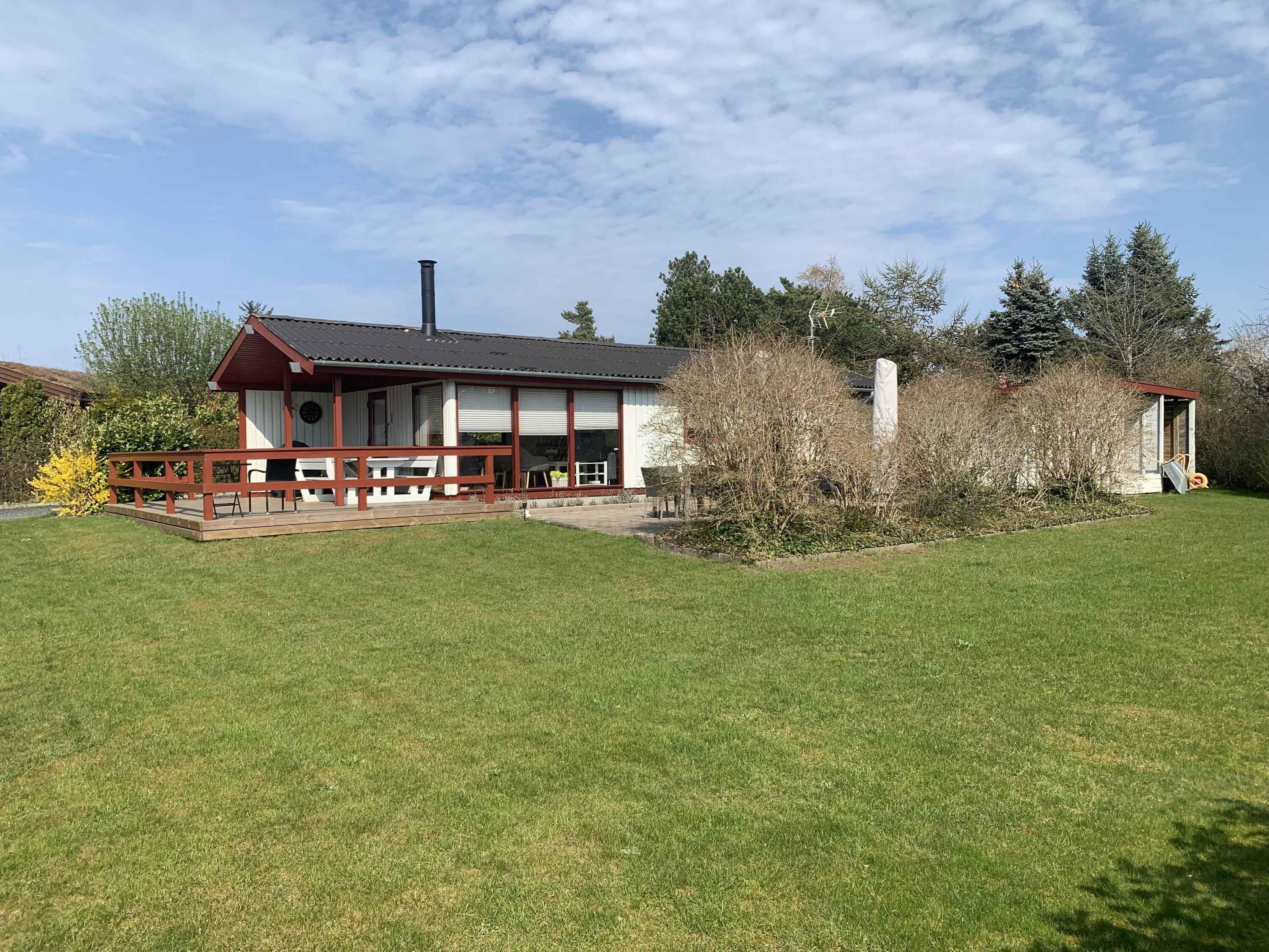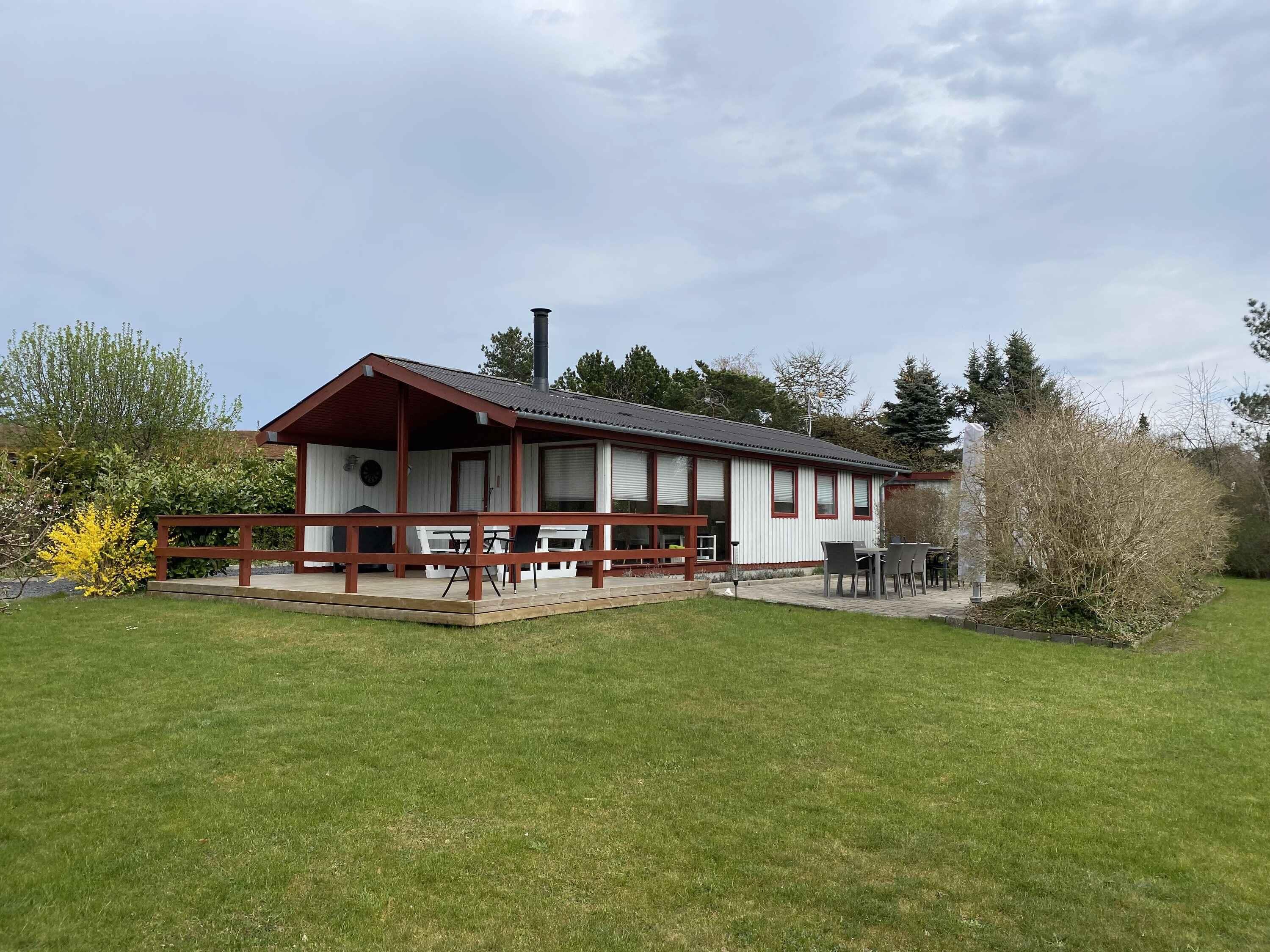 Gezellig houten zomerhuis dichtbij strand en natuur met drie slaapkamers en nieuw terras uit 2023 voor een ontspannen vakantie.