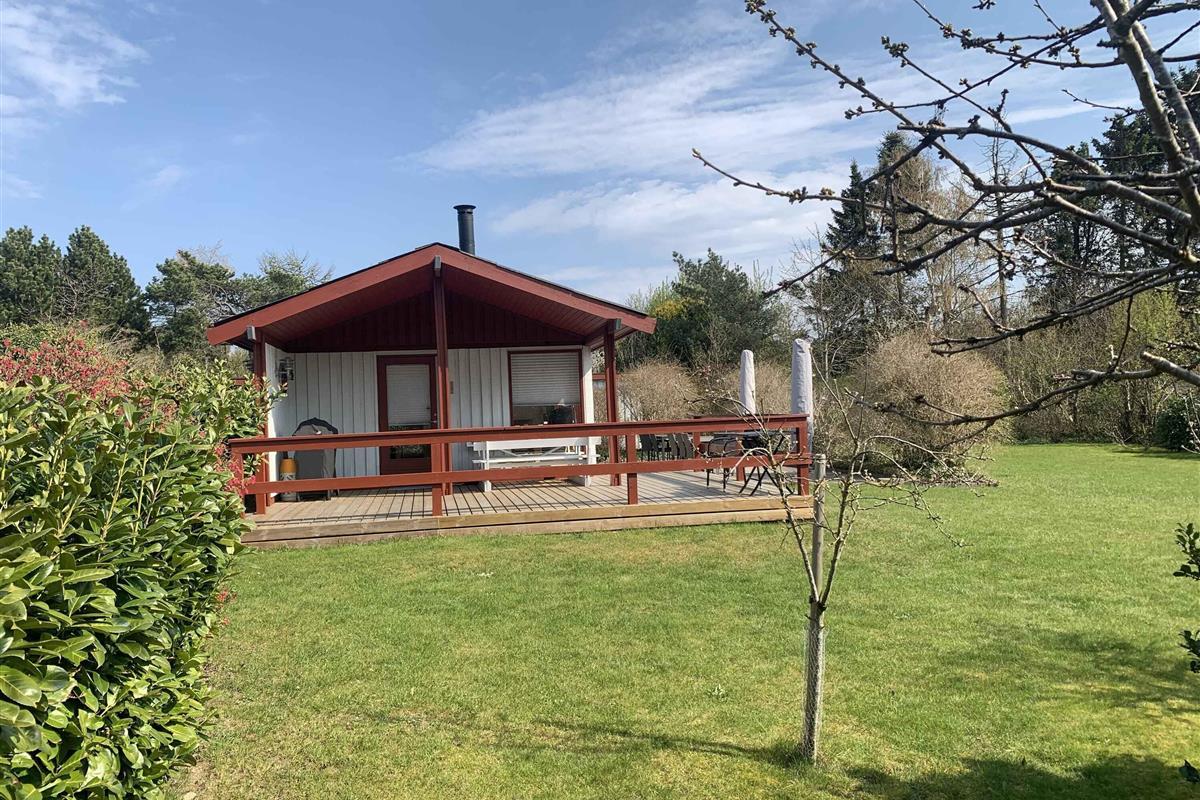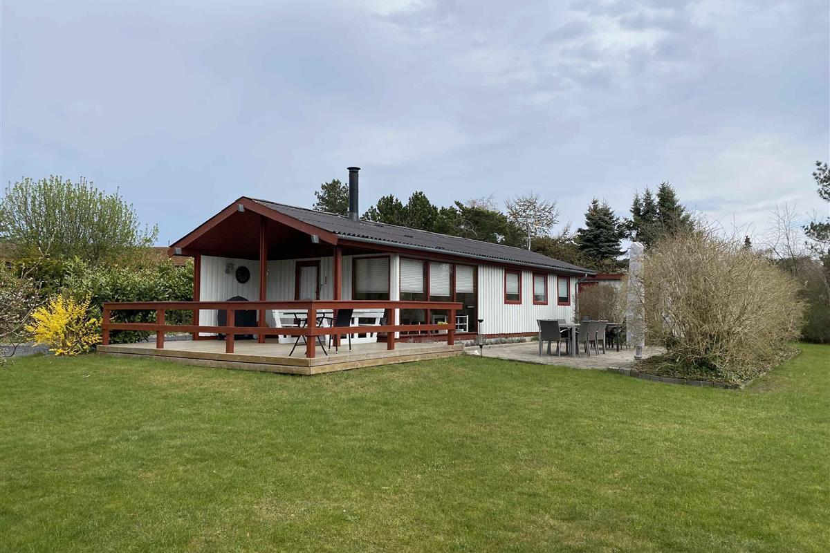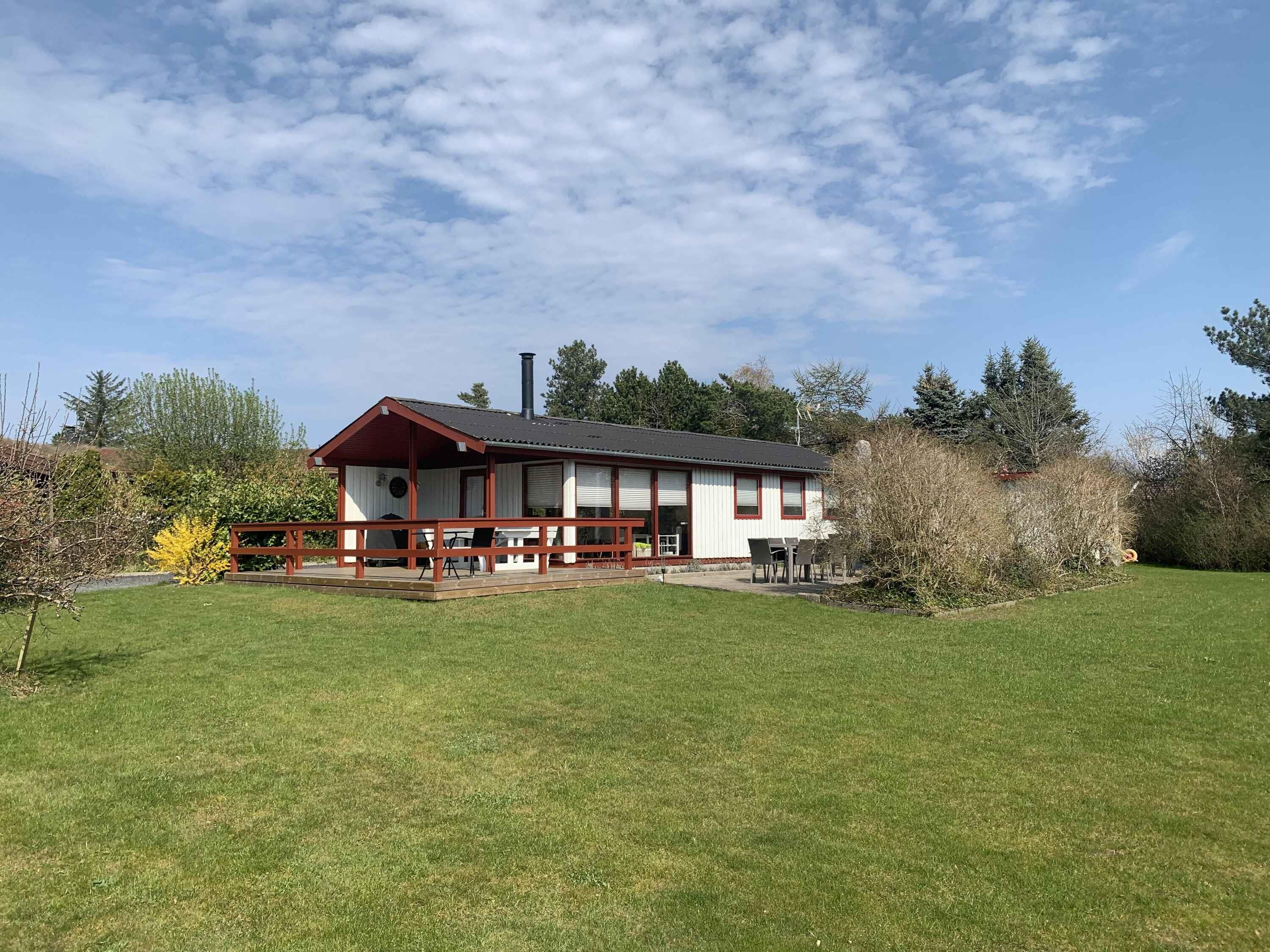 Gezellig houten zomerhuis dichtbij strand en natuur met drie slaapkamers en nieuw terras uit 2023 voor een ontspannen vakantie.