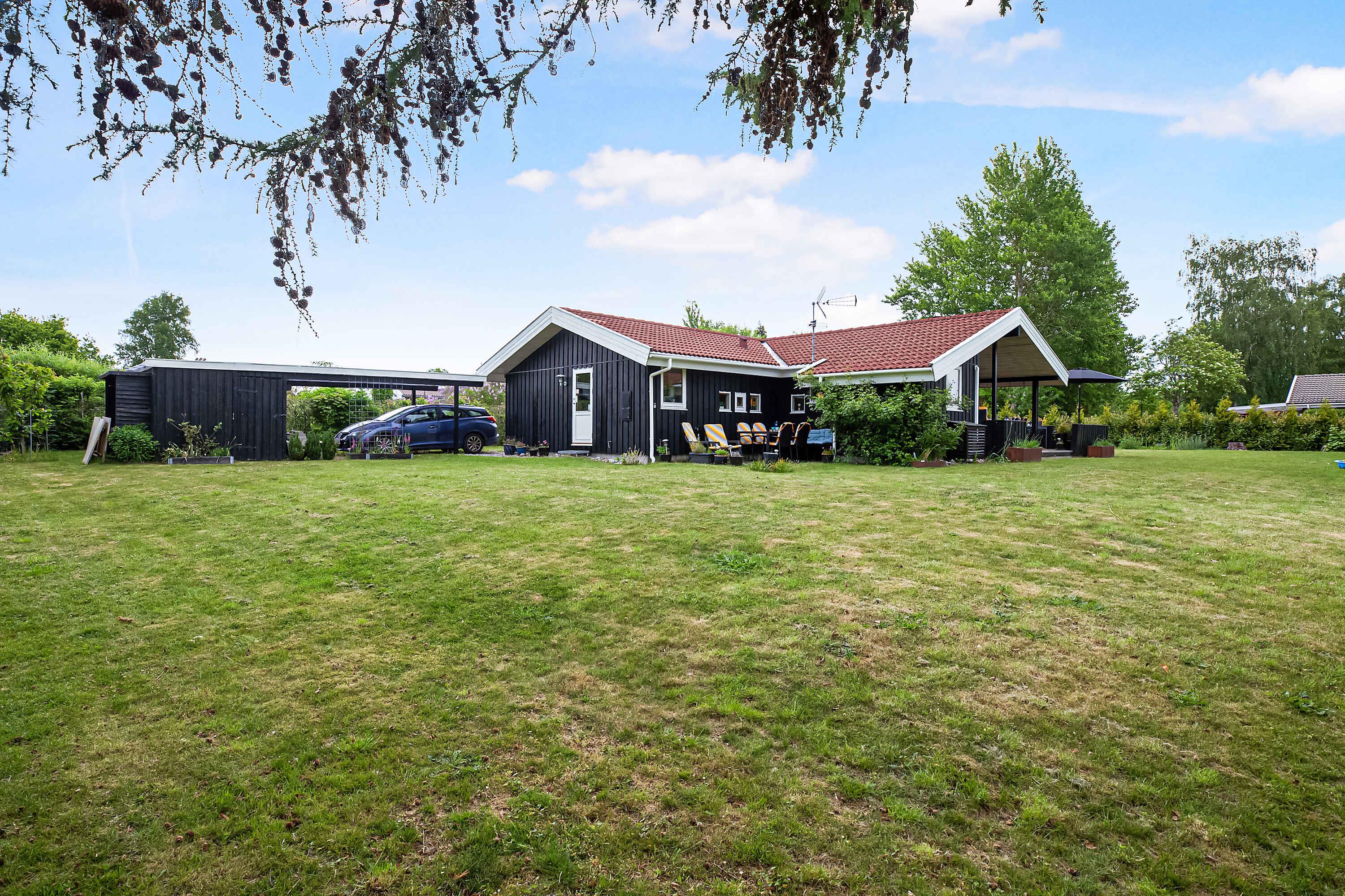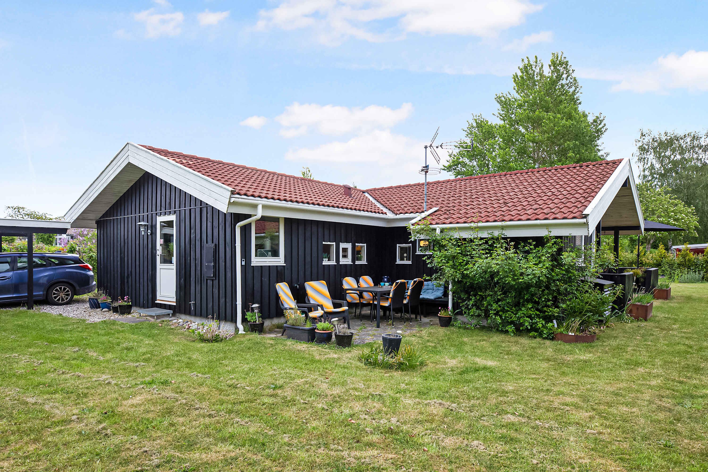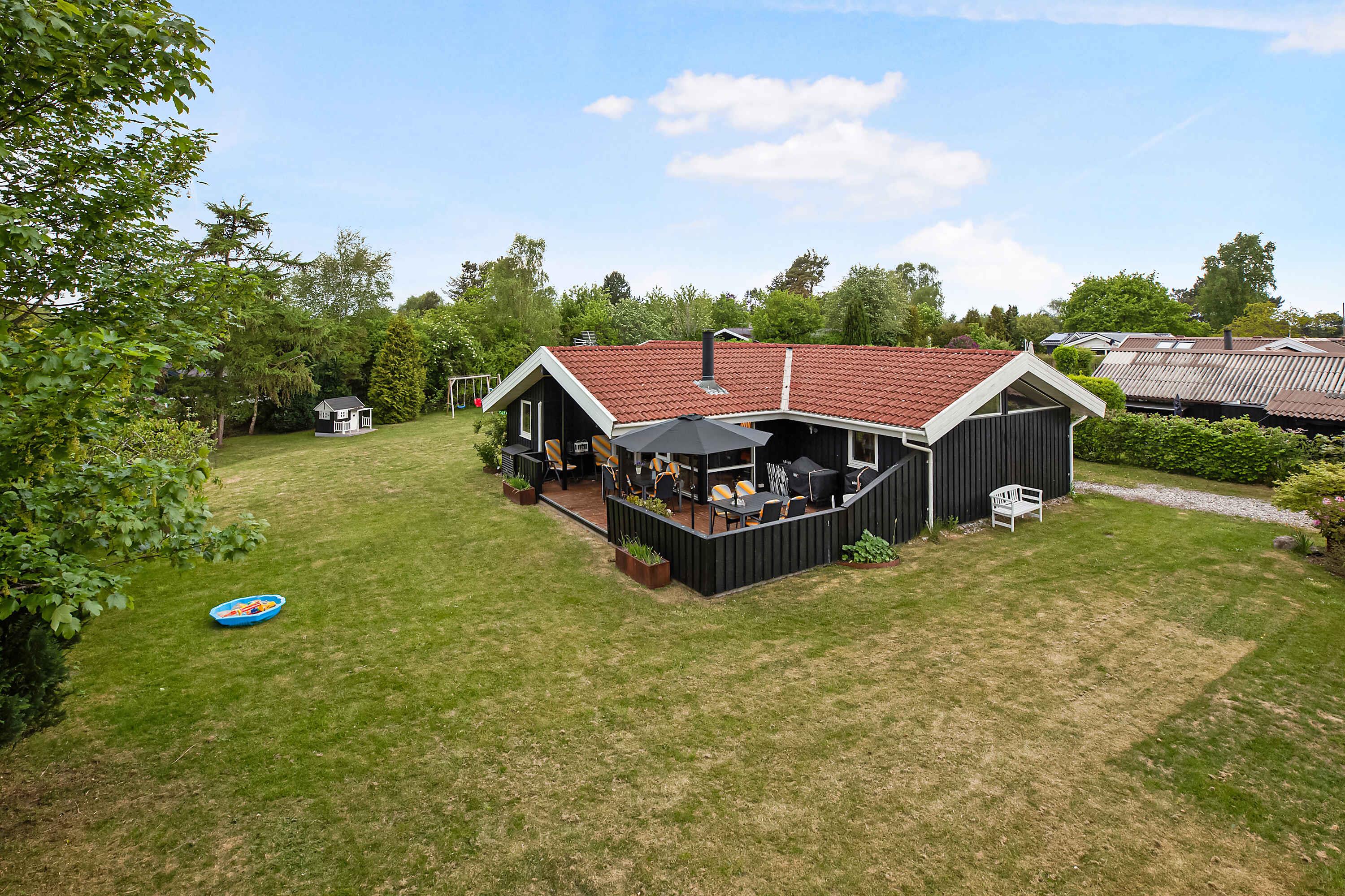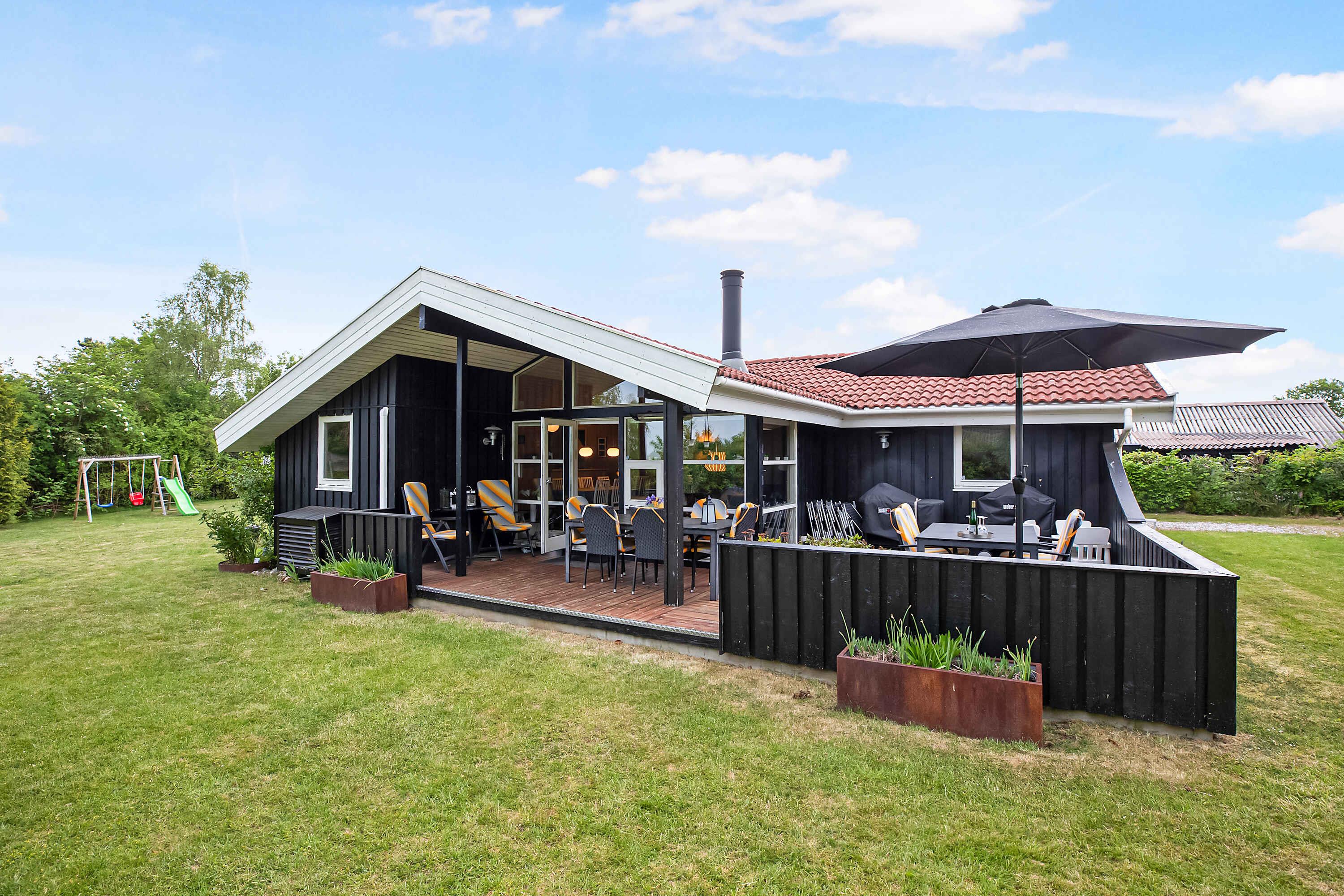 Gezellig en goed ingericht familiezomerhuis nabij Udsholt-strand met tuin en speeltoestellen voor kinderen.