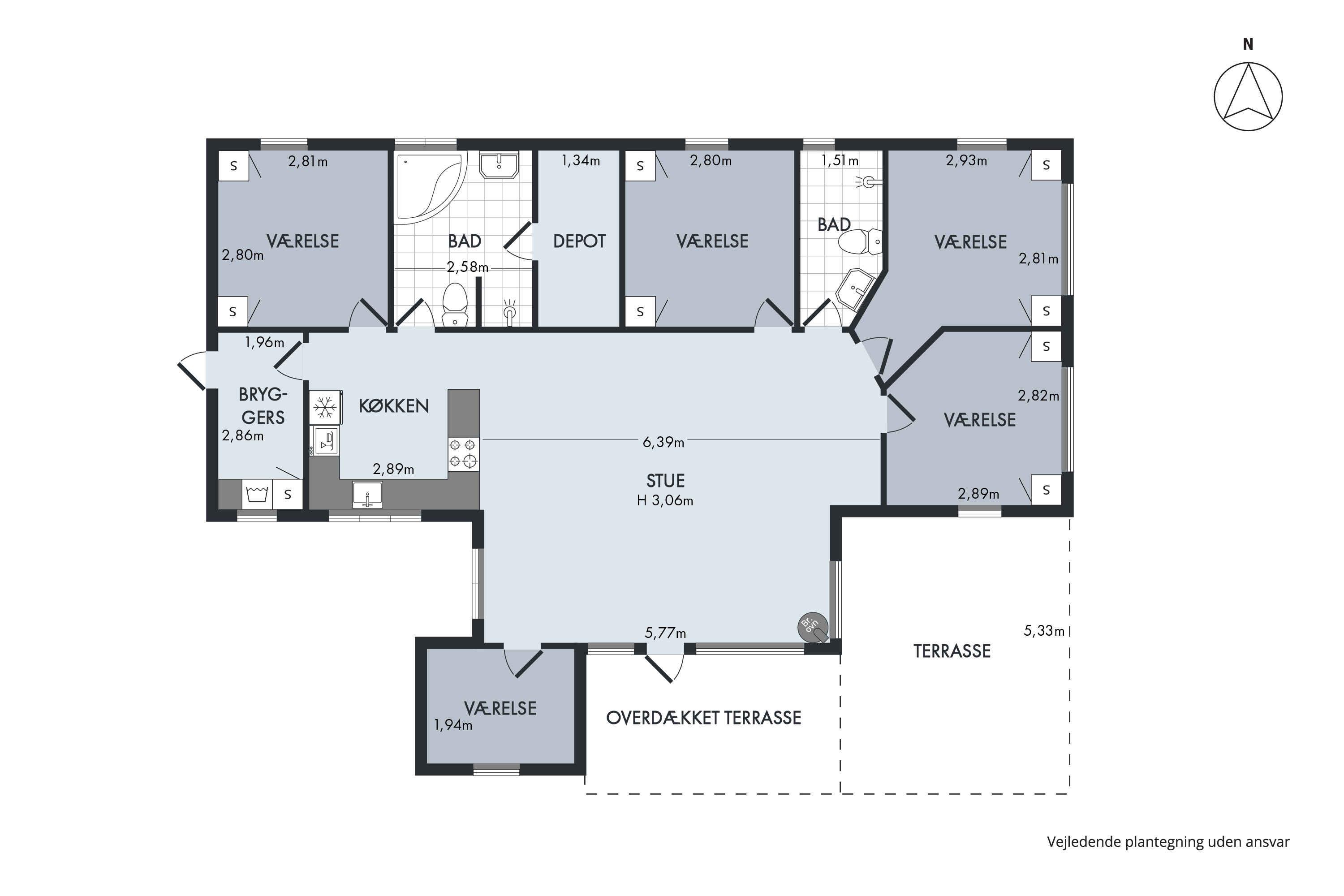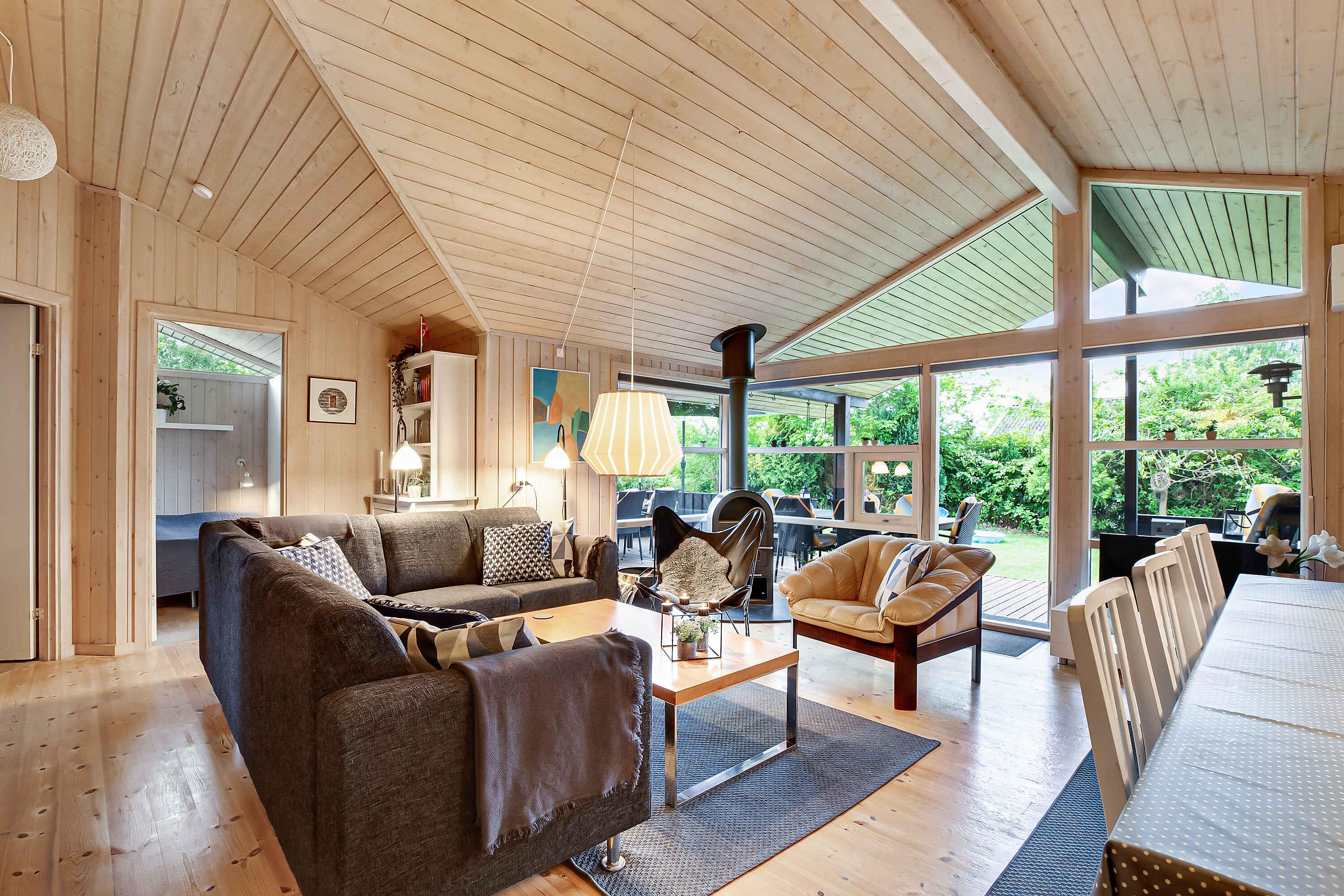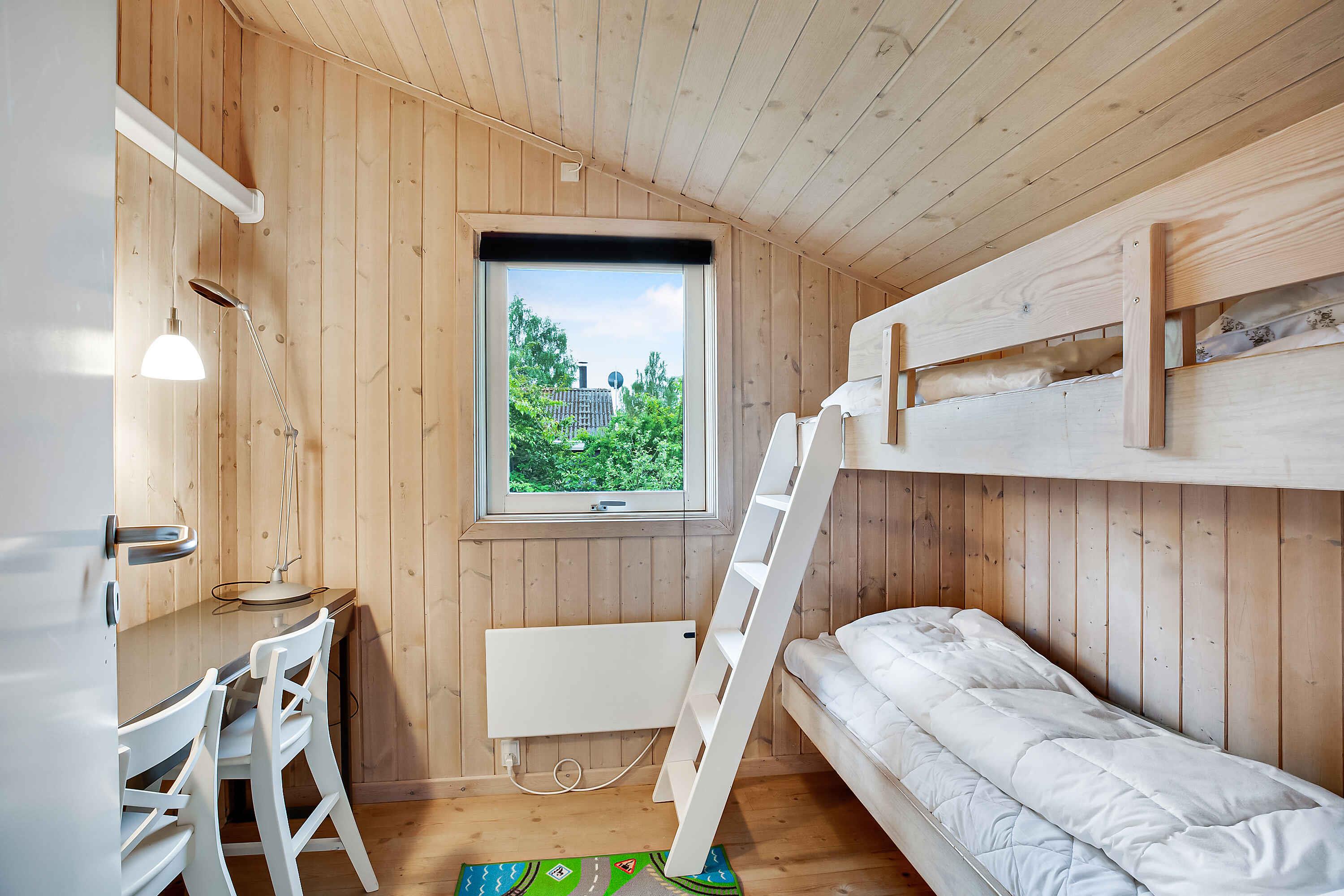 Leuk, persoonlijk ingericht zomerhuis gelegen aan een doodlopende weg ca. 2 km van het Udsholt-strand. De dichtstbijzijnde kleinere steden zijn Græsted, Gilleleje en Helsinge. Onlangs gerenoveerde keuken met nieuwe apparatuur. Hierin zit alles wat je nodig hebt op het gebied van kook- en serveerapparatuur. De grootste badkamer heeft zowel een ligbad als een inloopdouche. De andere heeft alleen een douche. De slaapkamers voor de volwassenen zijn grotendeels hetzelfde en hebben elk 2 tegen elkaar geschoven eenpersoonsbedden en 2 kledingkasten. De kinderkamer beschikt over 2 kinderstapelbedden en een tafel waar u bijvoorbeeld aan kunt kan zitten en tekenen. Er is een sauna in het huis, maar deze wordt gebruikt voor het opbergen van kussens voor tuinstoelen, ligstoelen en banken. De woning wordt verwarmd met een lucht-lucht warmtepomp (die ook kan koelen) en elektrische radiatoren. In de woonkamer kun je gezellig de houtkachel aansteken, maar brandhout moet je zelf meenemen of kopen in de omliggende bouwmarkten, benzinestations of grote supermarkten. In de boekenkast in de woonkamer staan ??boeken en spelletjes. Onder het overdekte deel van het terras is een terrasverwarmer geïnstalleerd. In het niet overdekte gedeelte bevindt zich een Weber houtskoolgrill en een Weber gasgrill. Kolen en gas moeten worden aangevoerd. In de tuin staat een nieuw, klein speelhuisje, ALLEEN voor kleine kinderen. Er is ook een schommelstandaard (max. belasting per schommel is 50 kg volgens de fabrikant, dus ook alleen voor kinderen). We hebben ook een kleine zandbak en wat buitenspeelgoed. Het kan zijn dat u gestoord wordt door de tuinman die het gras komt maaien en/of door de glazenwasser. Let op: Niet te huur voor commercieel gebruik.