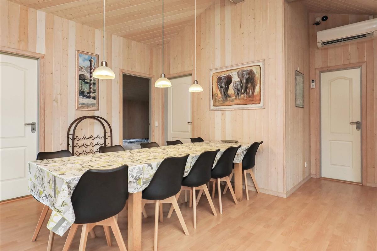 Zum geräumigen Ferienhaus gehört ein gut 2.100 m2 großes Naturgrundstück mit viel Platz für Aktivitäten an der frischen Luft. Im Haus stehen 10 Schlafplätze verteilt auf fünf Schlafzimmer zur Verfügung. Ein passendes Reiseziel für einen Mehrfamilienurlaub.
