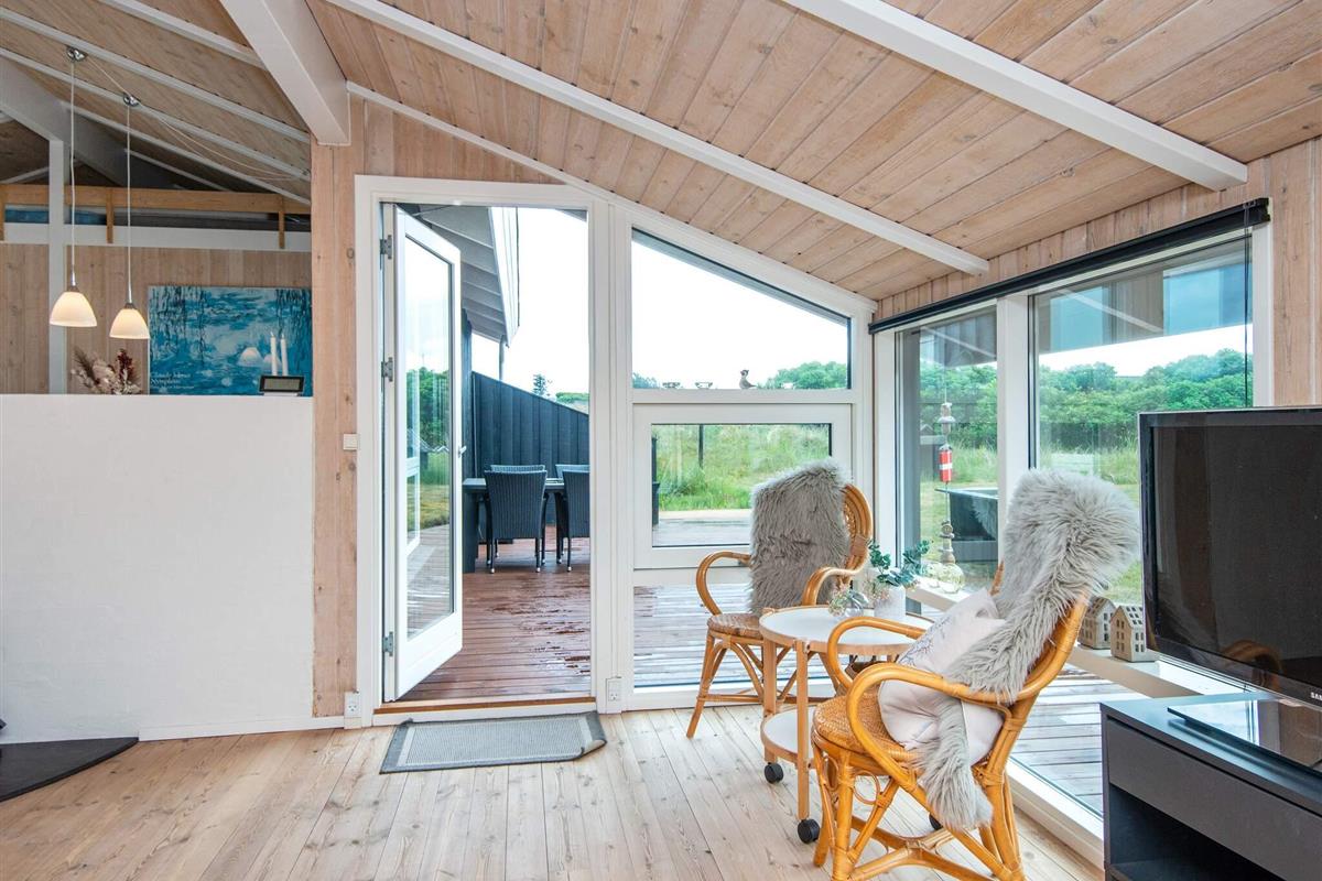 Geräumiges Ferienhaus bei Grønhøj, unweit des herrlichen Strandes. Sie wohnen hier nur etwa 300 m von der Nordseeküste entfernt. Das Ferienhaus liegt auf einem weitläufigen Naturgrundstück und hat eine große Holzterrasse auf der man Sonne, Windschutz oder Schatten finden kann.