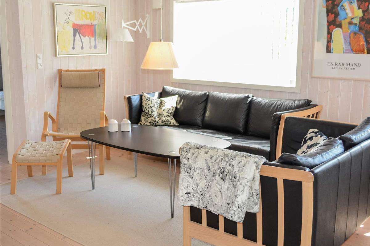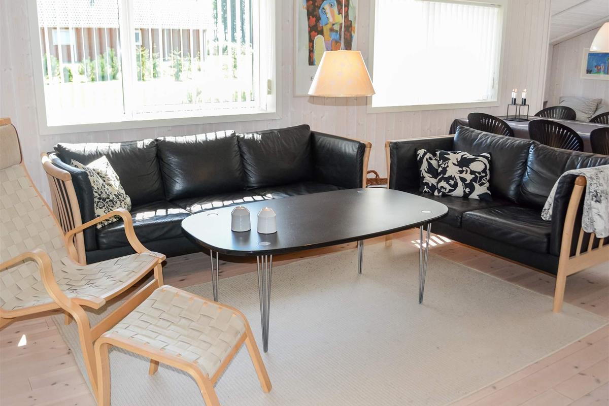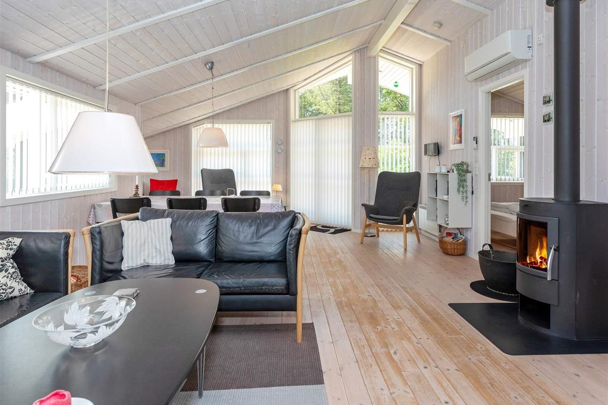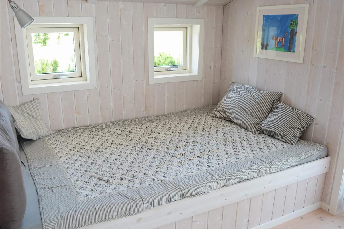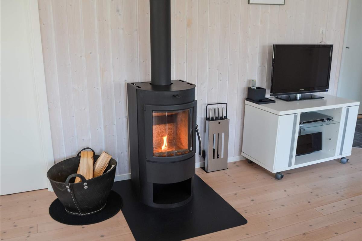 Im Haus heller, offener Küchen-/Wohnbereich für das Familienleben, mit Ess- und Sitzecke sowie Kaminofen für kühlere Abende. Im Wohnbereich gibt es zudem einen gemütlichen Alkoven, in den man sich zurückziehen kann. Das Ferienhaus verfügt über drei Schlafzimmer mit jeweils zwei Schlafplätzen in Betten. Darüber hinaus gibt es zwei Badezimmer im Haus, eines davon mit Whirlpool und Sauna.