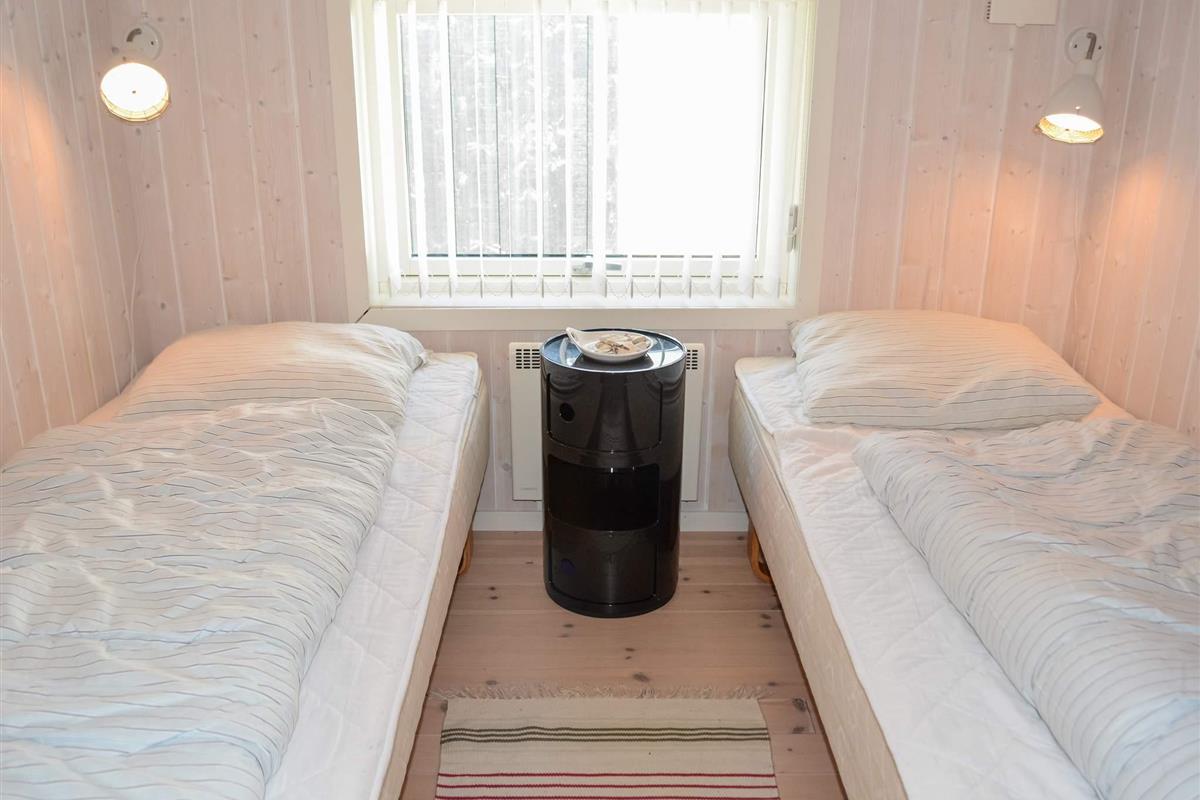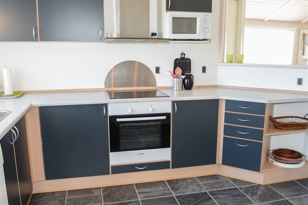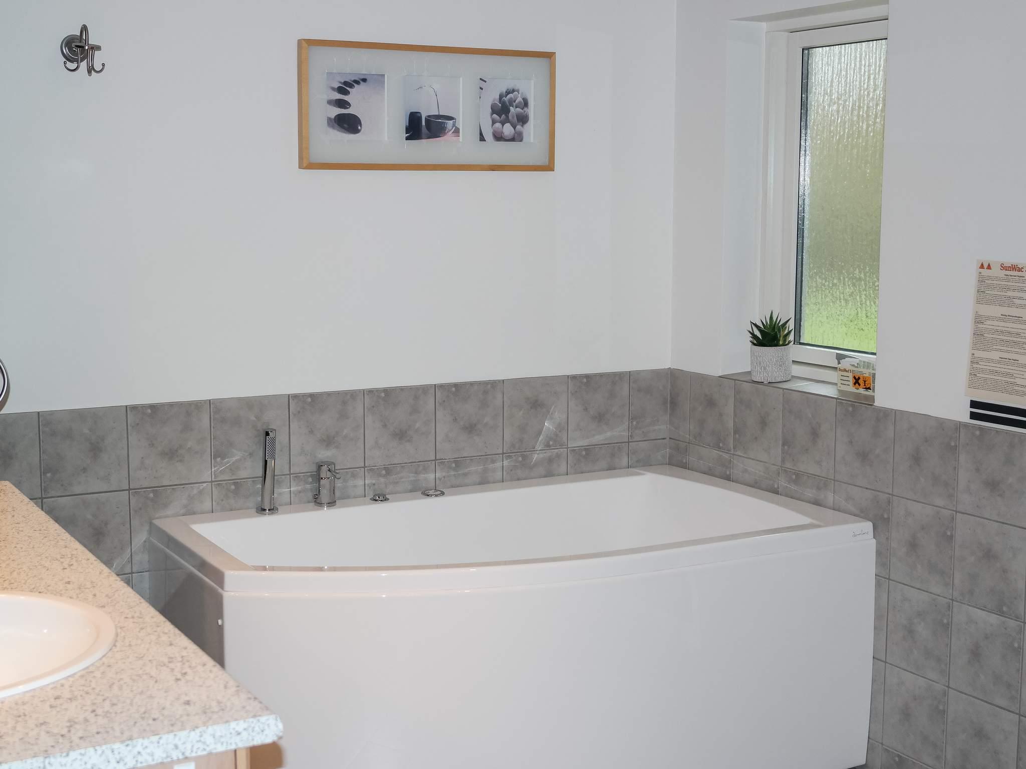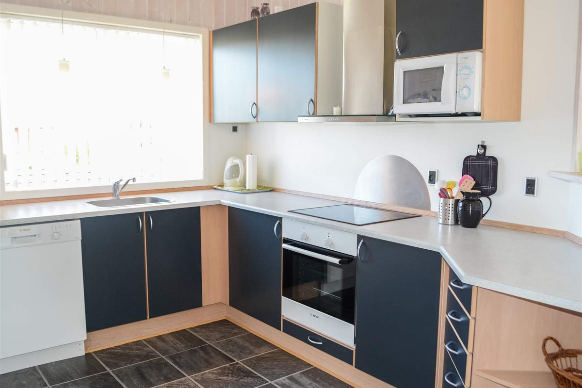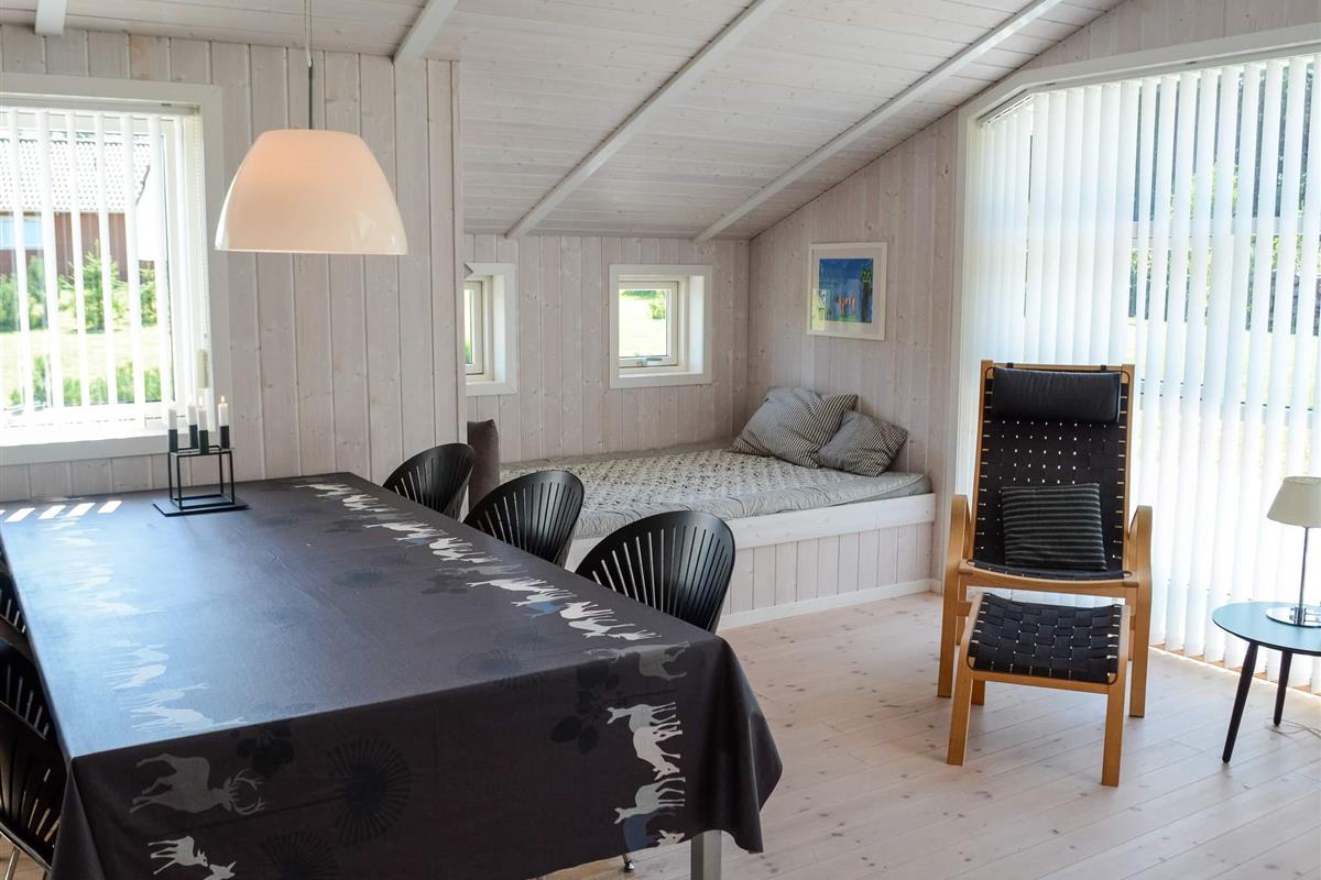 Im Haus heller, offener Küchen-/Wohnbereich für das Familienleben, mit Ess- und Sitzecke sowie Kaminofen für kühlere Abende. Im Wohnbereich gibt es zudem einen gemütlichen Alkoven, in den man sich zurückziehen kann. Das Ferienhaus verfügt über drei Schlafzimmer mit jeweils zwei Schlafplätzen in Betten. Darüber hinaus gibt es zwei Badezimmer im Haus, eines davon mit Whirlpool und Sauna.