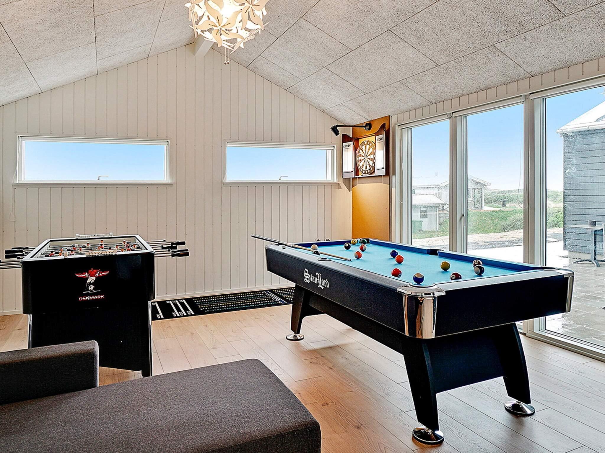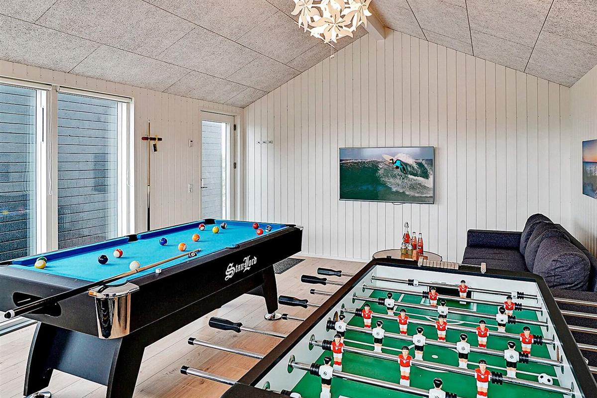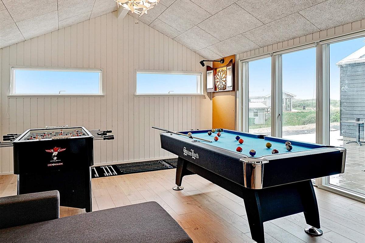 Das 142 m2 große Ferienhaus ist mit einem 30 m2 großen Aktivitätsraum ausgestattet, in dem Sie bei Pool-Billard, und Darts. Der Raum ist zudem mit angenehmer Fußbodenheizung sowie doppelter Schlafcouch ausgestattet.