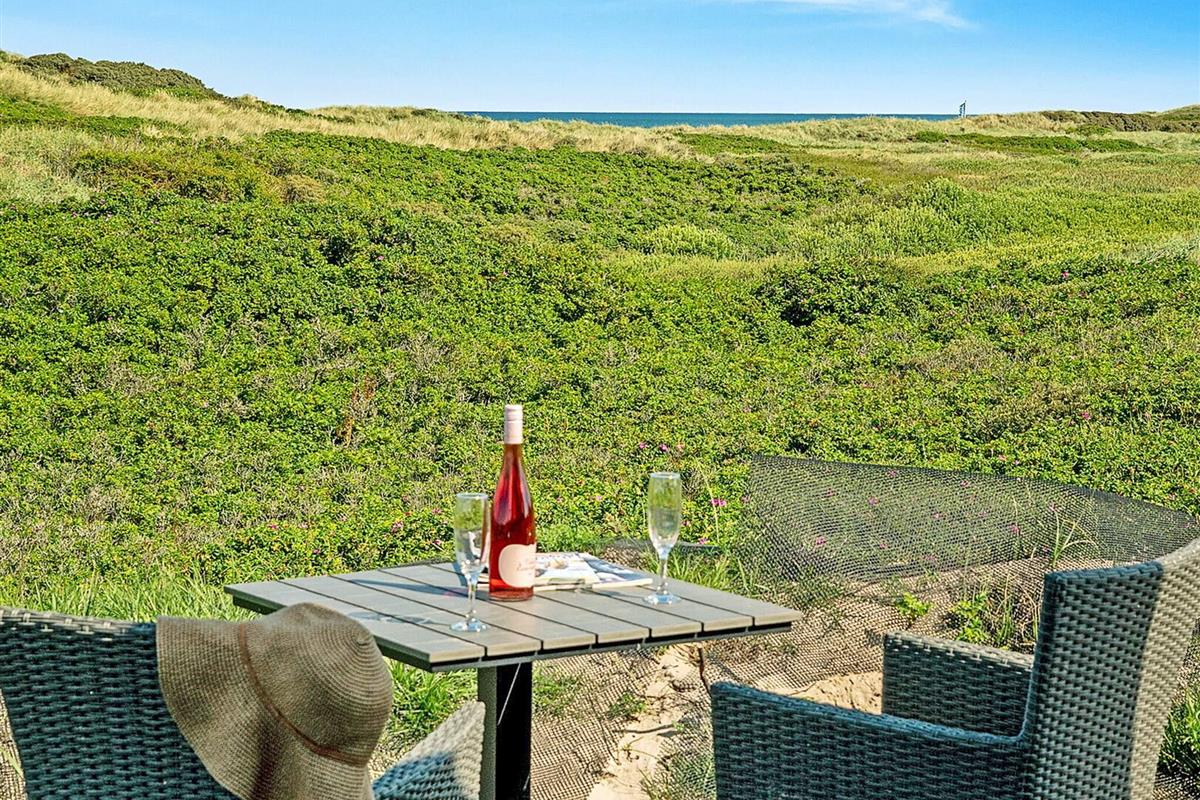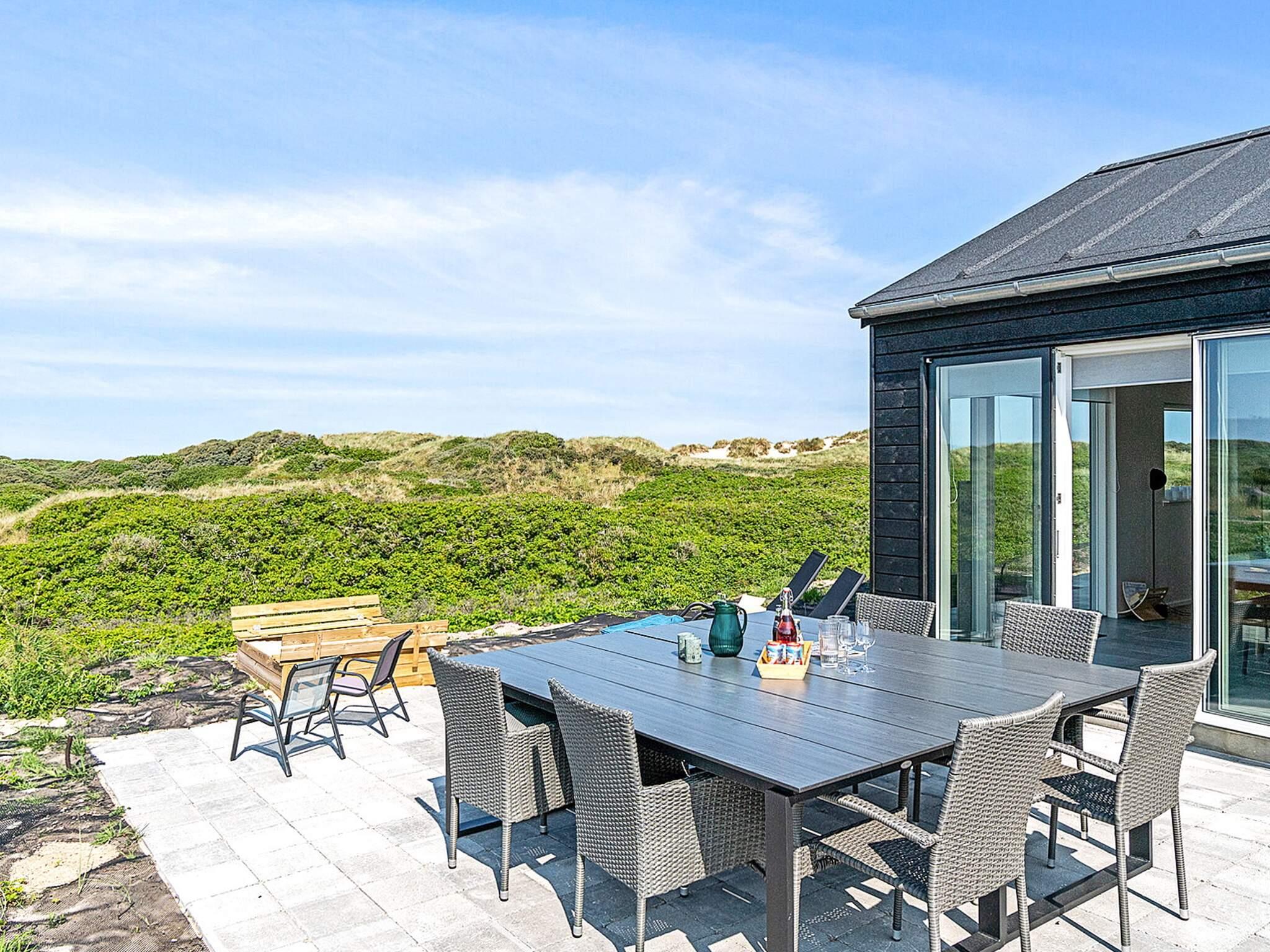 Das großartige Feriendomizil bietet auch eine fantastische, teilweise abgeschirmte Terrassenfläche. Dort finden Sie alle leicht einen Platz an der Sonne und können die Sommertage oder Grillabende in den bequemen Gartenmöbeln entspannt genießen. Auf der Terrasse steht eine praktische Außendusche zum Abspülen sandiger Füße bzw. für eine kurze Erfrischung nach dem Sonnenbad oder dem Bad im salzigen Meer bereit. Für die jüngsten Urlauber gibt es einen Sandkasten auf dem Naturgrundstück.