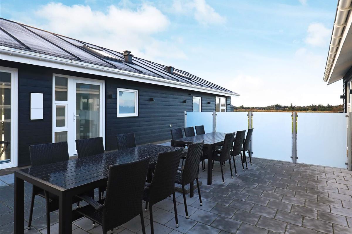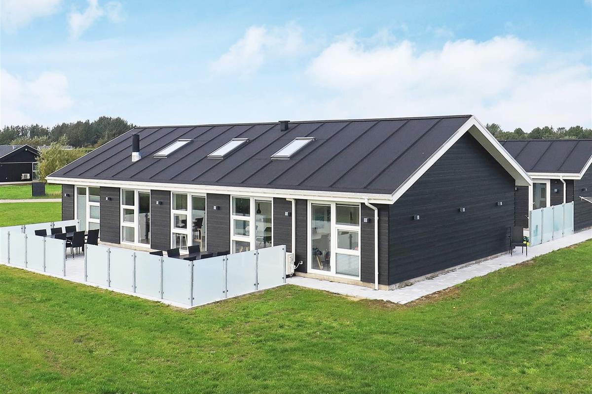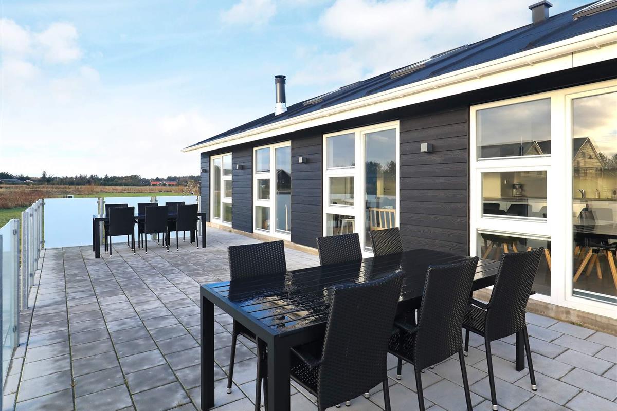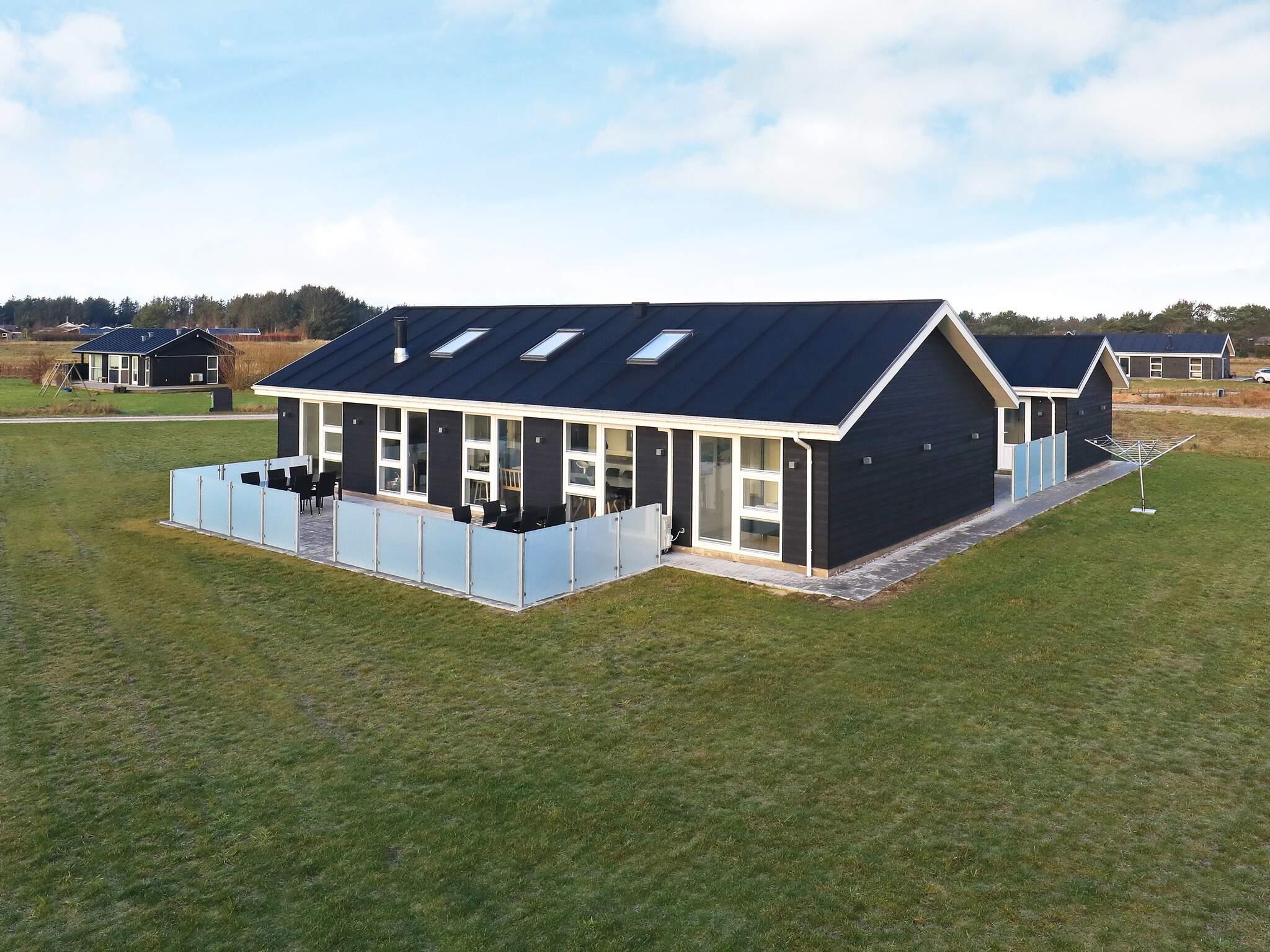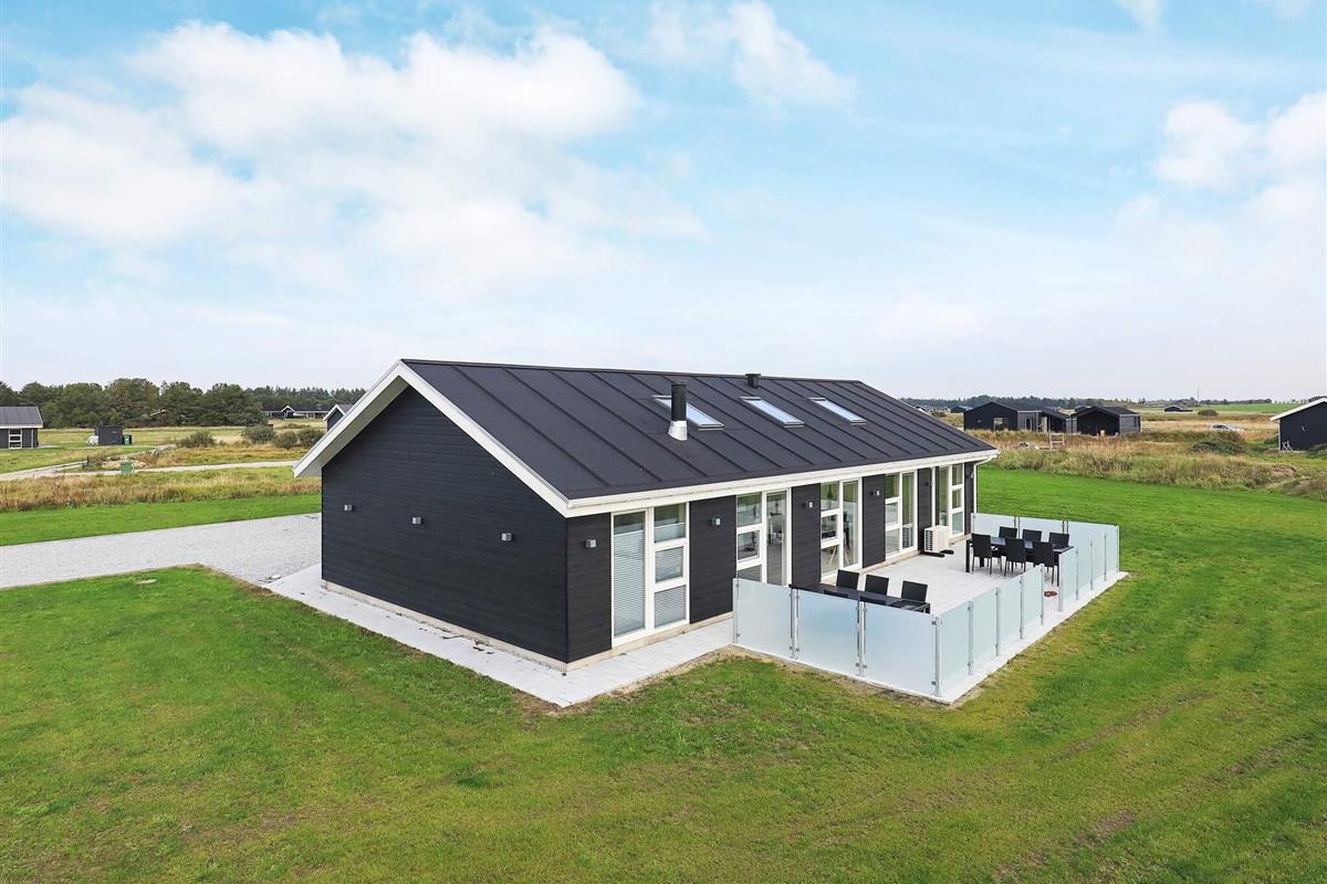 Modernes Ferienhaus mit Whirlpool und Sauna im Bad des Hauses. Liegt auf einem großen Naturgrundstück bei Grønhøj Strand. Hier finden Sie unweit den herrlichen Nordseestrand, der sich kilometerweit mit feinem, weißem Sand und hohen Dünen erstreckt.