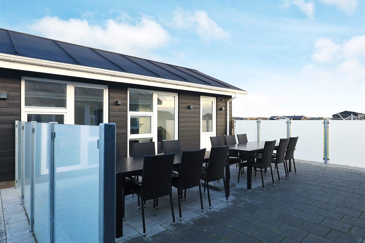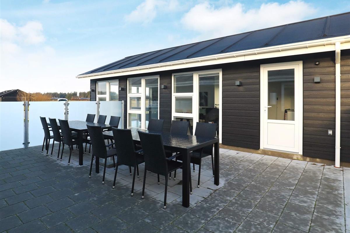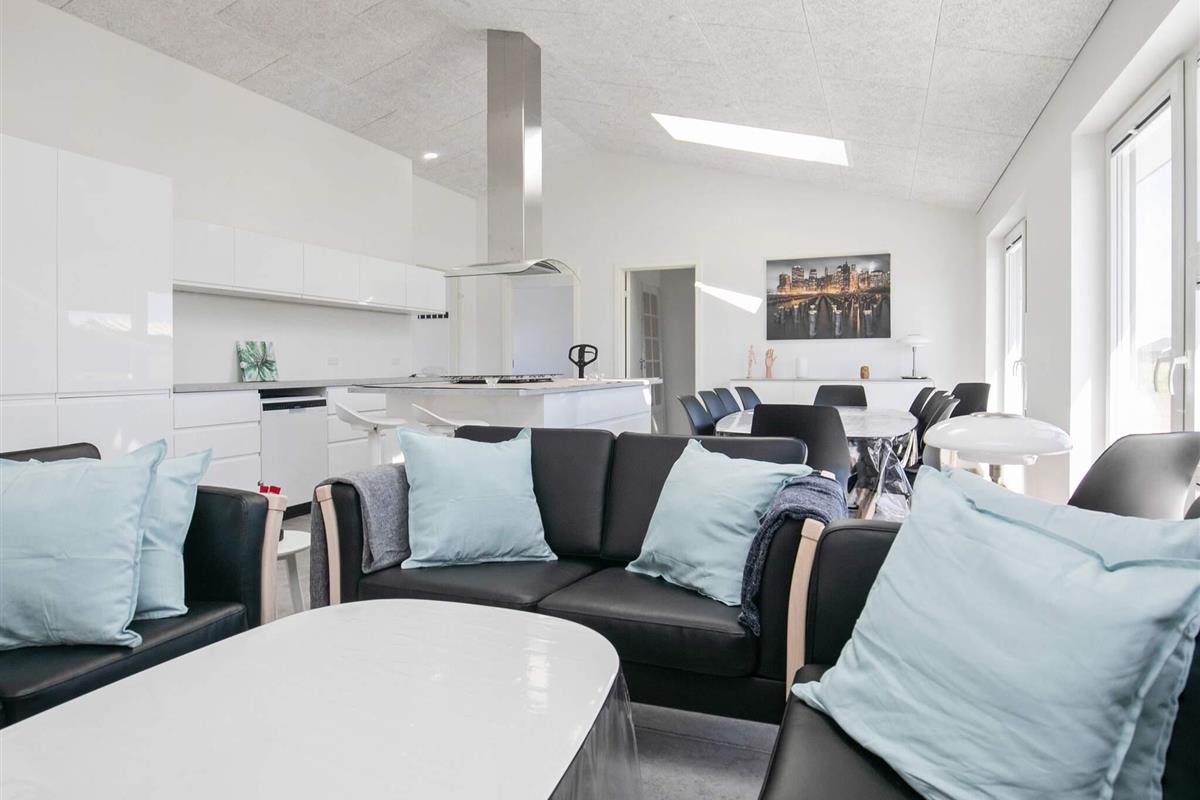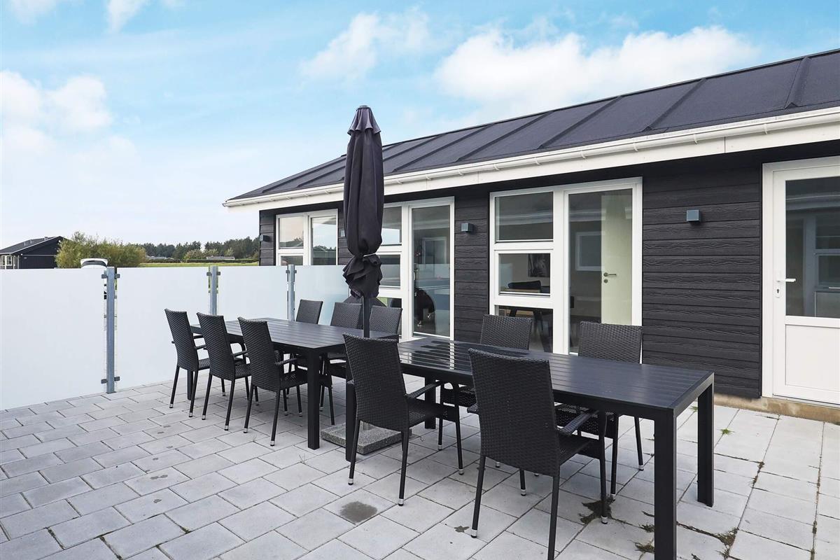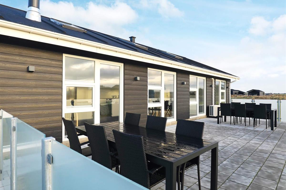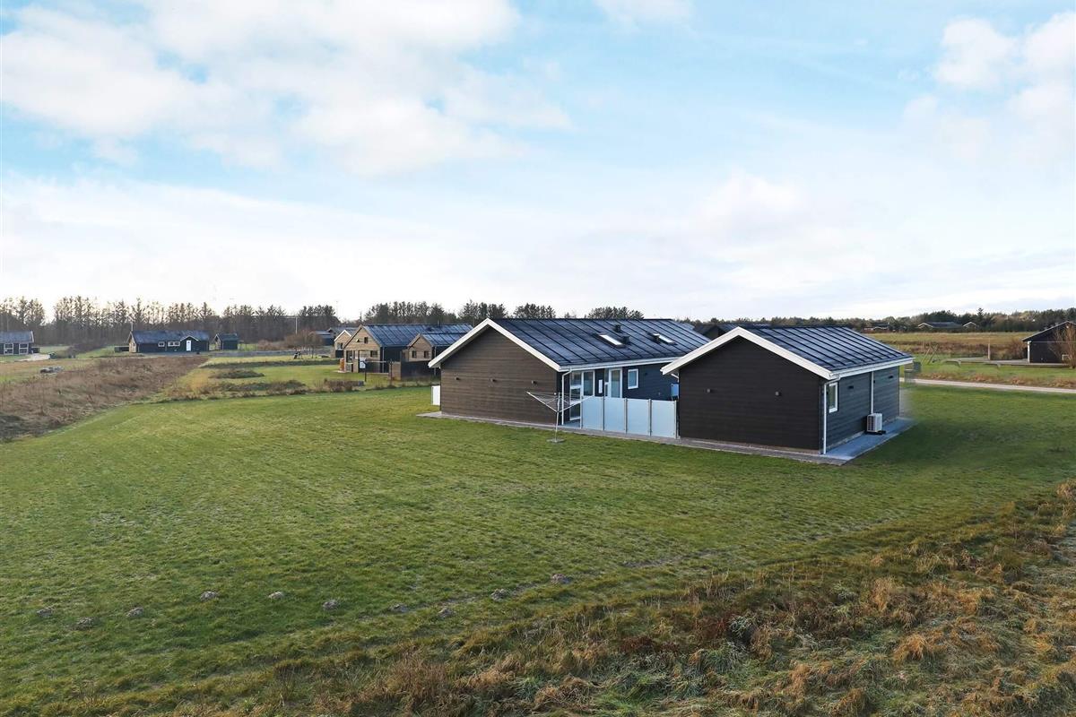 Modernes Ferienhaus mit Whirlpool und Sauna im Bad des Hauses. Liegt auf einem großen Naturgrundstück bei Grønhøj Strand. Hier finden Sie unweit den herrlichen Nordseestrand, der sich kilometerweit mit feinem, weißem Sand und hohen Dünen erstreckt.