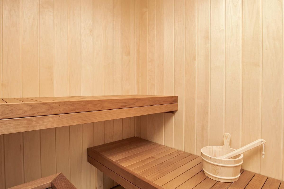 Offener Küchen-/Wohnbereich mit Ess- und Sitzecke für das Familienleben. Gut ausgestattete Küche sowie ein Badezimmer mit einer Whirlwanne für zwei Personen und Zugang zu einer Sauna. Für feuchte Handtücher etc. steht im Haus auch ein Wäscheständer bereit.