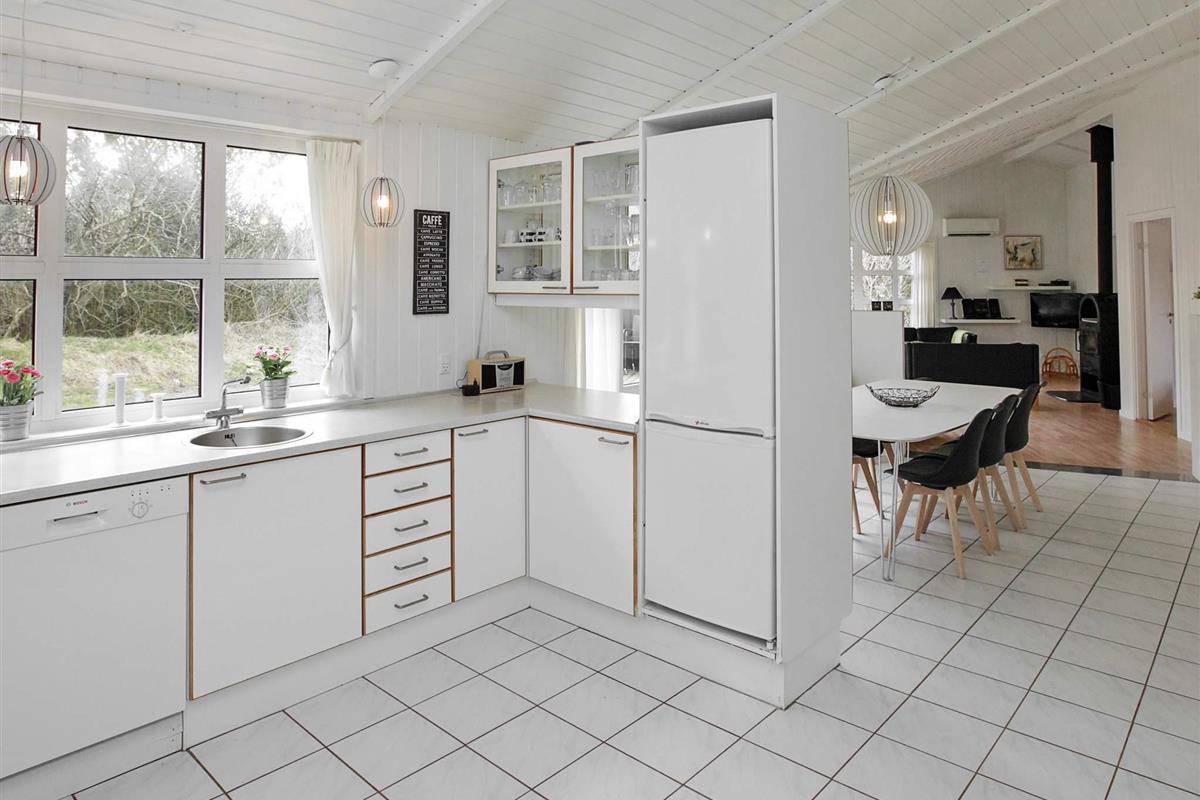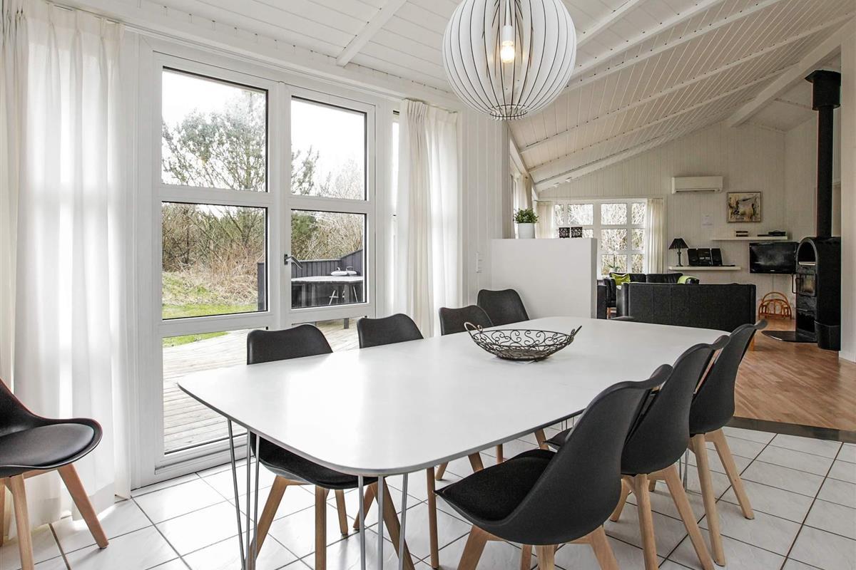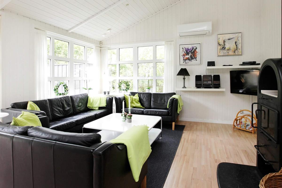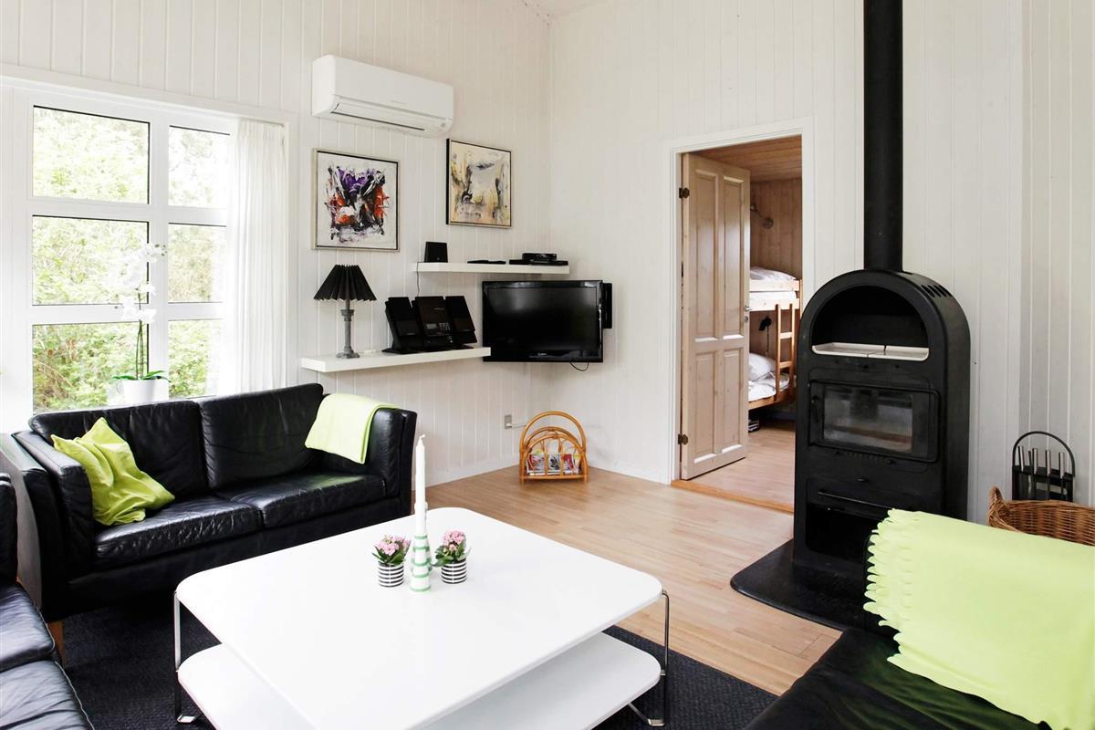 In dem Wohnzimmer finden Sie einen schönen Kaminofen vor sowie einen Fernseher mit SAT-Empfang von dänischen und deutschen Sendern und einen DVD-Spieler vor. Zur Ausstattung gehört zudem eine klimafreundliche Wärmepumpe.