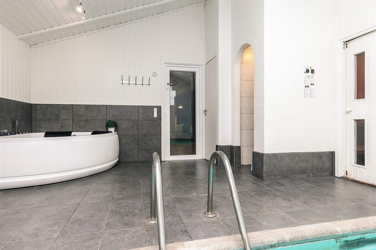 Es bietet einen 18 m² großen Swimmingpool, einen Whirlpool für drei Personen und eine Sauna für bis zu sechs Personen. Außerdem gibt es im Haus zwei Badezimmer mit Dusche, Waschbecken, Toilette und Fußbodenheizung, eines zudem mit Waschmaschine und Wäschetrockner.