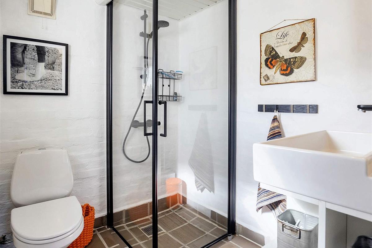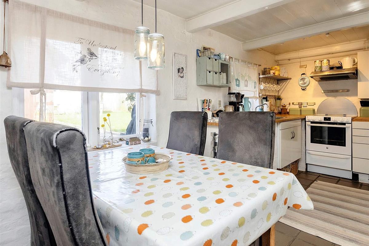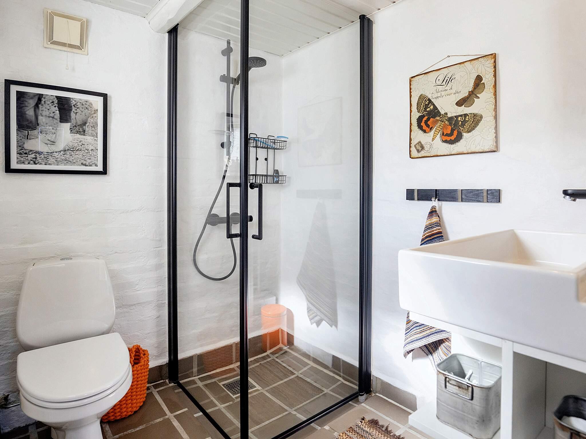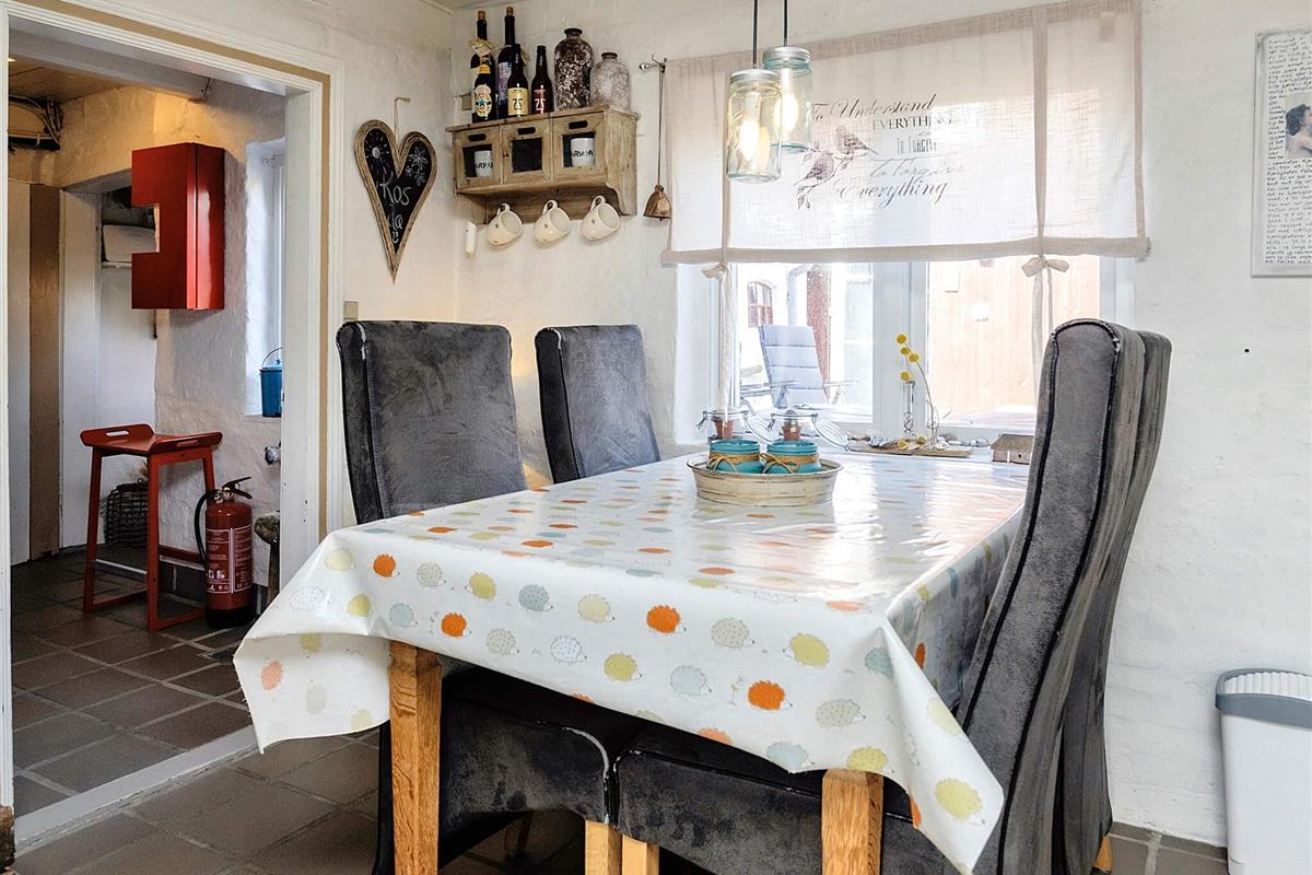Das einst 1877 erbaute solide Haus ist nach den persönlichen Vorstellungen des Eigentümers individuell eingerichtet und wurde zuletzt im Jahre 2000 grundlegend renoviert. Es hat einen offenen Küchen-/Wohnbereich mit Holzofen. Vom Wohnbereich hat man Zugang zu einem großen, hellen Schlafzimmer mit Doppelbett. In der oberen Etage befinden sich 2 Einzelbetten sowie eine Schlafcouch für eine Person. Dort gibt es auch viel Platz für spielende Kinder. Einfaches Bad im Haus mit Dusche/WC. Zudem Waschmaschine und Wäschetrockner vorhanden.
