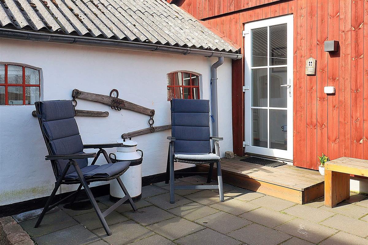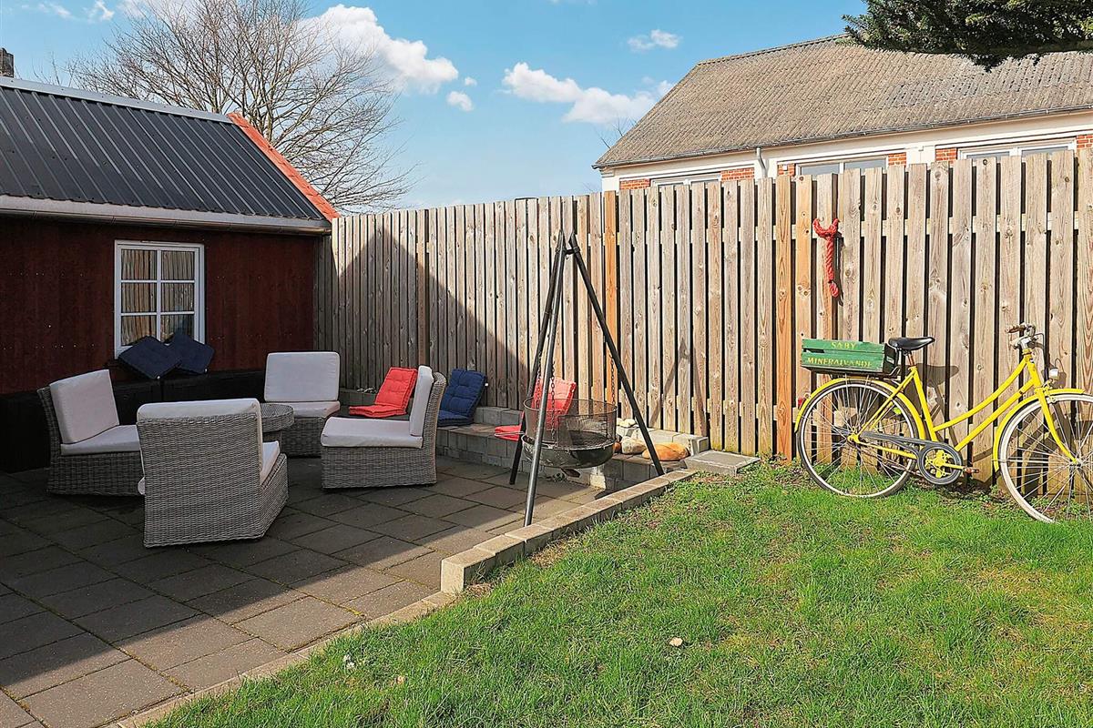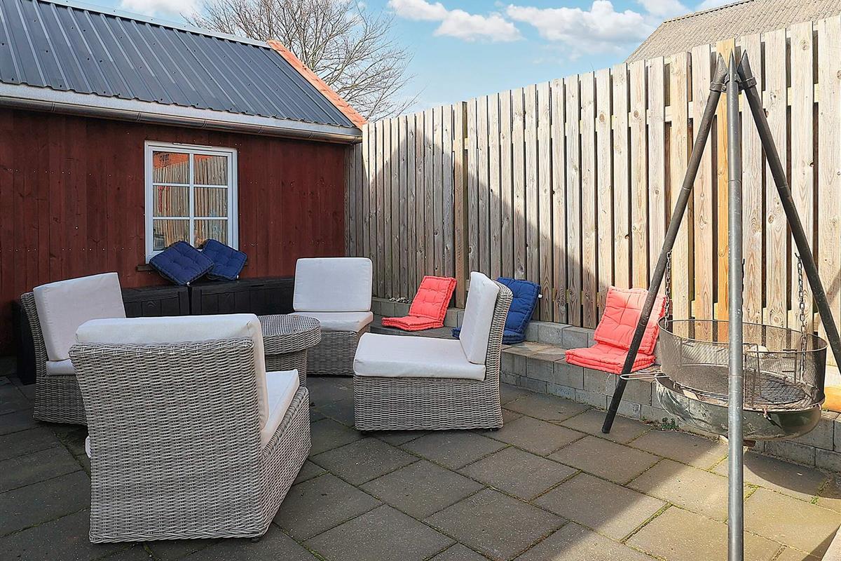Im Außenbereich gibt es hinter dem Haus einen großen, teilweise eingezäunten Innenhof mit Rasenfläche, Sandkasten und Bäumen, der sich für sonnige Nachmittage und lauschige Grillabende anbietet. In diesem günstigeren Ferienhaus kann sich eine kleine Familie, die in der Nähe von Strand, Stadt und dem Fårup Sommerland den Urlaub verbringen möchte, gut erholen.