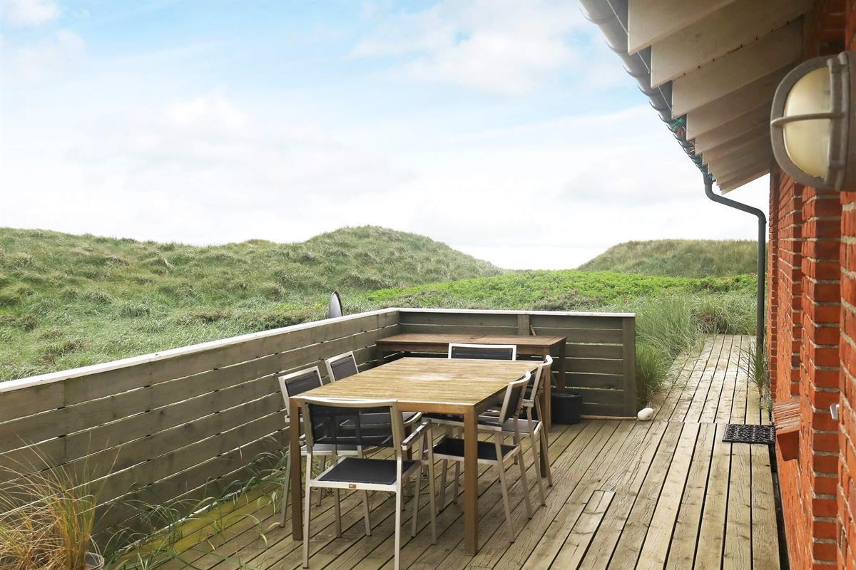 Mit erstklassiger Panoramaaussicht zur Nordsee steht oben auf einem hügeligen Dünengrundstück dieses Ferienhaus mit Sauna. Es wurde umfassend ausgestattet und liegt nur etwa 100 m von der Küste. Im Haus überall praktischer Fliesenboden, bis auf die Schlafzimmer. Hausdach und Kücheneinrichtung wurden 2009 ausgetauscht. Vom Wohnbereich hat man Zugang zu einer großen, gut geschützten Terrassenfläche. Genießen Sie die Urlaubstage am nahen Strand, beim Baden oder bei einem Spaziergang an der frischen Seeluft. Anschließend tut ein Aufenthalt in der warmen Sauna besonders gut. Für kühlere Abende gibt es im Haus einen Holzofen. Keine Vermietung an Jugendgruppen erwünscht!