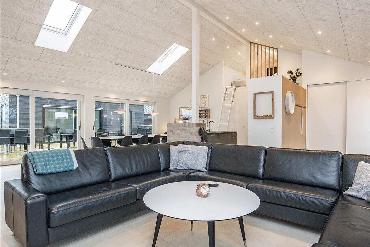 Das Herzstück des Ferienhauses ist ein großes, offenes Wohnzimmer mit guter Akustik, das mit der gut ausgestatteten Küche verbunden ist. Hier ist Platz für alle, um gemeinsam zu kochen, zu essen, zu spielen, einen guten Film zu schauen oder was auch immer Ihnen sonst noch einfällt. Der Raum hat mehrere Fenster und Oberlichter, die das faszinierende Licht Nordjütlands hereinfluten lassen, und an warmen Tagen können Sie die schöne Holzterrasse öffnen.