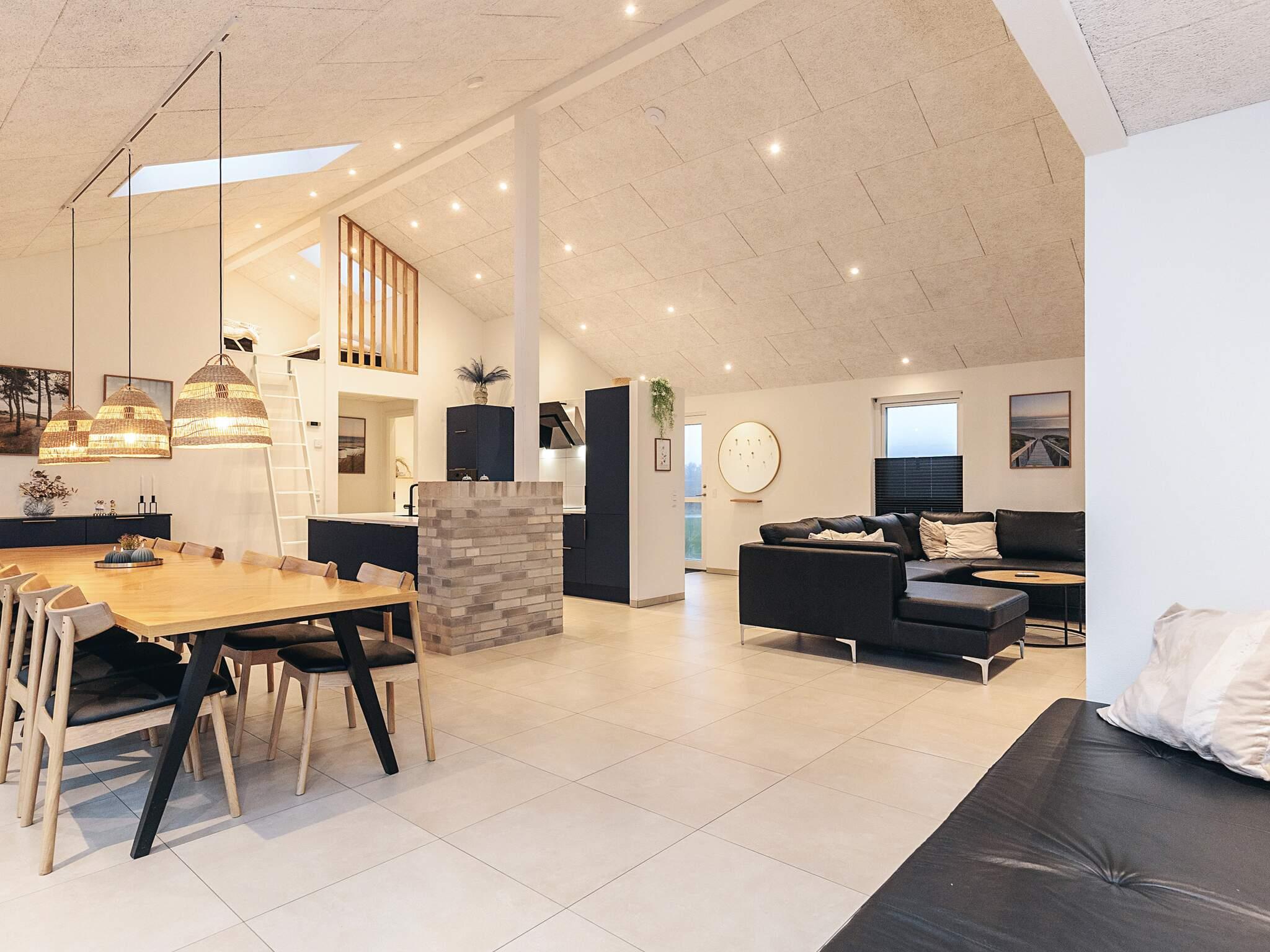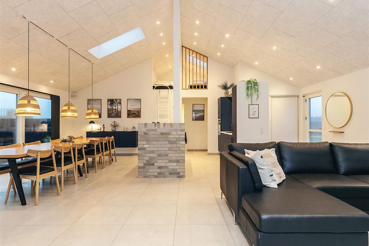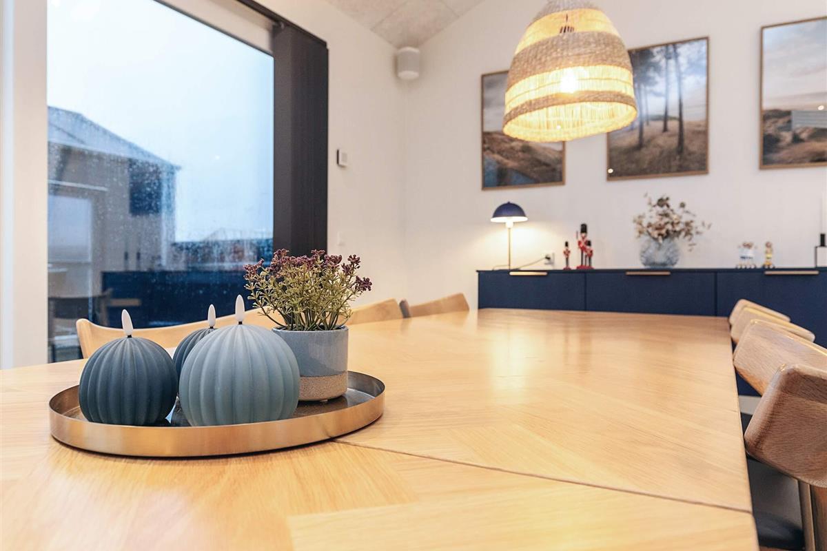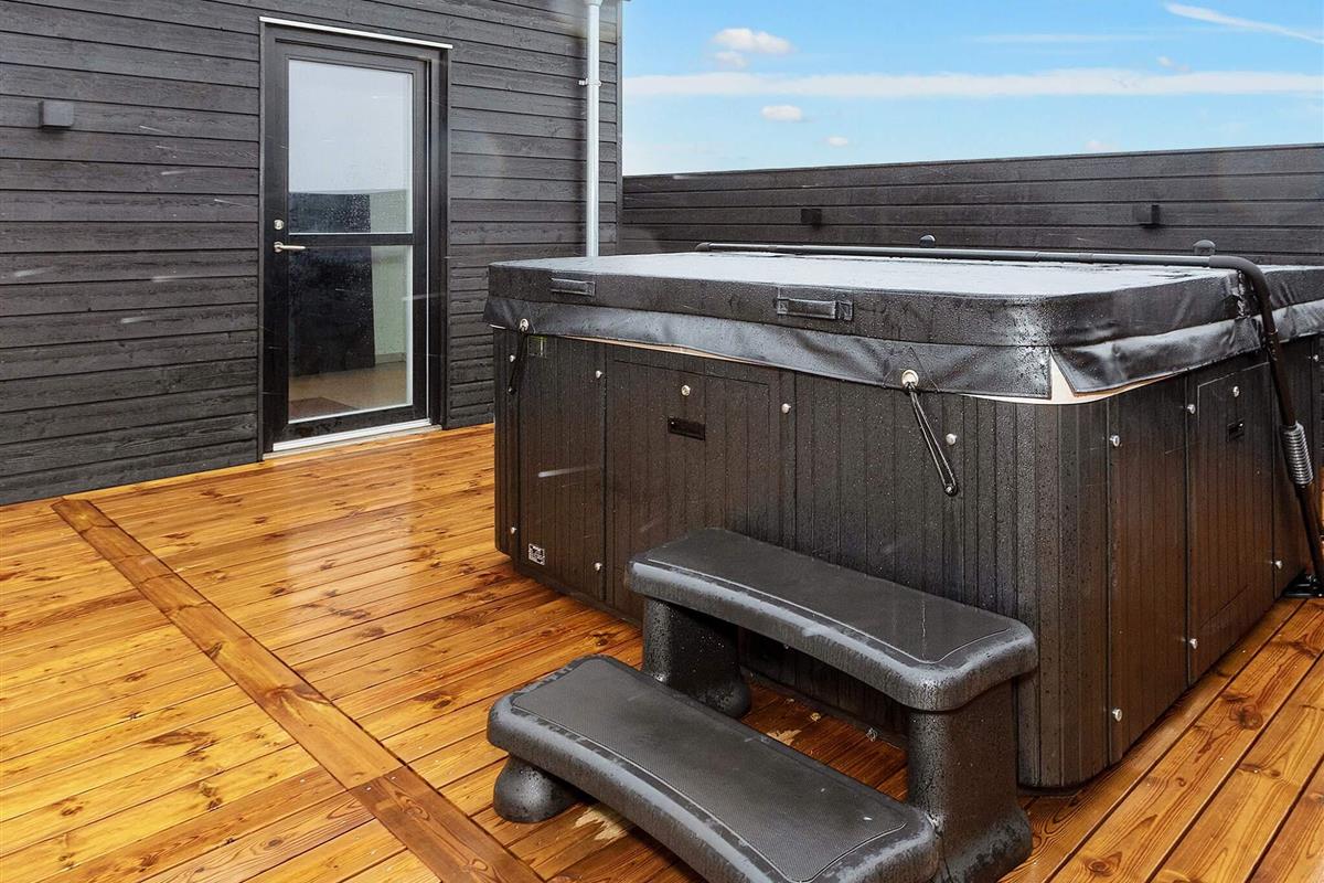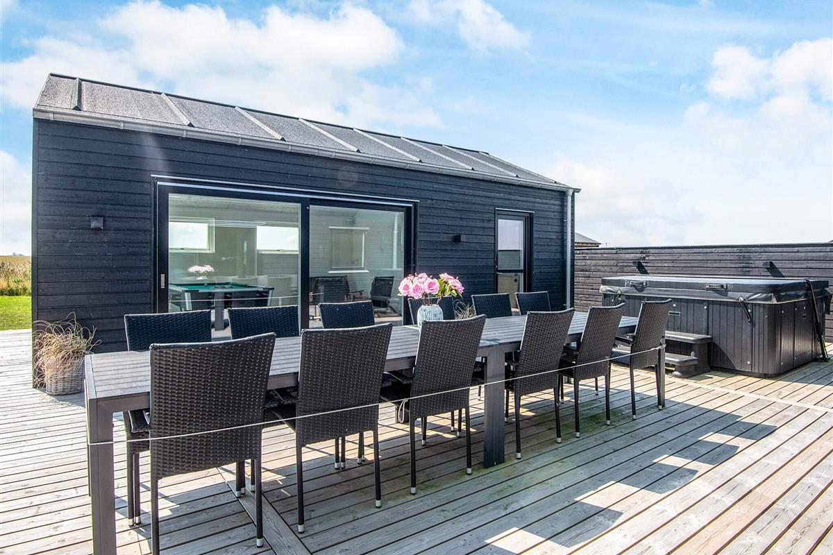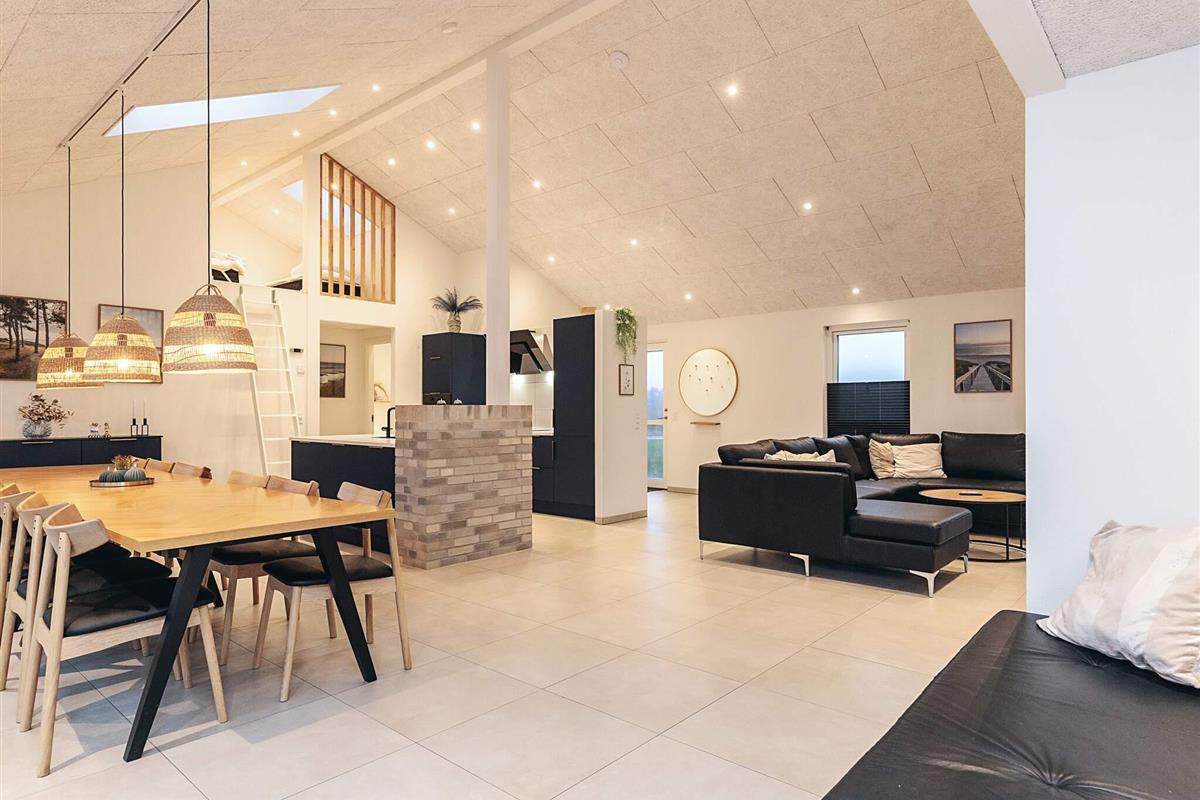 Neu gebautes (2023) Ferienhaus mit Whirlpool am Grønhøj Strand. Das Ferienhaus ist geschmackvoll eingerichtet und verfügt über einen Aktivitätsraum und einen Außenwhirlpool. Wenn Sie etwas Außergewöhnliches suchen, ist dieses moderne Haus einen genaueren Blick wert. Es bietet viel Platz, tolle Aktivitäten und hohe Decken für die ganze Familie oder mehrere Familien, die gemeinsam verreisen möchten. Das Herzstück des Ferienhauses ist ein großes, offenes Wohnzimmer mit guter Akustik, das mit der gut ausgestatteten Küche verbunden ist. Hier ist Platz für alle, um gemeinsam zu kochen, zu essen, zu spielen, einen guten Film zu schauen oder was auch immer Ihnen sonst noch einfällt. Der Raum hat mehrere Fenster und Oberlichter, durch die das faszinierende Licht Nordjütlands hereinströmt, und an warmen Tagen können Sie die schöne Holzterrasse öffnen. Das Ferienhaus ist mit Fußbodenheizung und Wärmepumpe ausgestattet. Im Haus und im Annex befinden sich Sonos-Lautsprecher, die über das Internet im Haus angesteuert werden können.