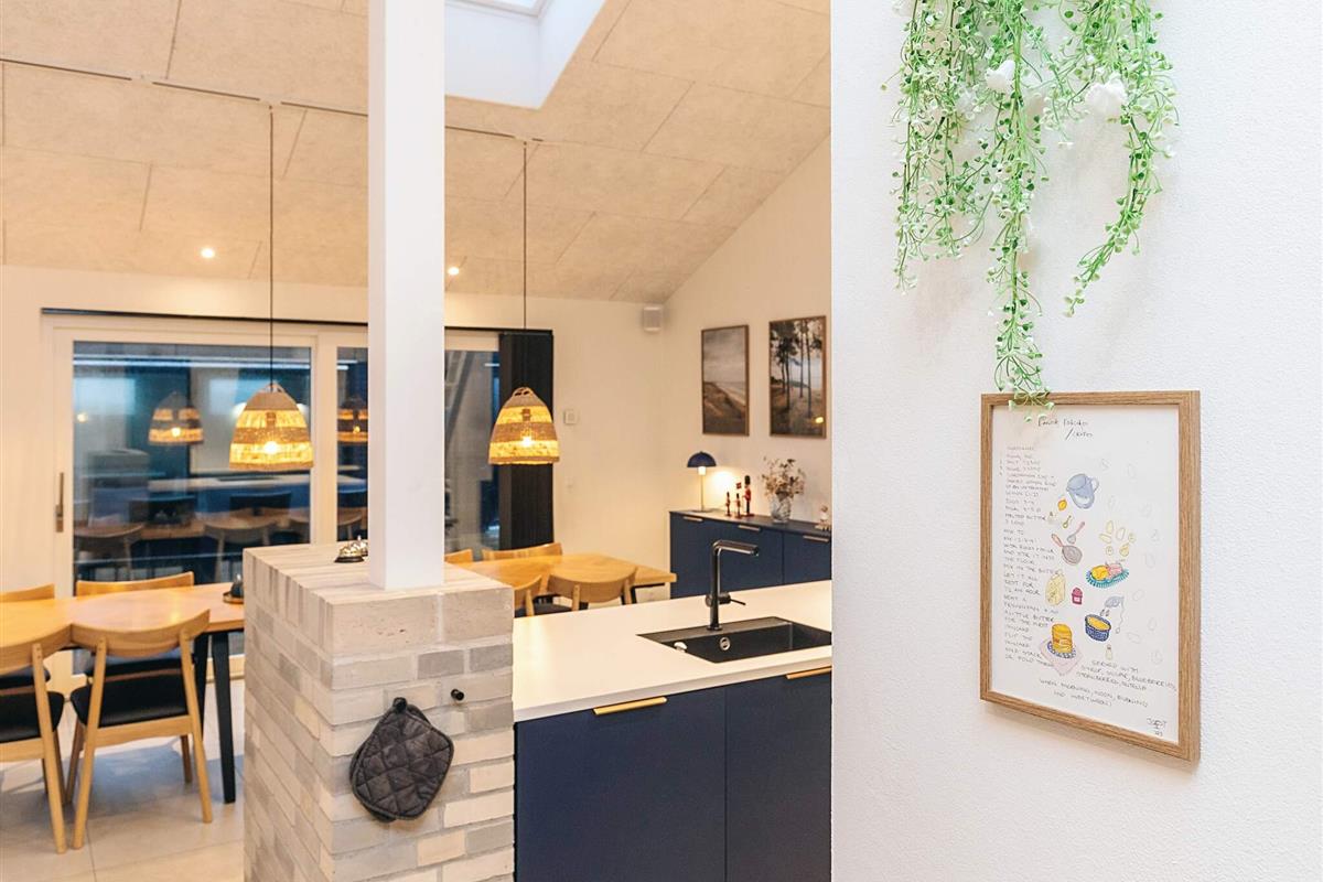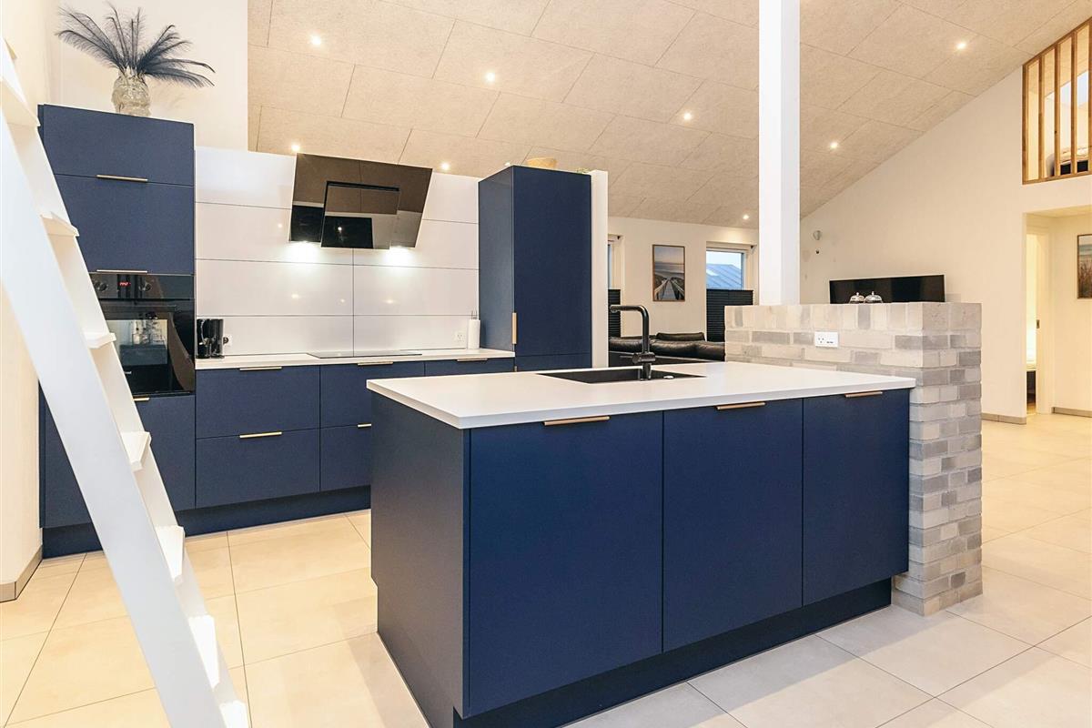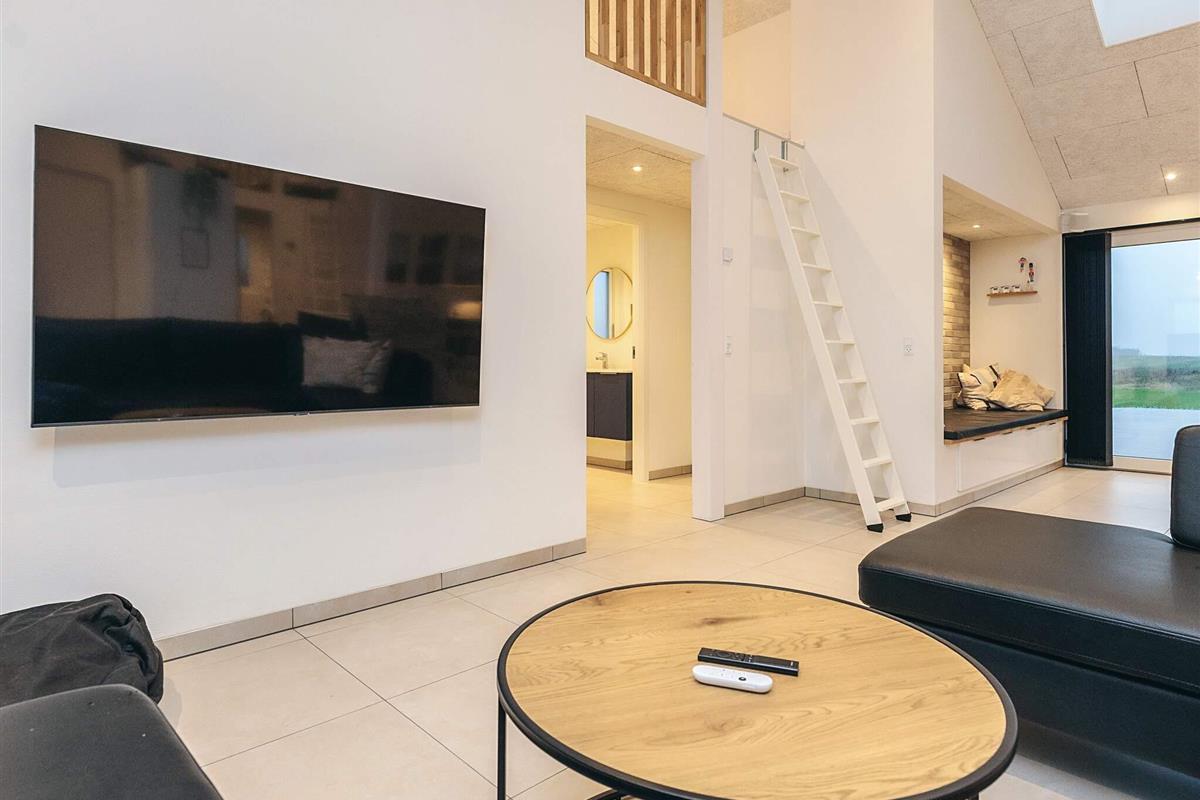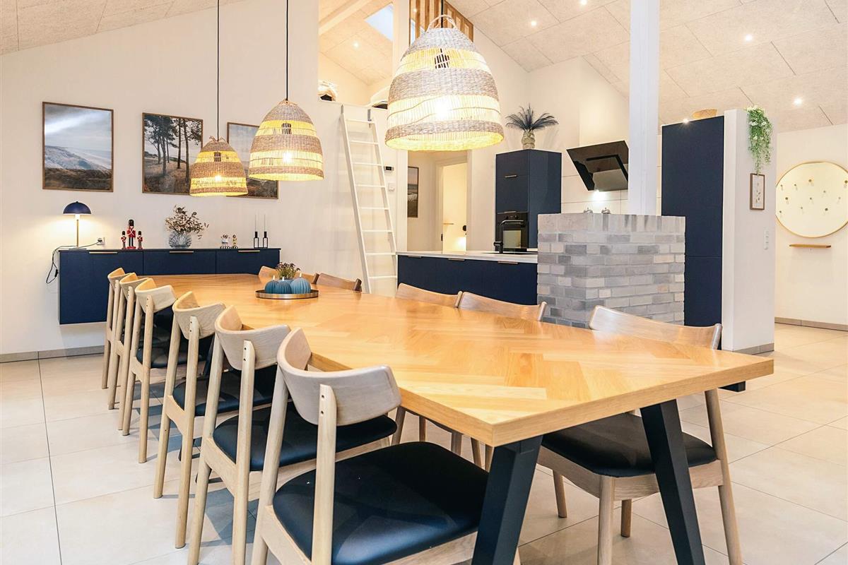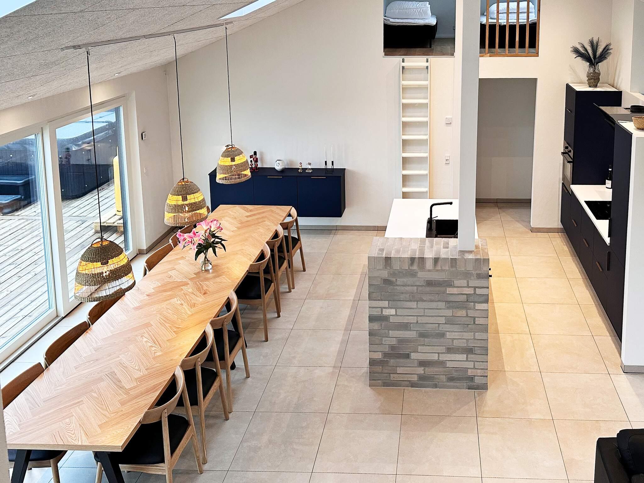 Neu gebautes (2023) Ferienhaus mit Whirlpool am Grønhøj Strand. Das Ferienhaus ist geschmackvoll eingerichtet und verfügt über einen Aktivitätsraum und einen Außenwhirlpool. Wenn Sie etwas Außergewöhnliches suchen, ist dieses moderne Haus einen genaueren Blick wert. Es bietet viel Platz, tolle Aktivitäten und hohe Decken für die ganze Familie oder mehrere Familien, die gemeinsam verreisen möchten. Das Herzstück des Ferienhauses ist ein großes, offenes Wohnzimmer mit guter Akustik, das mit der gut ausgestatteten Küche verbunden ist. Hier ist Platz für alle, um gemeinsam zu kochen, zu essen, zu spielen, einen guten Film zu schauen oder was auch immer Ihnen sonst noch einfällt. Der Raum hat mehrere Fenster und Oberlichter, durch die das faszinierende Licht Nordjütlands hereinströmt, und an warmen Tagen können Sie die schöne Holzterrasse öffnen. Das Ferienhaus ist mit Fußbodenheizung und Wärmepumpe ausgestattet. Im Haus und im Annex befinden sich Sonos-Lautsprecher, die über das Internet im Haus angesteuert werden können.