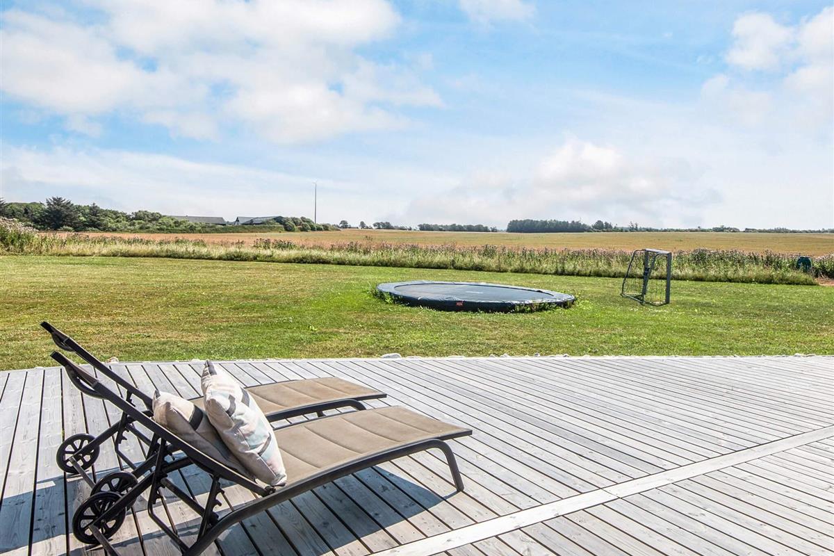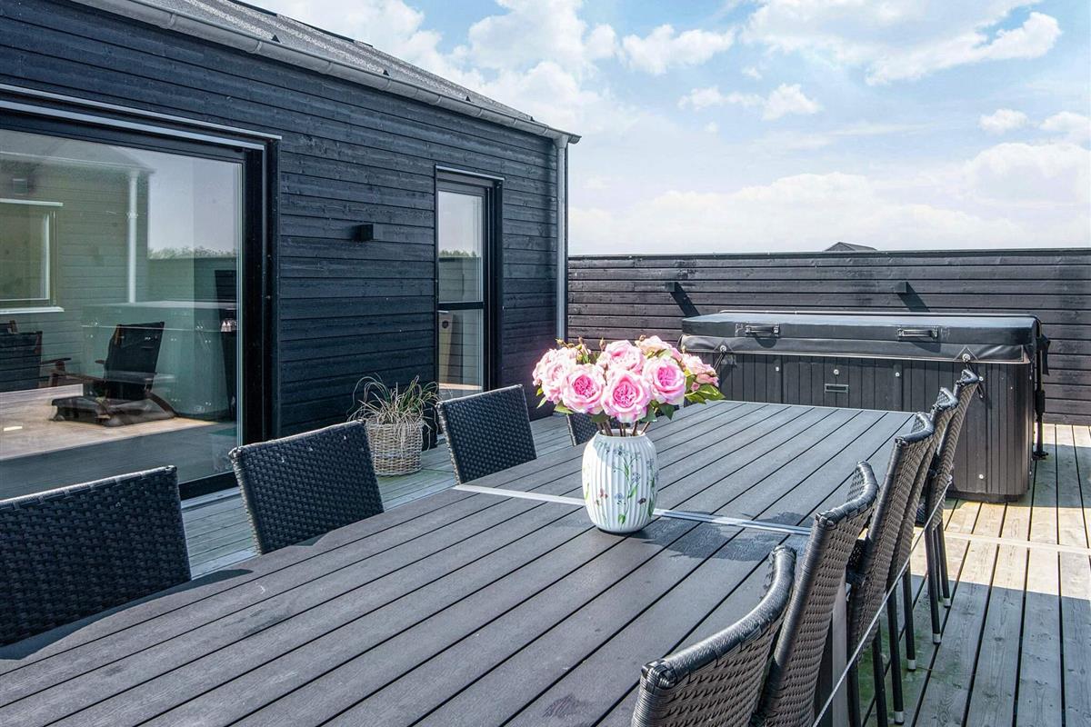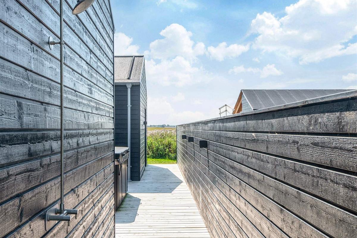Es gibt sowohl eine Außendusche mit Kalt- und Warmwasser als auch einen Whirlpool auf der Terrasse – für ein echtes Wellness-Erlebnis unter freiem Himmel. Auf der großen Terrasse, die das Ferienhaus und das Nebengebäude verbindet, haben Sie außerdem viel Platz zum Entspannen und können das Sommerwetter sowie die Ruhe des großen Grundstücks mit Blick auf die Felder genießen. Und keine störenden Nachbarn. Es gibt auch einen Gartengrill.