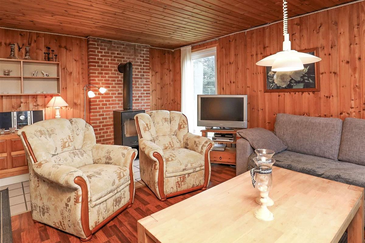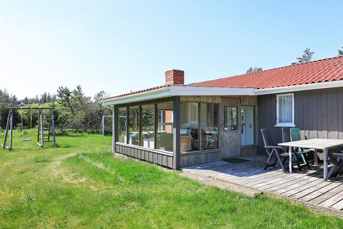 Das Haus wurde 1988/99 erbaut und seitdem fortlaufend instand gehalten. Es hat einen offenen Küchen-/Wohnbereich für das Familienleben sowie vier Schlafzimmer, ein Bad mit Whirlpool und Sauna, zwei Duschen sowie eine Gästetoilette. Der Wohnraum ist hell und geräumig mit Essbereich und gemütlicher Sitzecke. Die Einrichtung ist gemütlich und typisch dänisch mit viel Holz.