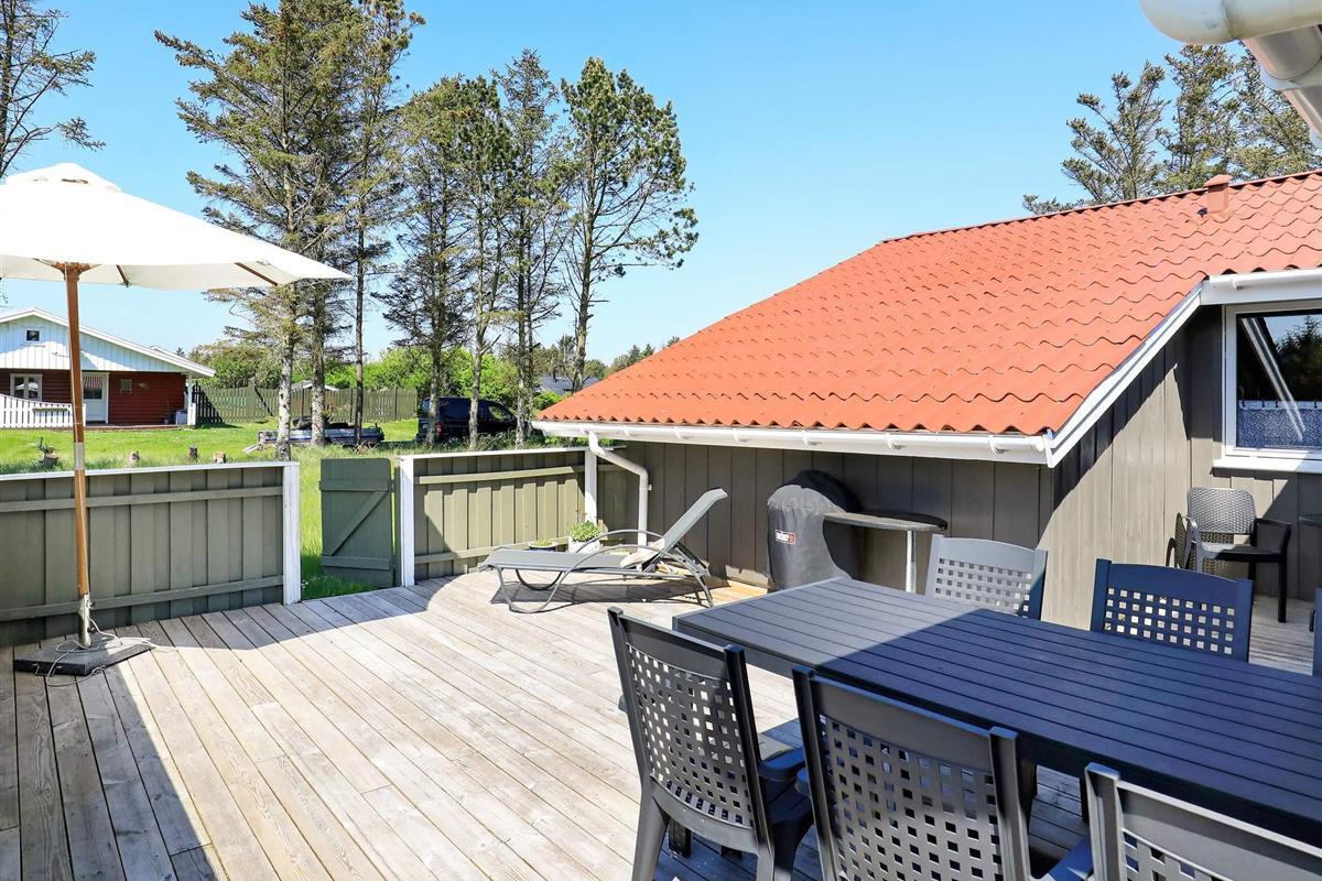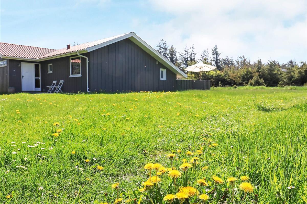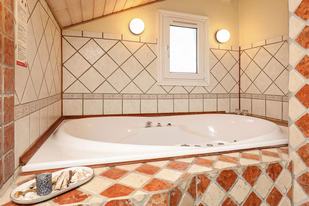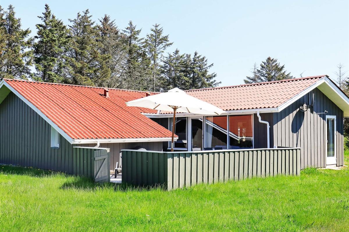 Geräumiges Ferienhaus mit Whirlpool und Sauna sowie vier Schlafzimmern. Sie wohnen hier im ruhigen Ferienhausgebiet bei Grønhøj Strand, südlich von Løkken, auf einem abgeschirmten Naturgrundstück nur ca. 700 m vom Nordseestrand entfernt.