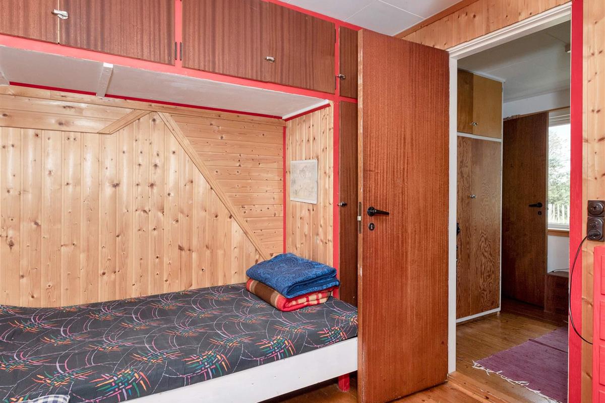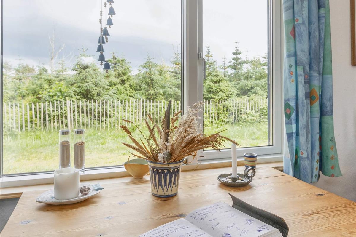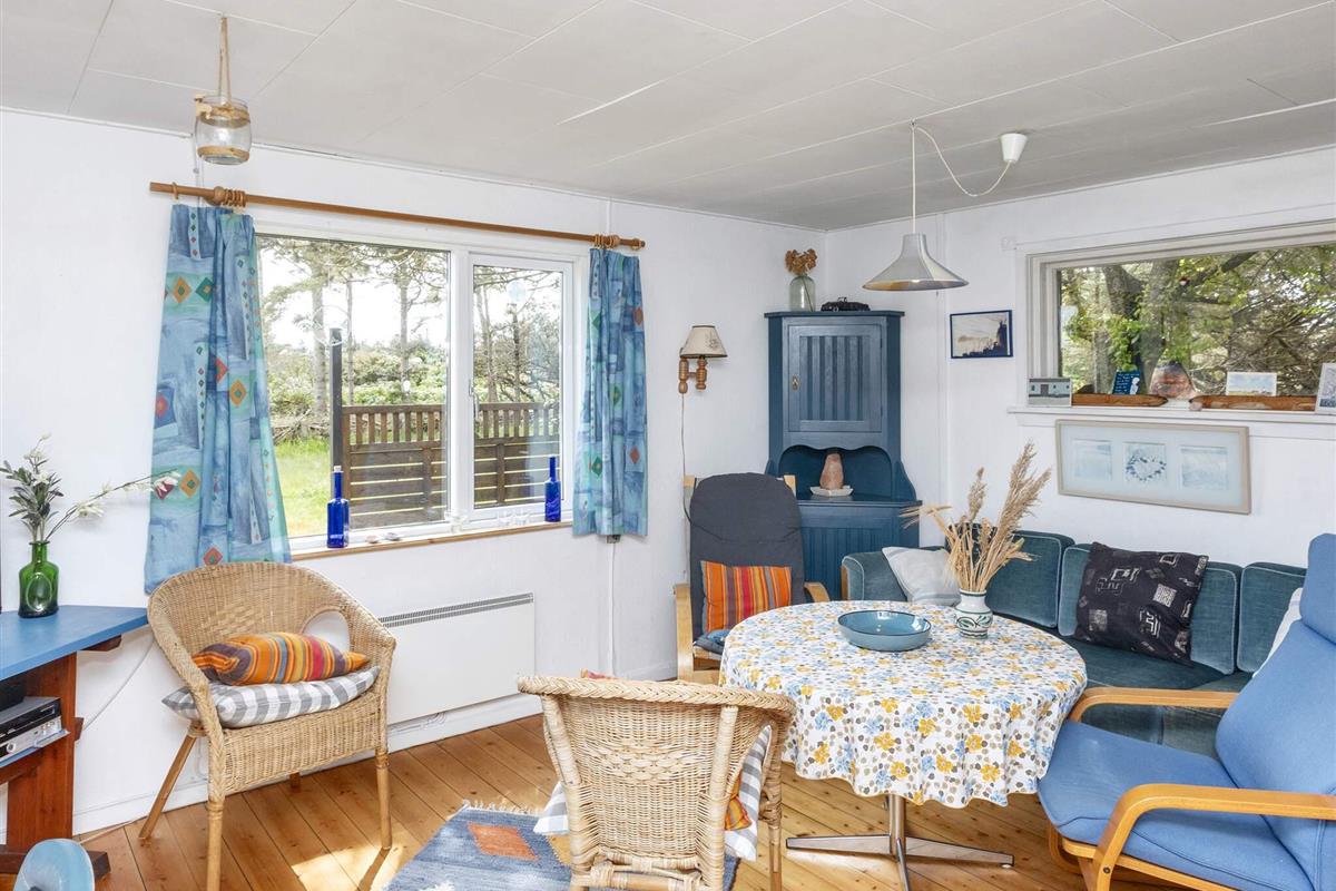 Älteres, traditionelles Ferienhaus ganz in der Nähe des schönen Badestrandes bei Grønhøj Strand. Das Haus liegt auf einem schön abgeschirmten Naturgrundstück und bietet innen u.a. Küche mit Essbereich, Wohnzimmer mit Kamin, zwei Schlafzimmer mit je 2 Betten und 2 weitere Schlafzimmer mit je 1 Bett.