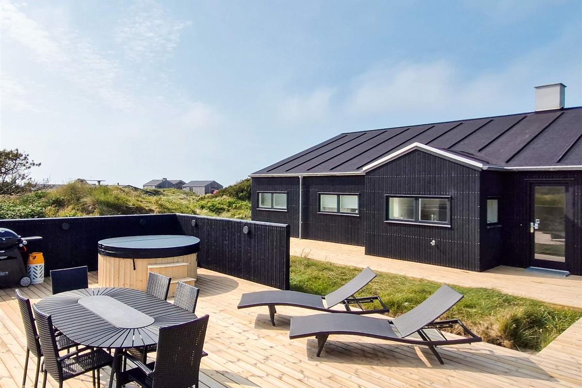 Im Außenbereich erwarten Sie zwei große, gut gelegene Terrassen mit insgesamt 196 m² großer Fläche, darunter zwei überdachte Terrassen mit 32 m² bzw. 6 m², mit Blick auf die Umgebung und zur Nordsee. Zur Erholung steht zudem ein Badezuber bereit.