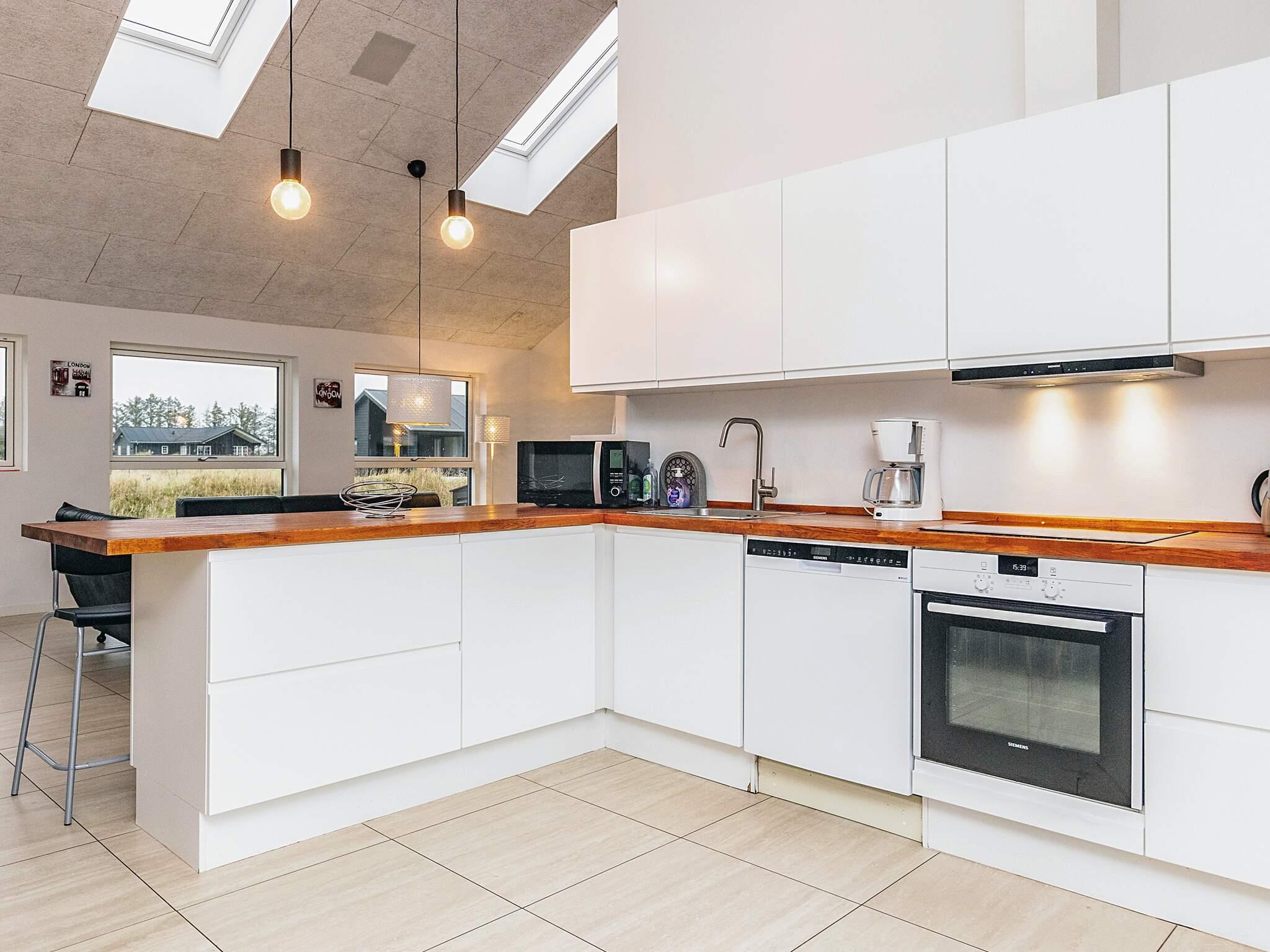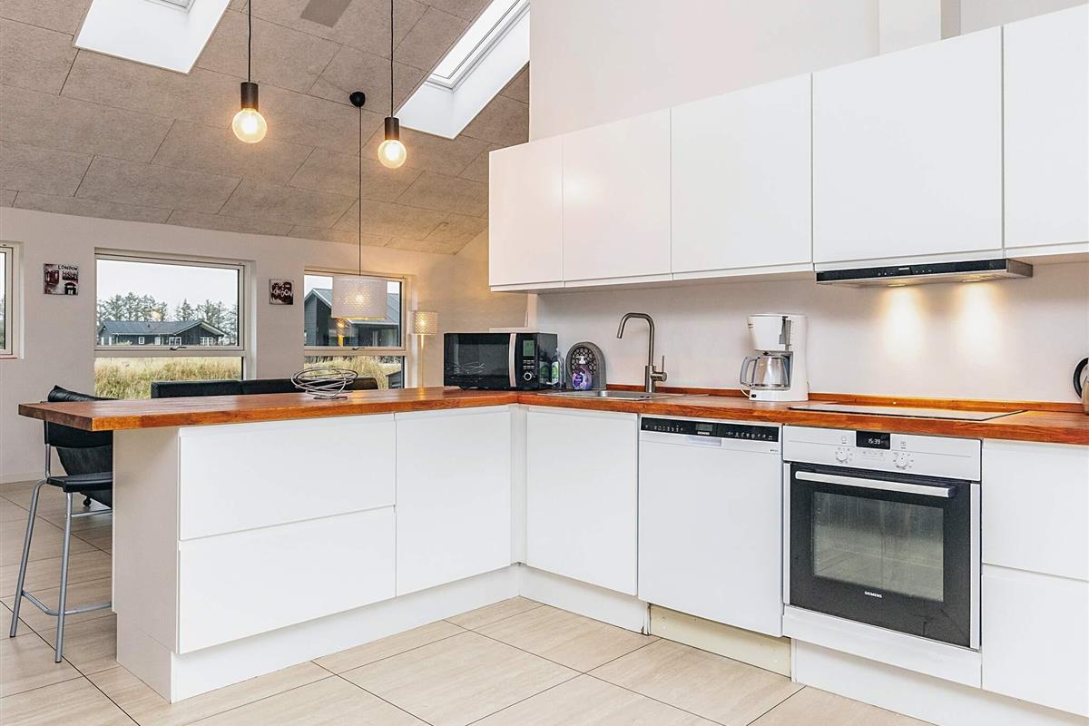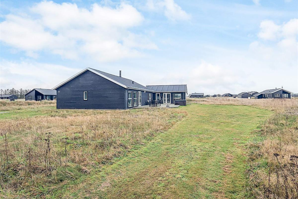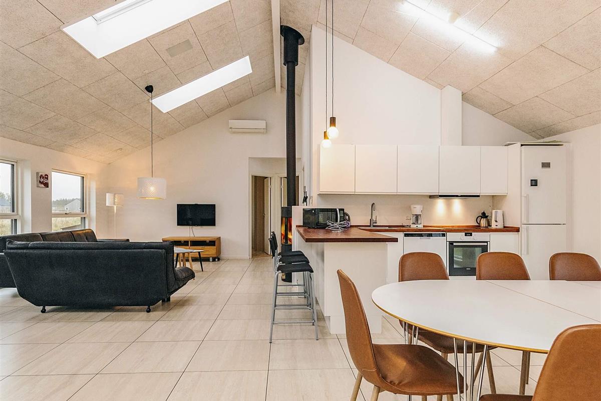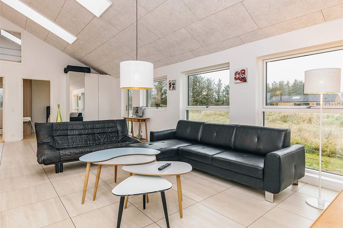 Dieses schöne und geräumige Ferienhaus liegt auf einem 2500 m² großen, offenen Naturgrundstück in einem Ferienhausgebiet am Grønhøj Strand. Das naturschöne Gebiet bietet drei Seen und liegt nicht weit von der Nordsee und einem schönen Badestrand entfernt.