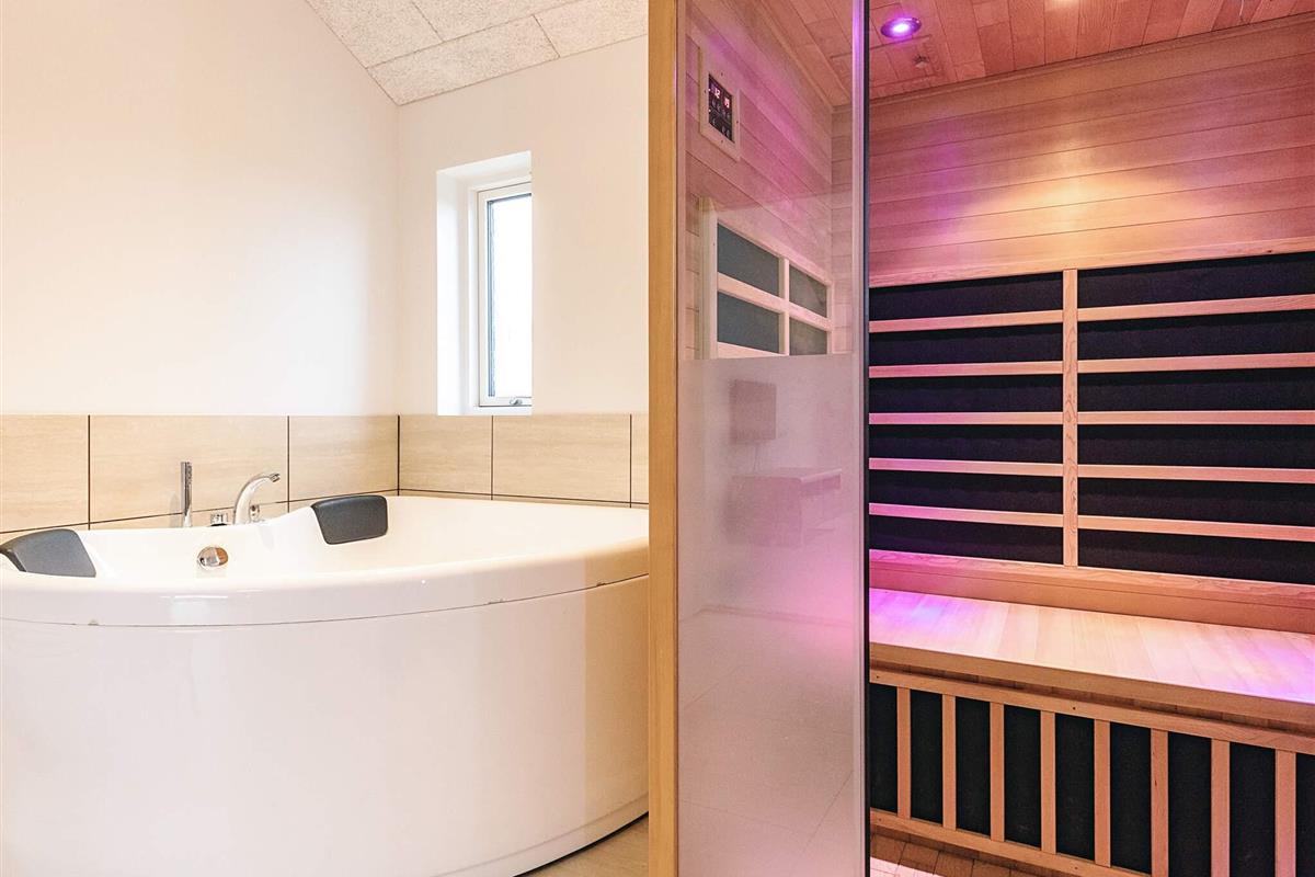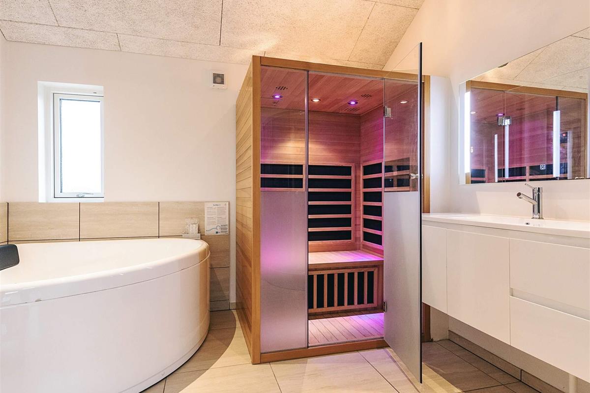 Das Haus verfügt über zwei Badezimmer – eines mit Infrarotsauna und eines mit Whirlpool für zwei Personen.