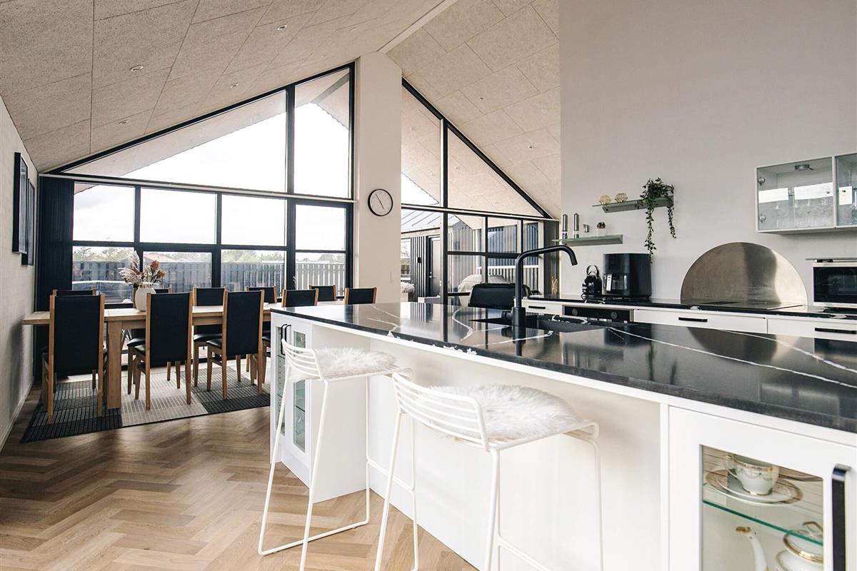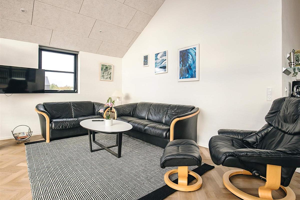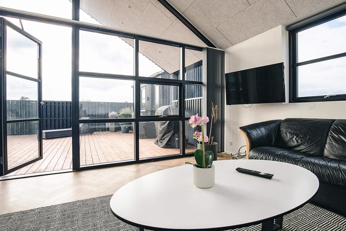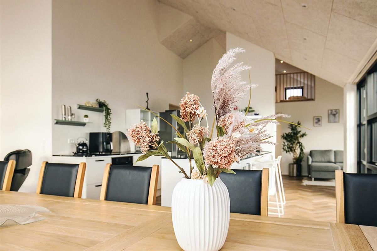 Ferienhaus in einem neu angelegten Ferienhausgebiet, am Ende einer Straße mit freiem Ausblick. Das Haus bietet Platz für die ganze Familie – sowohl drinnen mit gemütlichen Ecken als auch draußen auf der großen Holzterrasse.