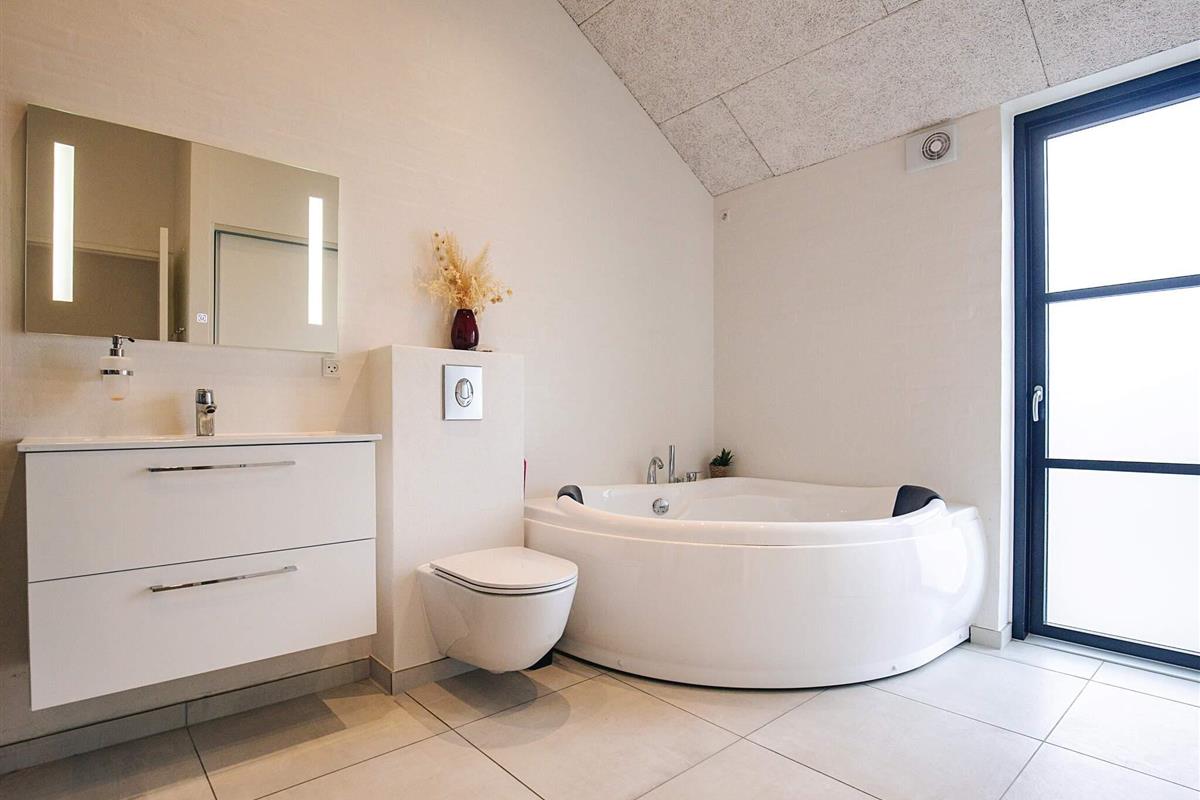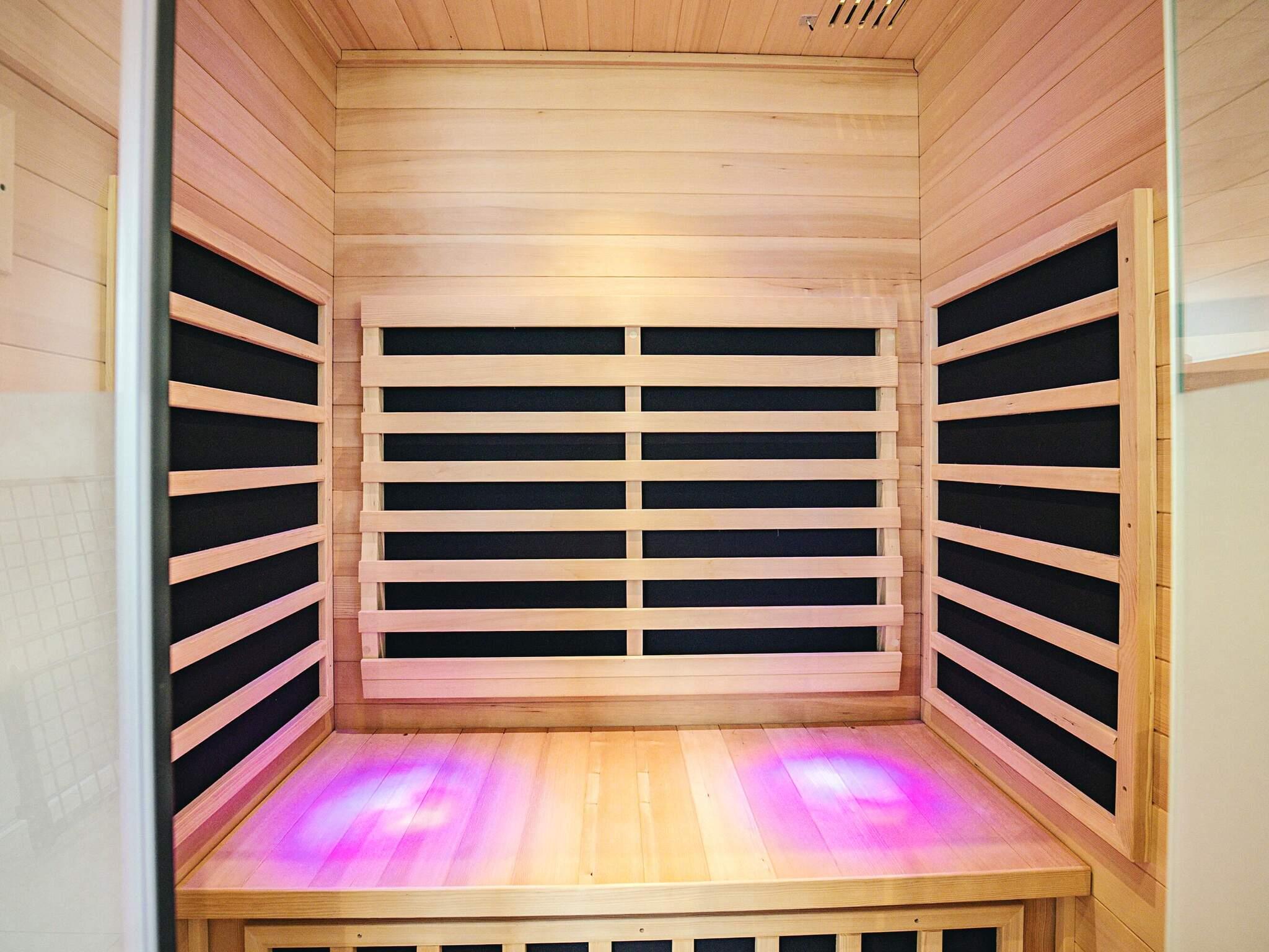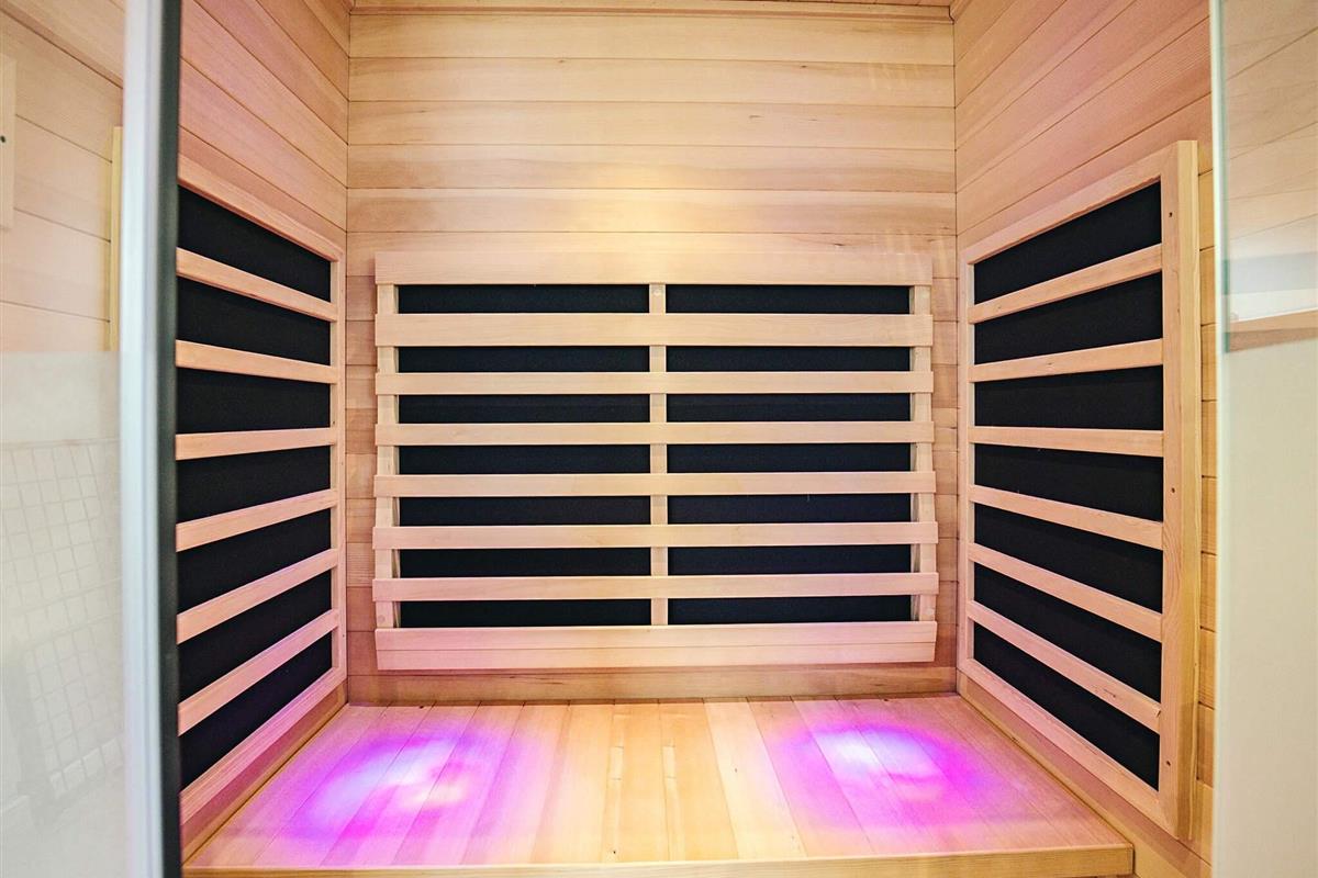 Es gibt zwei Badezimmer mit Duschen und Toilette sowie Fußbodenheizung. Entspannung ist in der Sauna möglich. Außerdem steht sowohl im Innen- als auch im Außenbereich ein Whirlpool zur Verfügung.