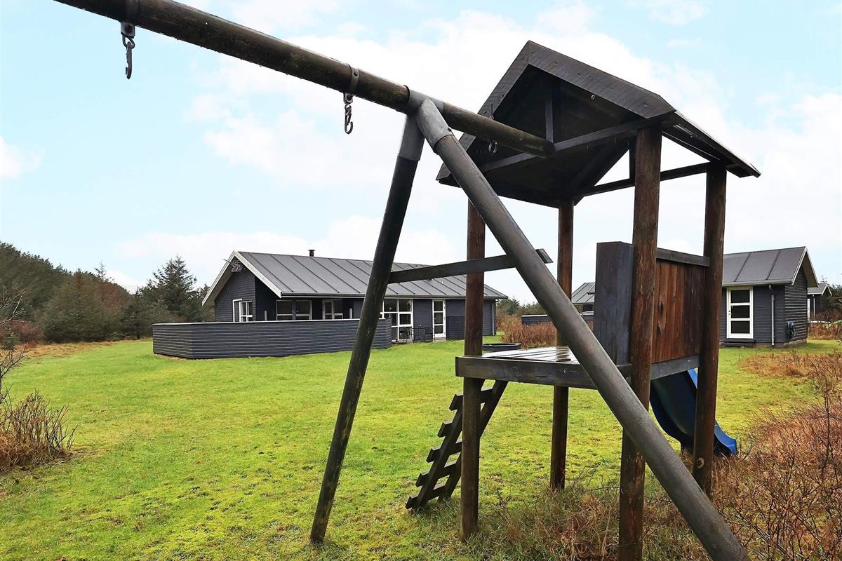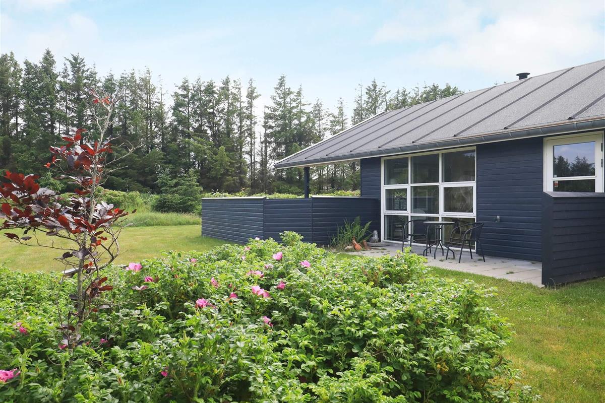 Modernes Ferienhaus mit geschmackvoller, persönlicher Einrichtung und großen, hellen Räumen. Das zuletzt 2014 renovierte Ferienhaus bietet ein Badezimmer mit Whirlpool, Dusche und Fußbodenheizung, einen offenen Küchen-Wohnbereich für das Familienleben sowie drei Schlafzimmer und einen Hems. Die Einrichtung ist im modernen, typisch dänischen Ferienhausstil gehalten. Wegen der großen Fensterflächen ist es wunderbar hell im Haus. Draußen auf der umschlossenen Südwestterrasse können Sie ungestört entspannen. Die Kinder können auf der Rasenfläche spielen und toben oder schaukeln, im Sandkasten buddeln oder die Rutsche hinuntersausen.