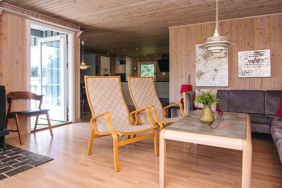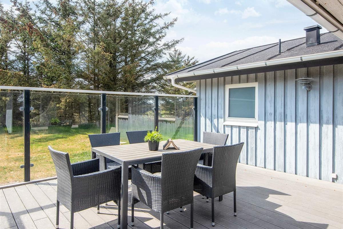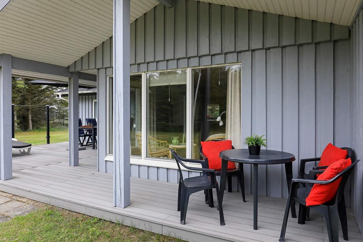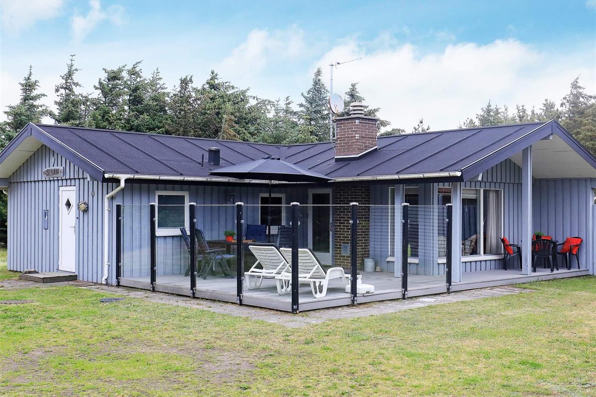 Uriges Ferienhaus mit geschützter Terrasse, auf großem, von Kiefern u. Tannen umgebenem Grundstück gelegen.