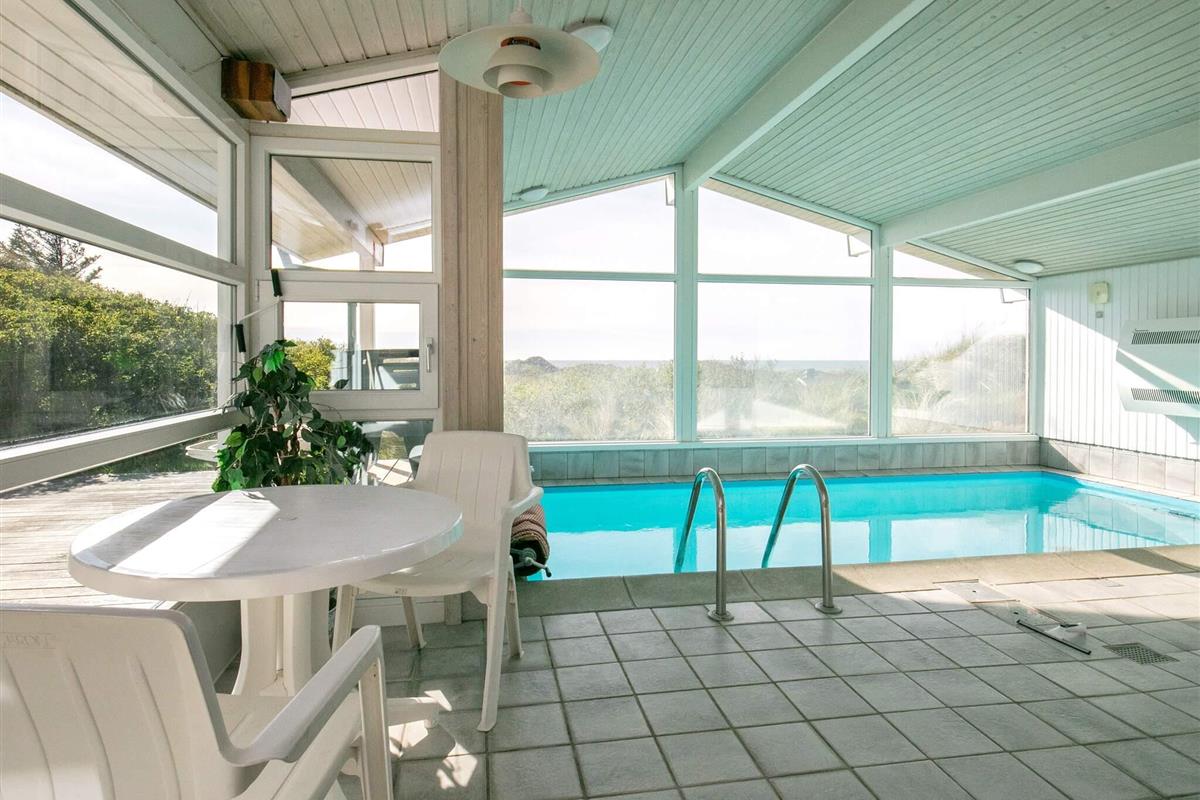 Von diesem Ferienhaus führt ein kl. Pfad direkt hinunter an den herrlichen, breiten Nordseestrand. Zudem Meerblick vom Wohnzimmer, Poolbereich sowie vom Annex. Energieversorung mit Ökostrom. Das hügelige Naturgrundstück liegt teils abgeschirmt und stellt eine teils überdachte Terrassenfläche zur Verfügung, die schön geschützt hinter einer größeren Düne liegt. Zum Haus gehört auch ein 15 m² gr. Annex. Die Außenbeleuchtung wird automatisch ein- und ausgeschaltet.
