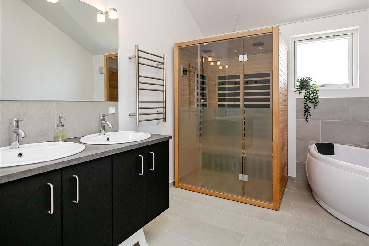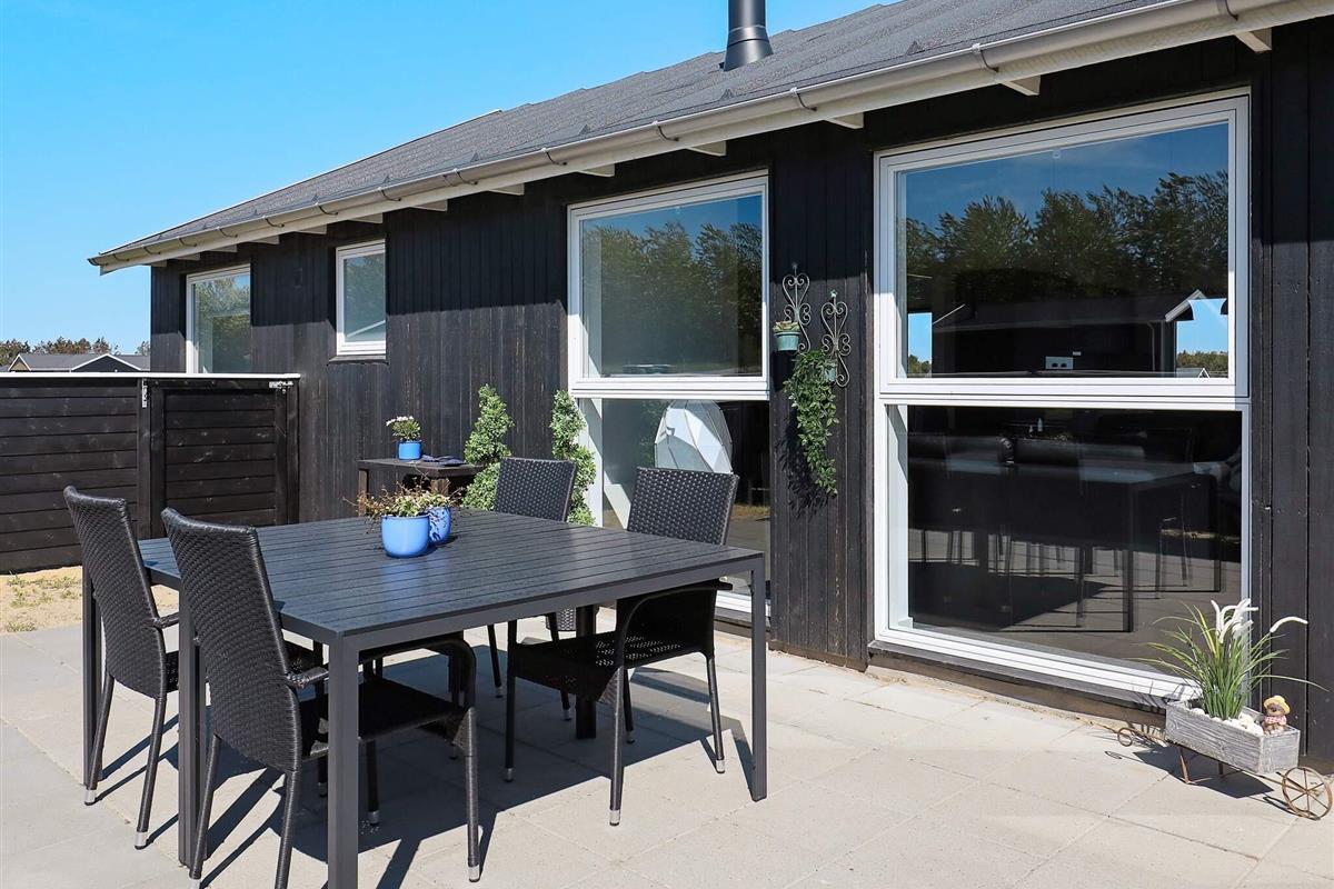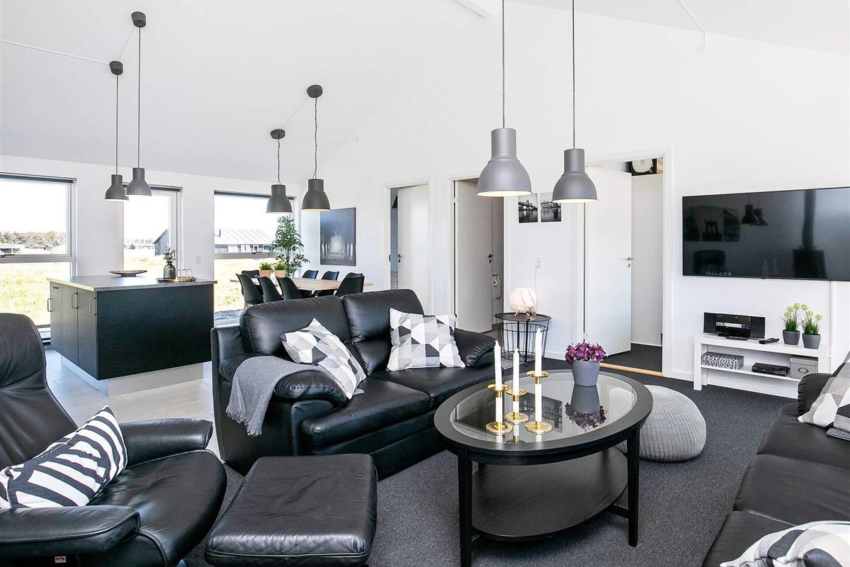 Modernes Ferienhaus mit Whirlpool und Sauna. Steht auf einem großen Naturgrundstück am Rande des Ferienhausgebietes von Grønhøj Strand, das über ein kilometerlanges Strandufer mit feinem, hellem Sand und hohen Dünen verfügt und zu den attraktivsten Gegenden in Nordeuropa für einen Badeurlaub an der Nordsee zählt.