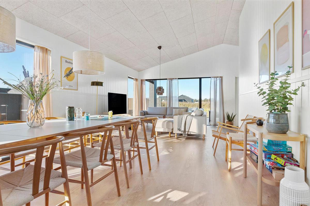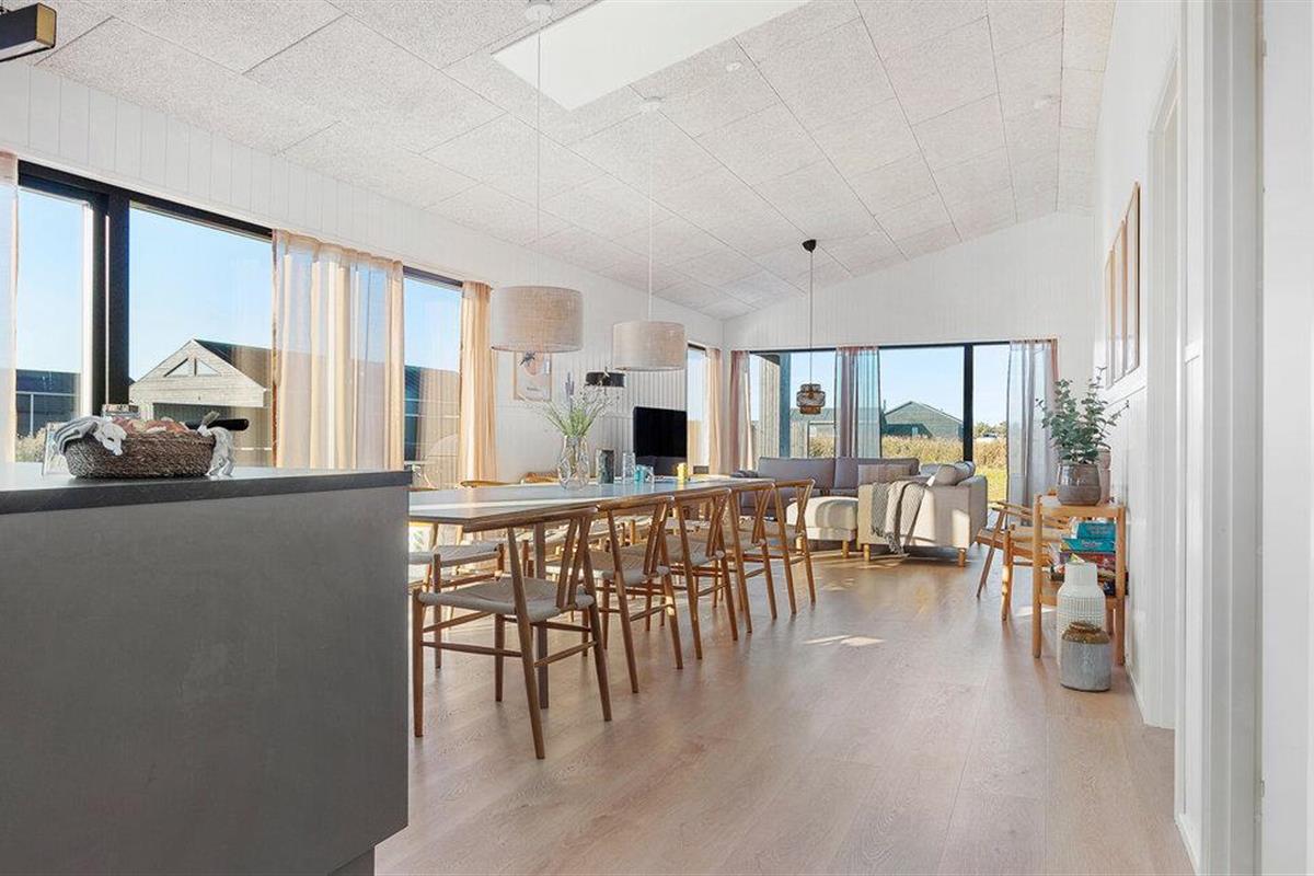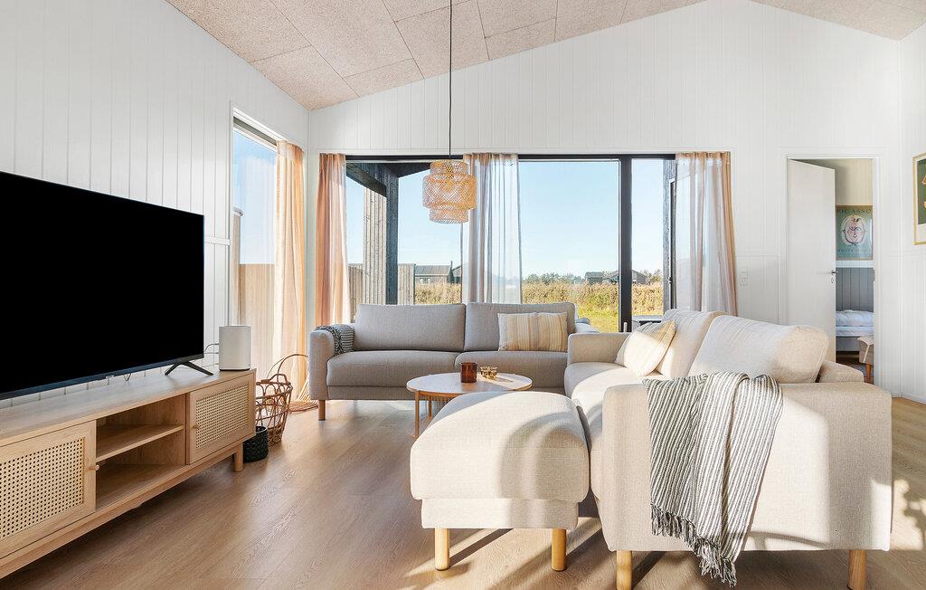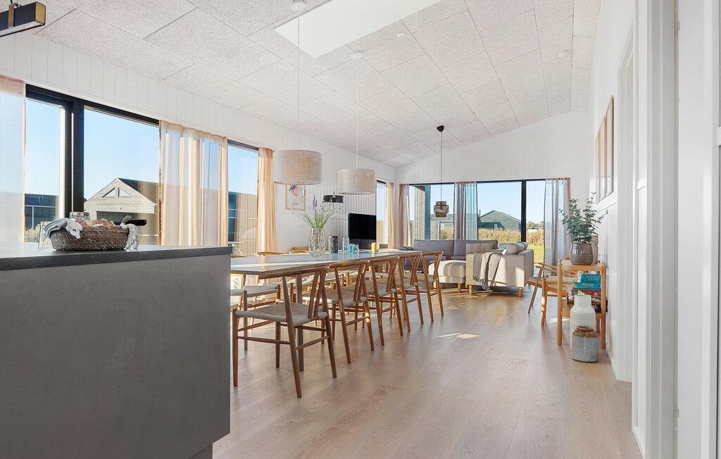 Dit gezellige vakantiehuis, dat ideaal is voor twee gezinnen, op Løkken Strand combineert Scandinavische charme met moderne voorzieningen. Begin de dag met een ontspannen ontbijt aan de grote houten eettafel en geniet van het prachtige uitzicht op de natuur door de ramen van vloer tot plafond. Je kunt ook dineren op het ruime terras, dat bij mooi weer een aangename sfeer biedt. Elke maaltijd kan gemakkelijk worden bereid in de open, moderne keuken.